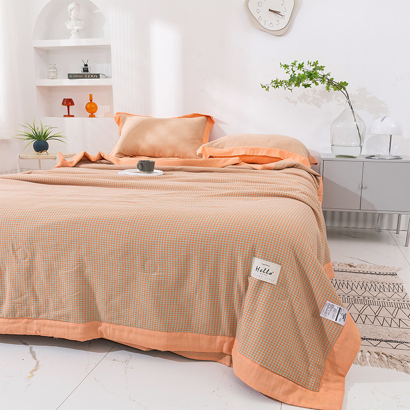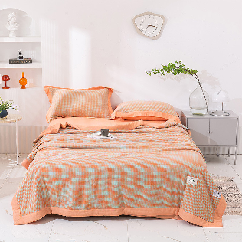 商品名称:简色坊 2023新款全棉色织小提花夏凉被小提花-青柚-山茶桔