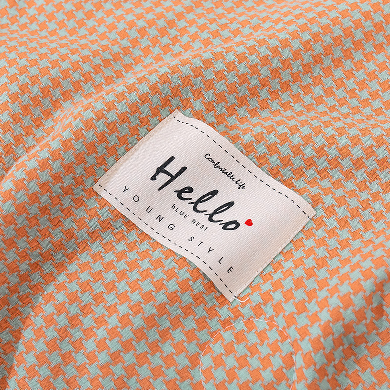 简色坊 2023新款全棉水洗棉四件套优雅格调-蜜粉大格,优雅格调-蜜粉大格