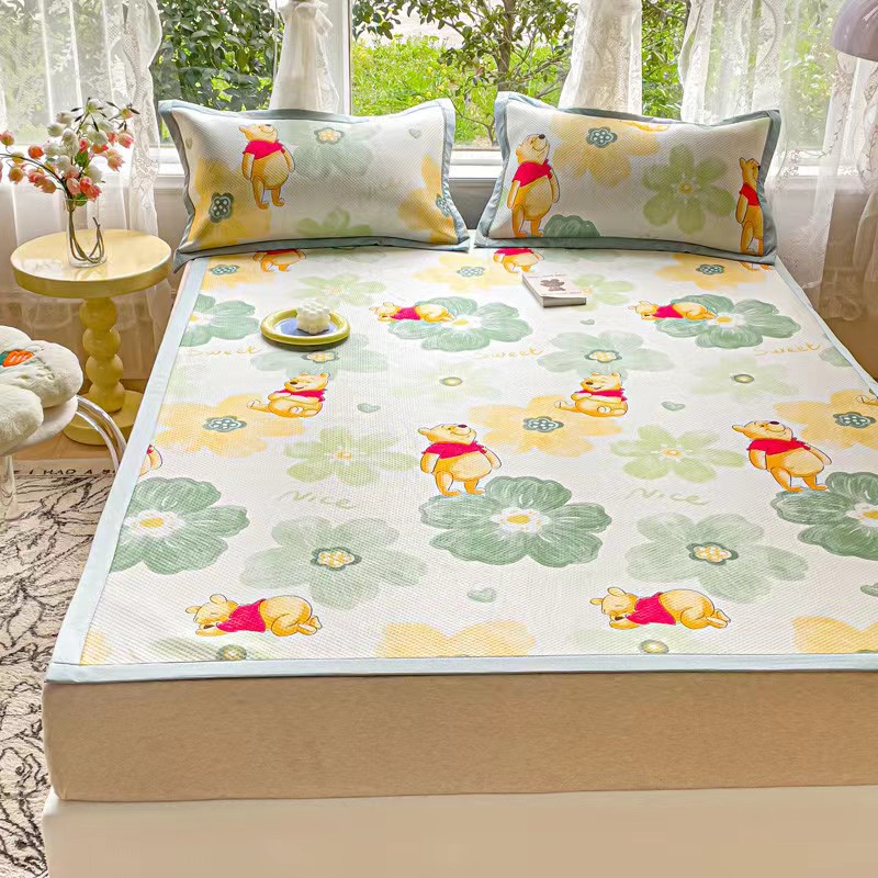 玖琳家纺 2024新款迪士尼凉感针织复合三明治凉席三件套 小熊维尼