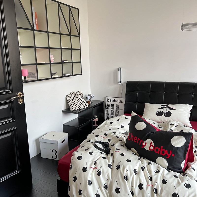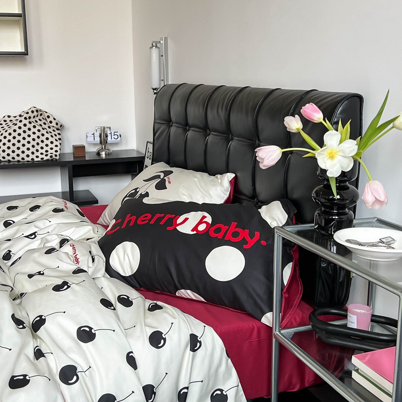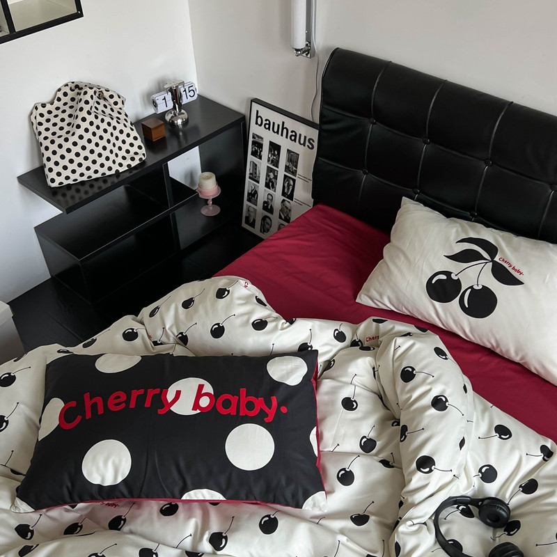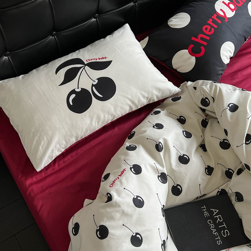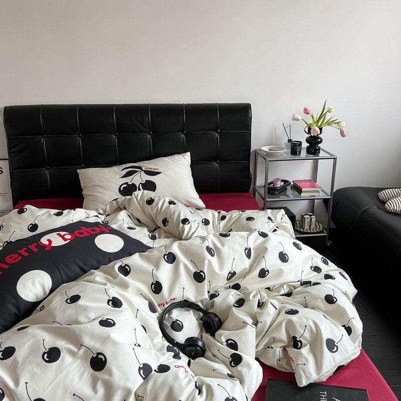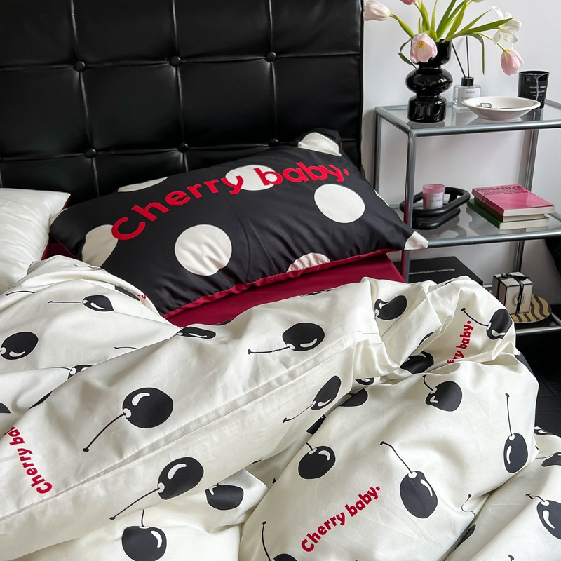 商品名称:桃喜 2024新款甜辣潮酷数码印花全棉四件套 黑樱桃