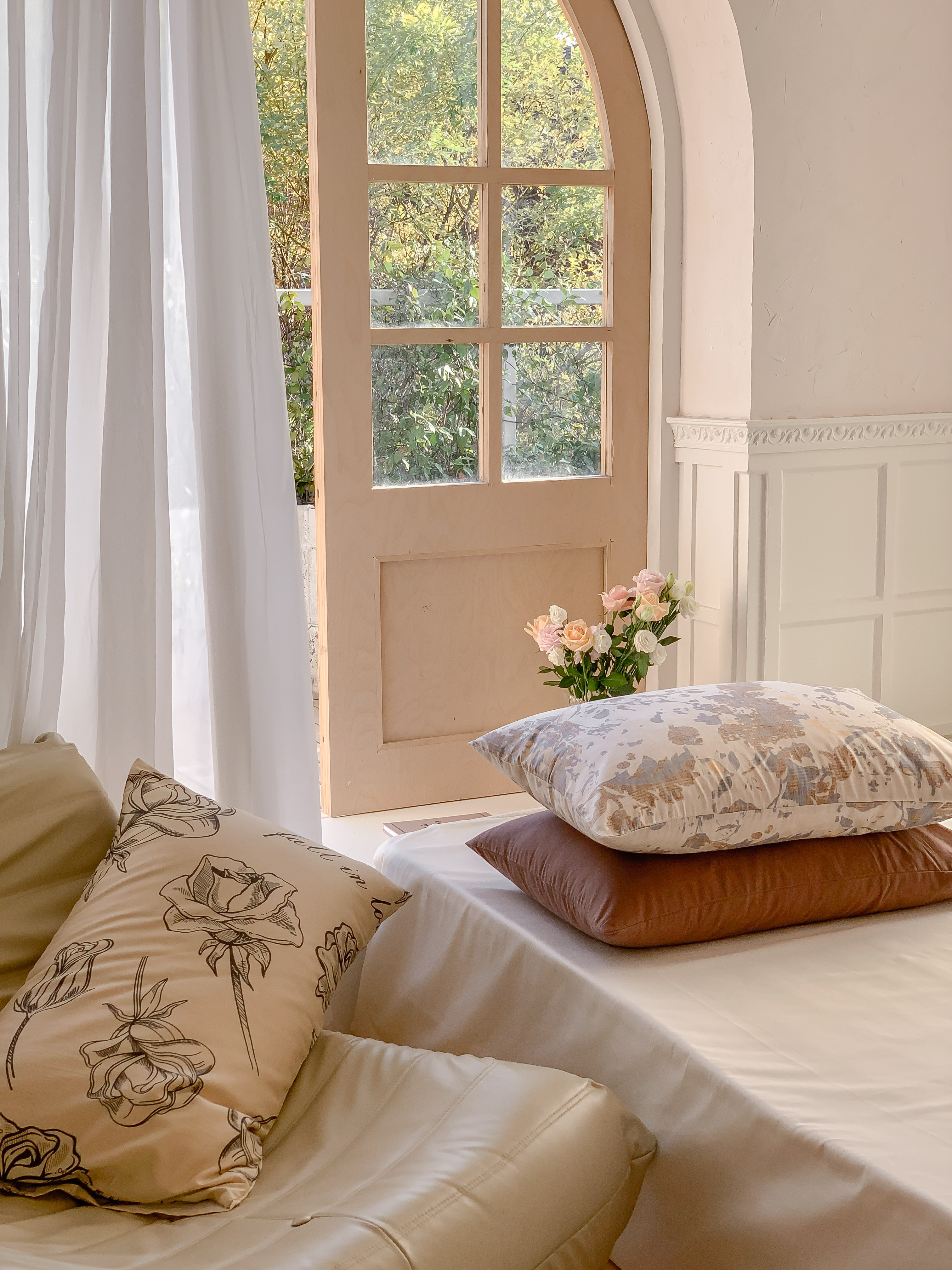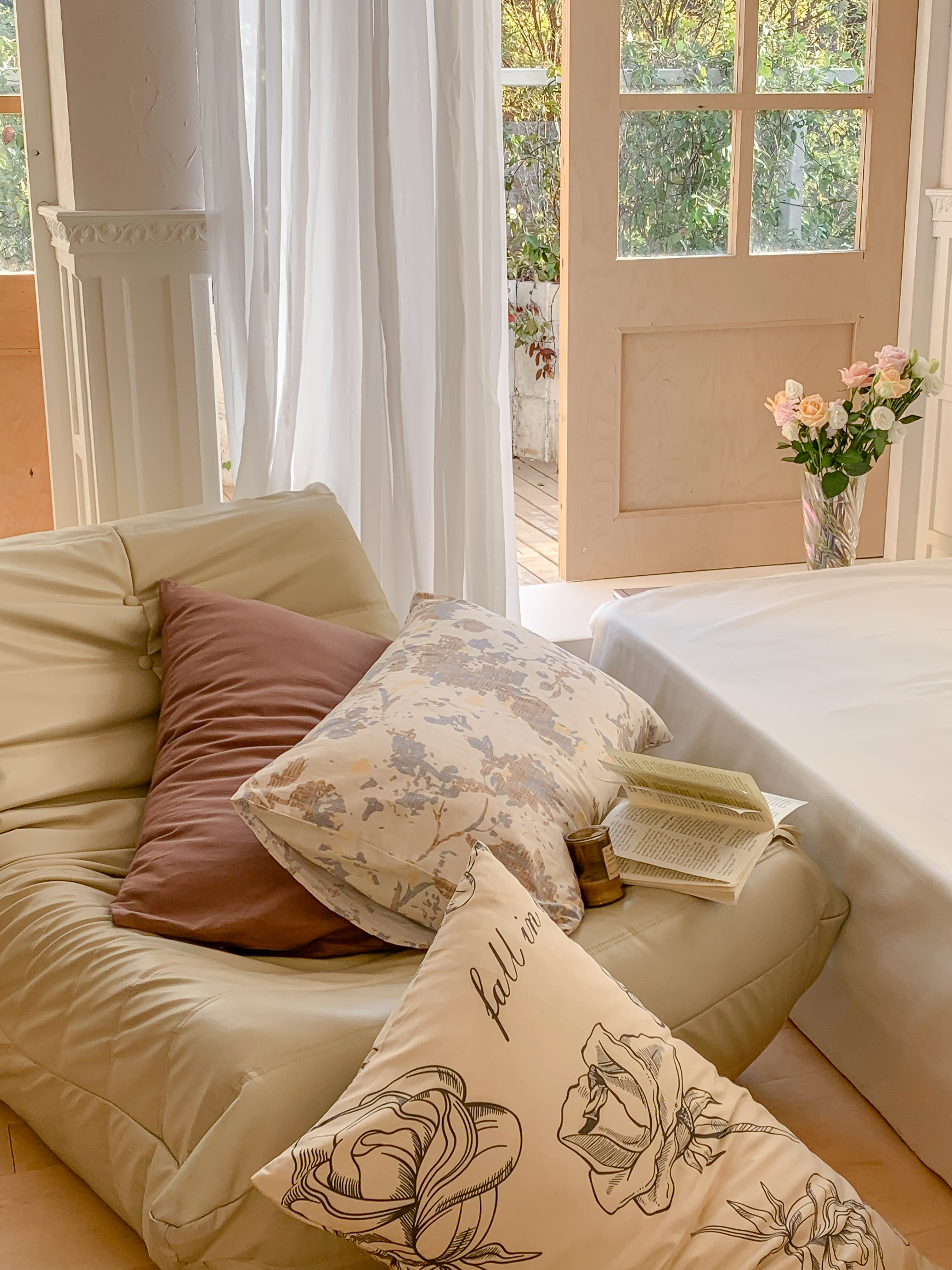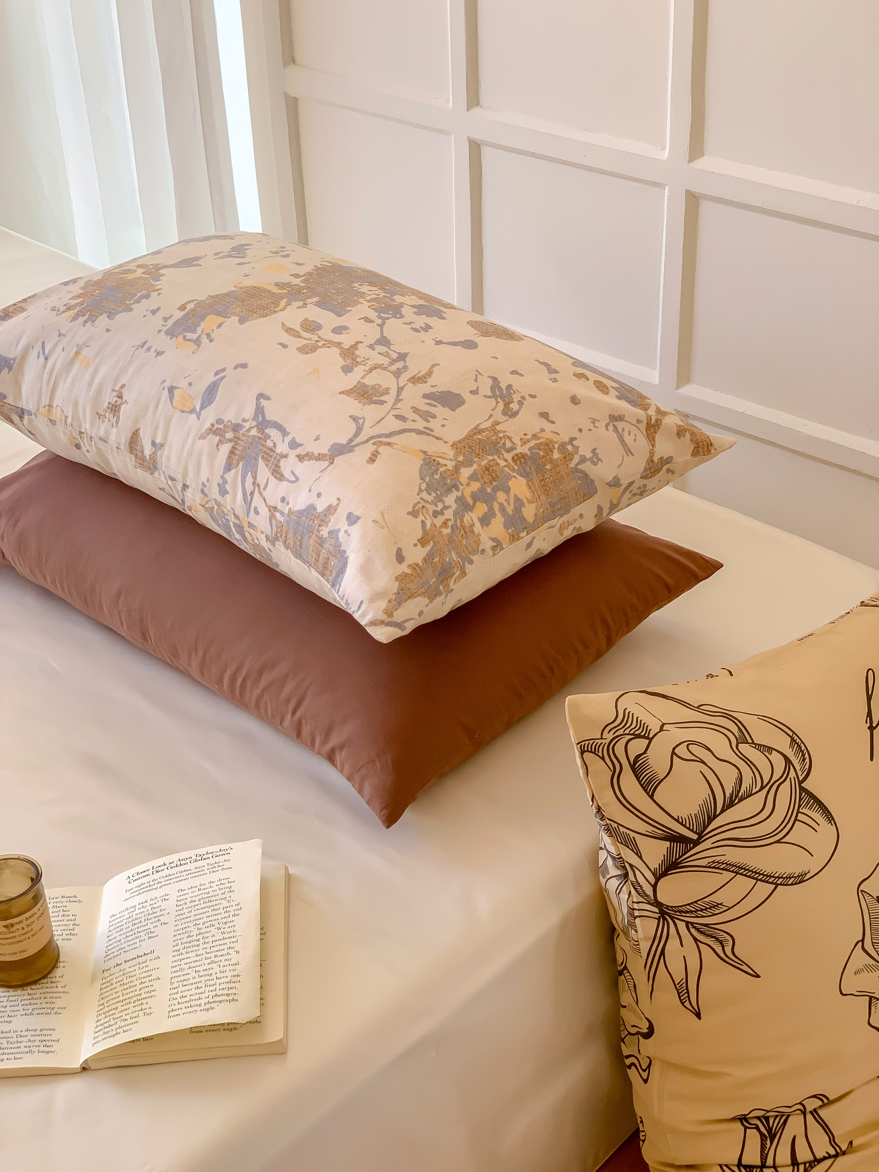窝米 全棉斜纹枕套(花卉类) 海瑟薇驼枕套