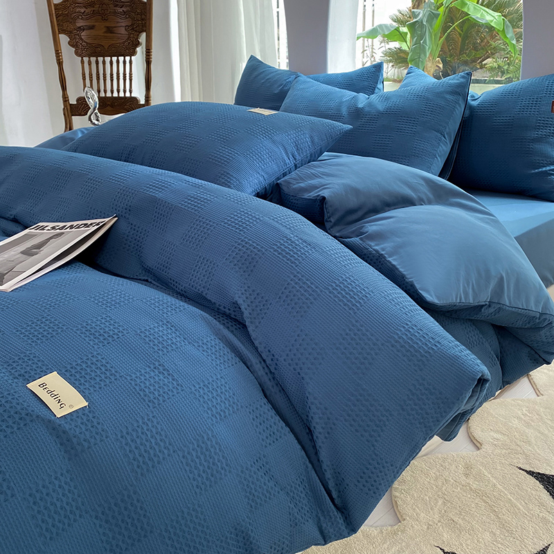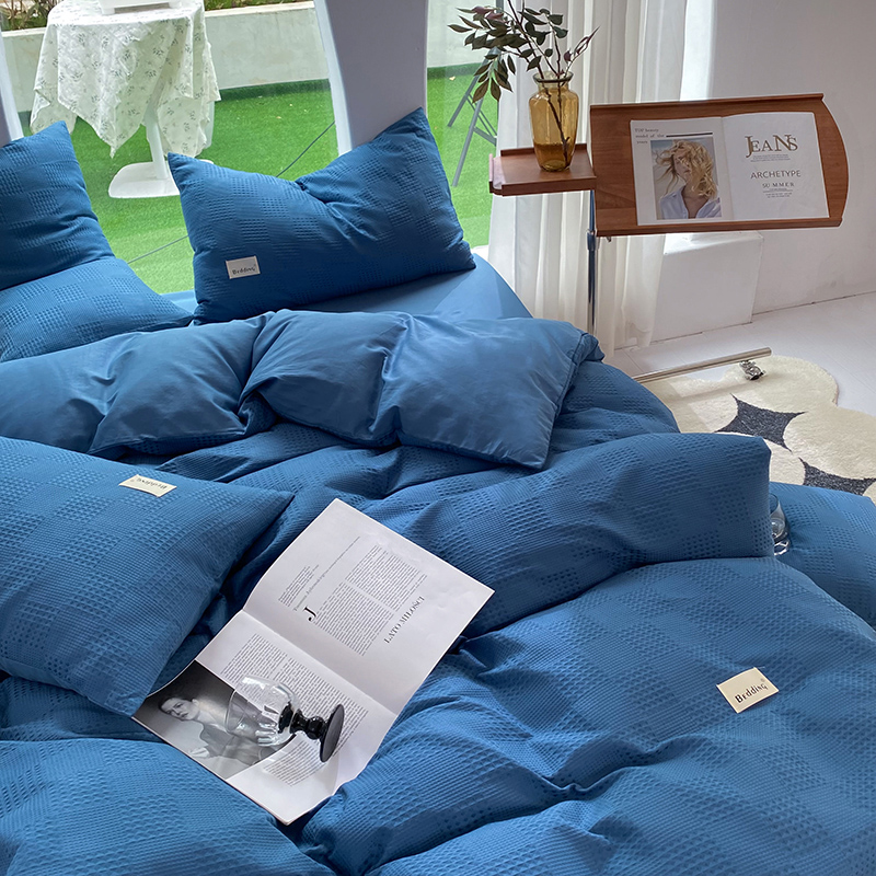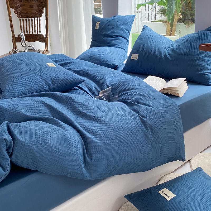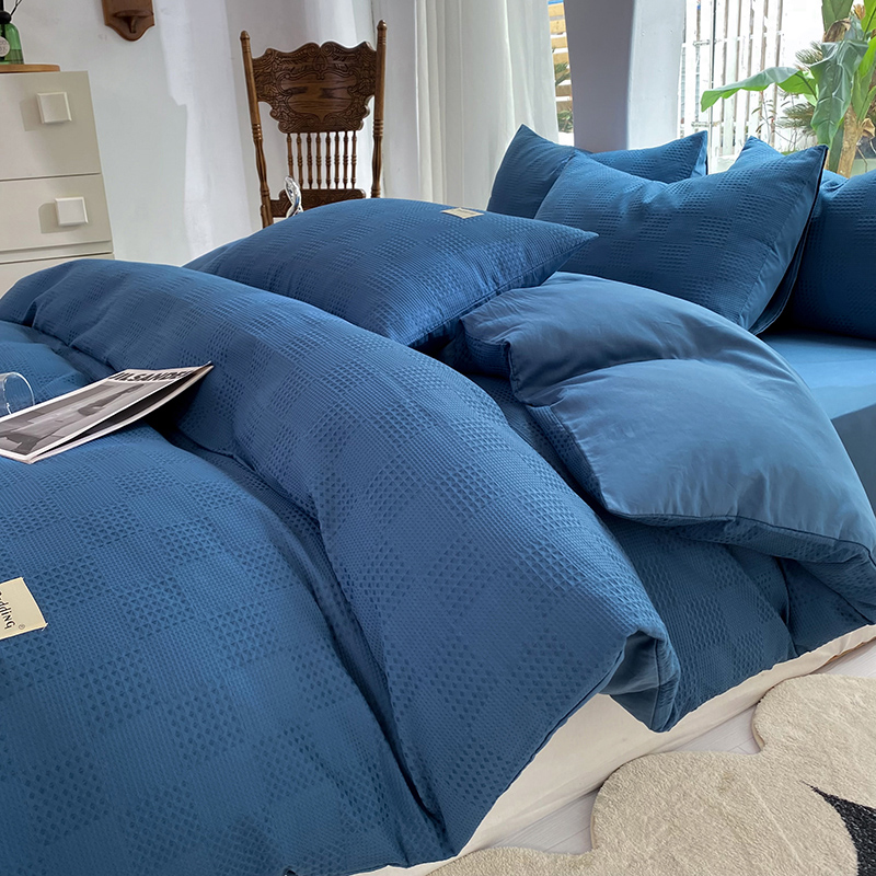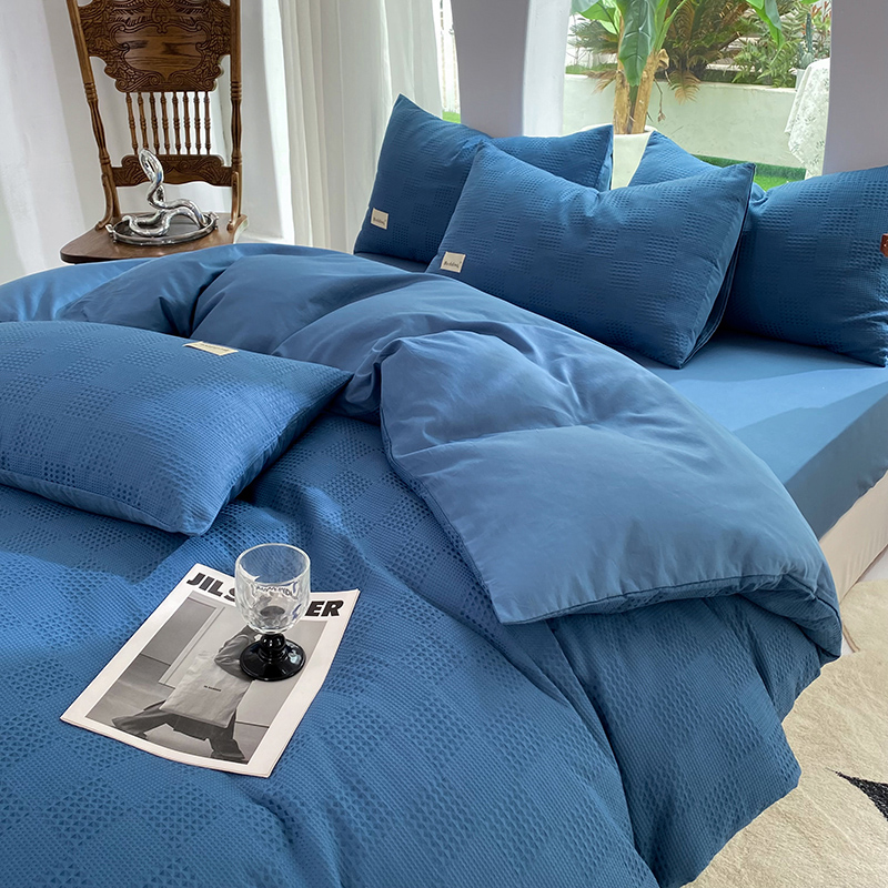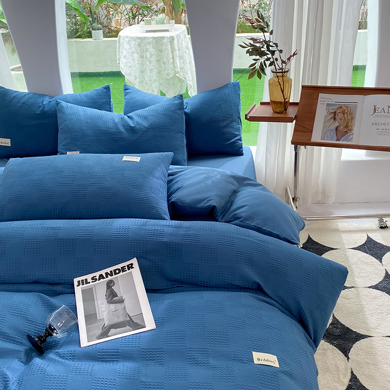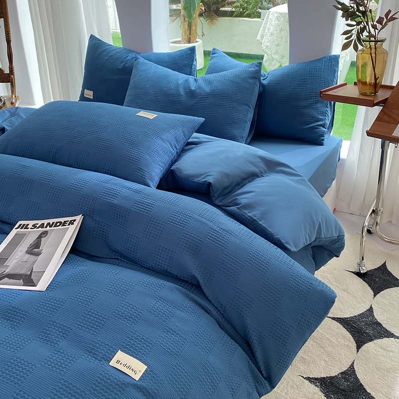 当前位置: 91家纺网 > 商品网购 > 床品套件 > 四件套 > 全棉普通四件套 > 澳梵家居 2023新品全棉华夫格四件套 棋格-宝石蓝