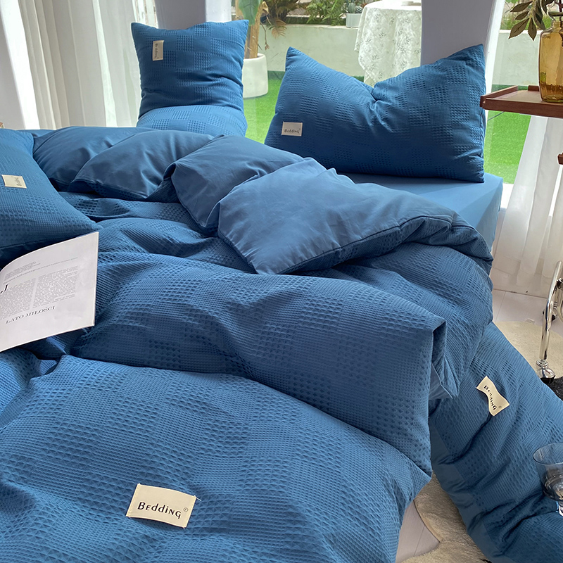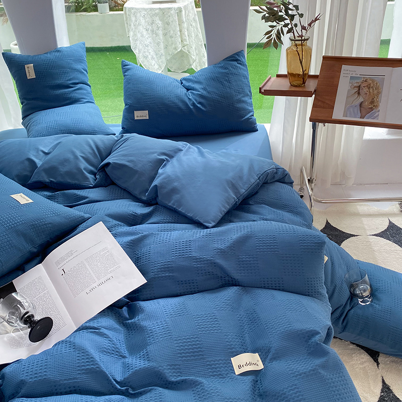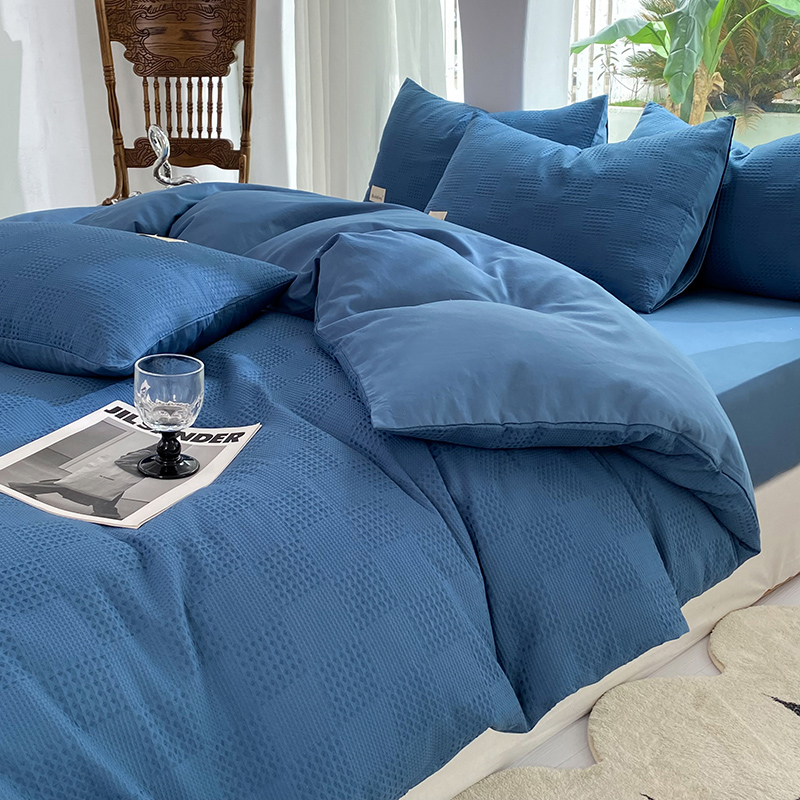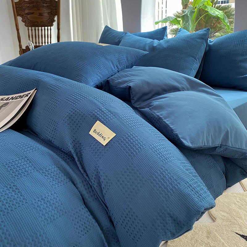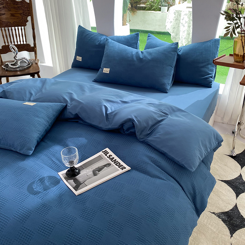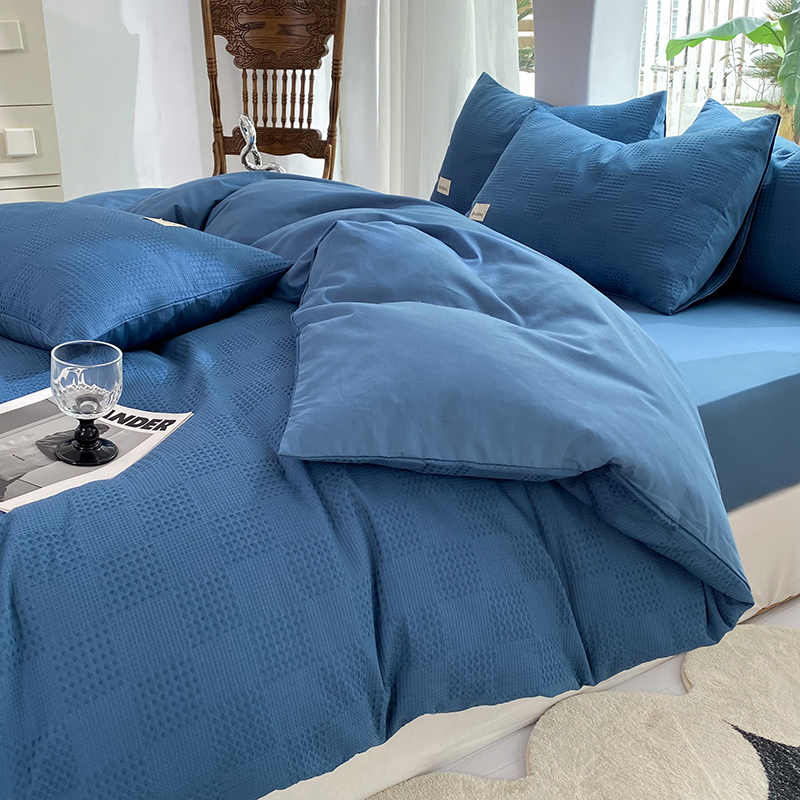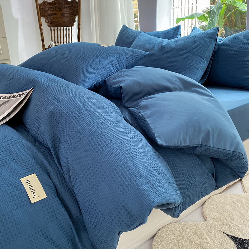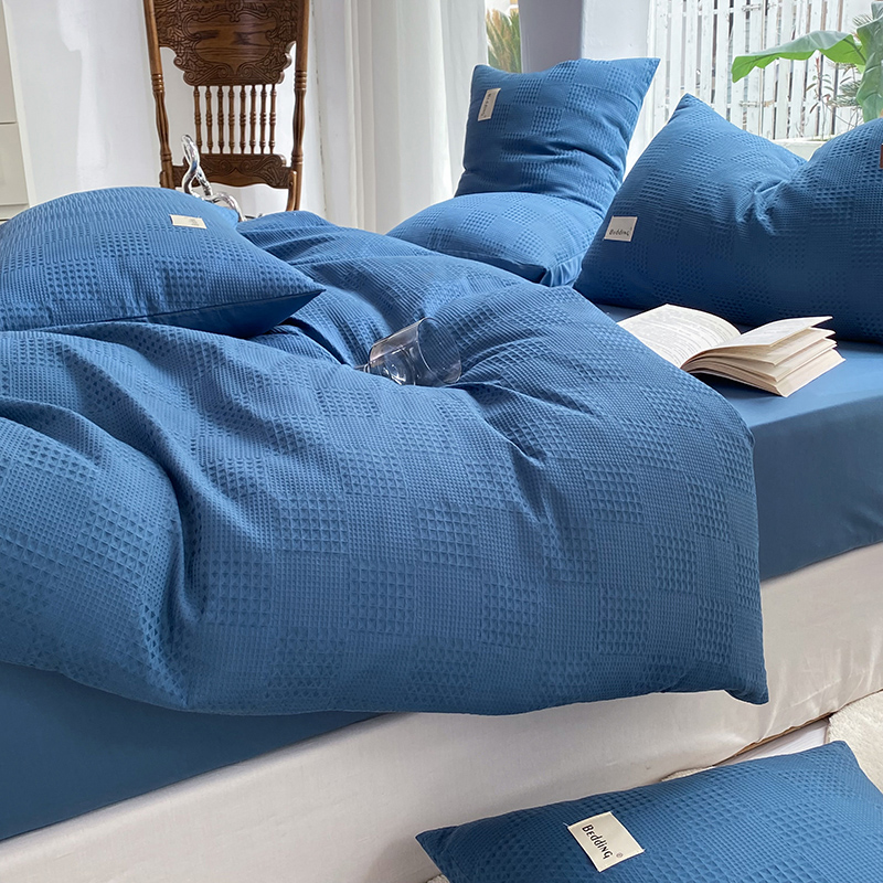 当前位置: 91家纺网 > 商品网购 > 床品套件 > 四件套 > 全棉普通四件套 > 澳梵家居 2023新品全棉华夫格四件套 棋格-宝石蓝