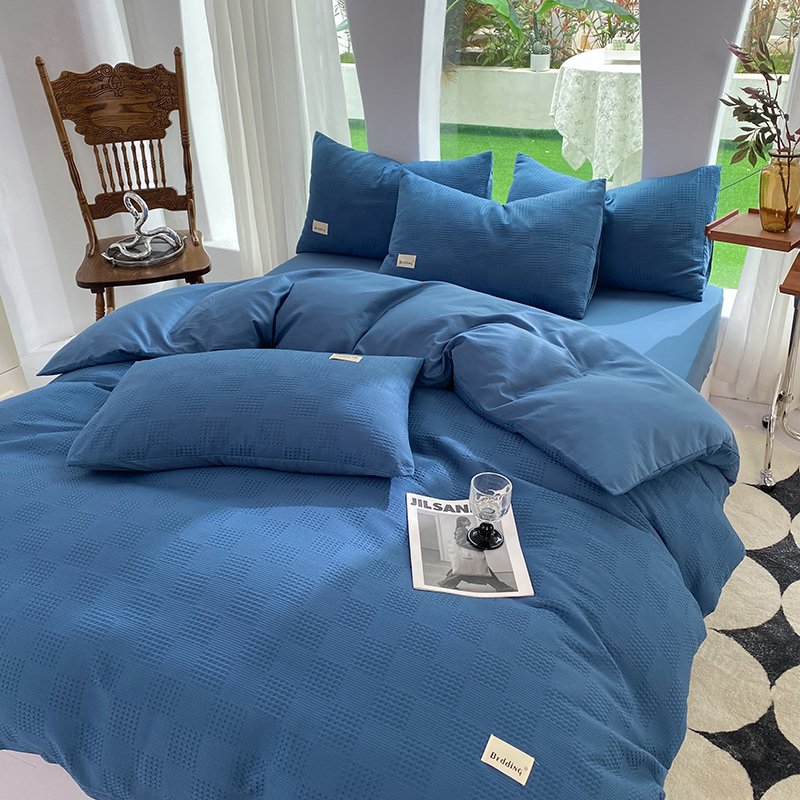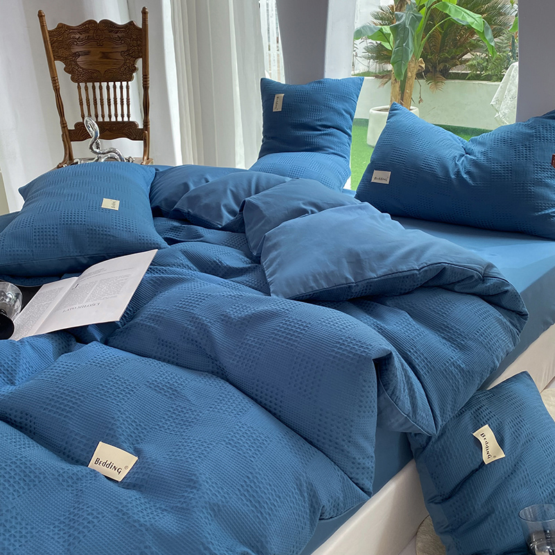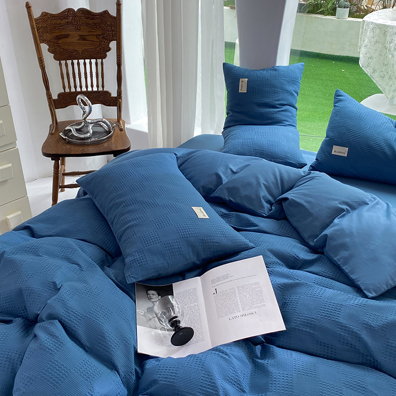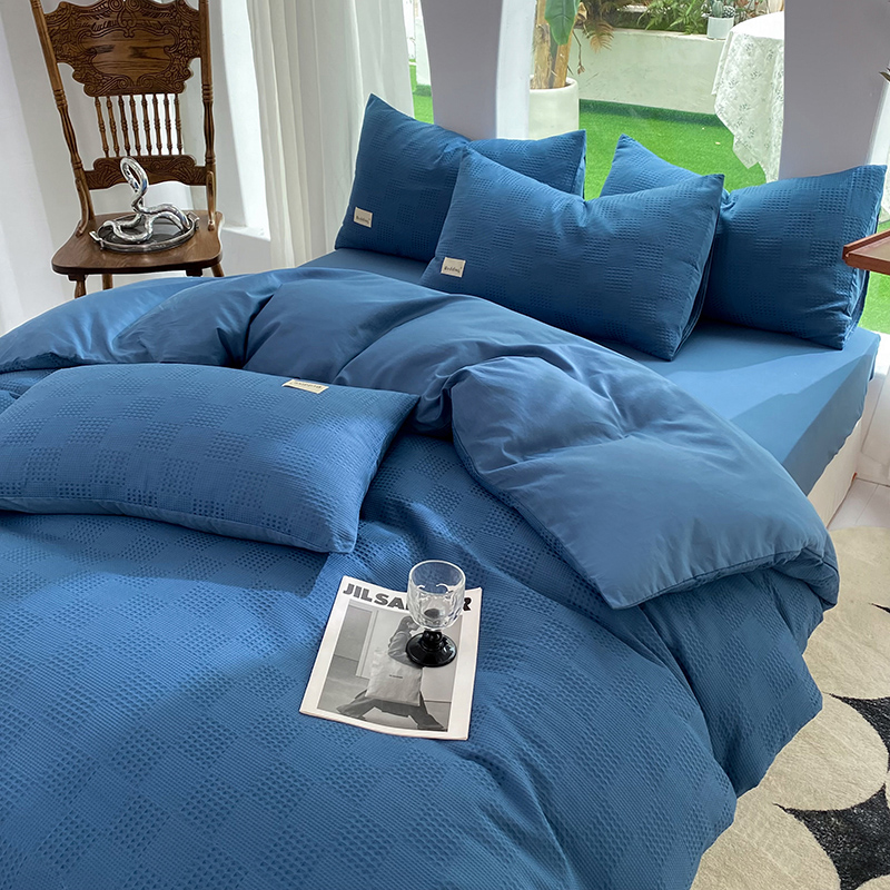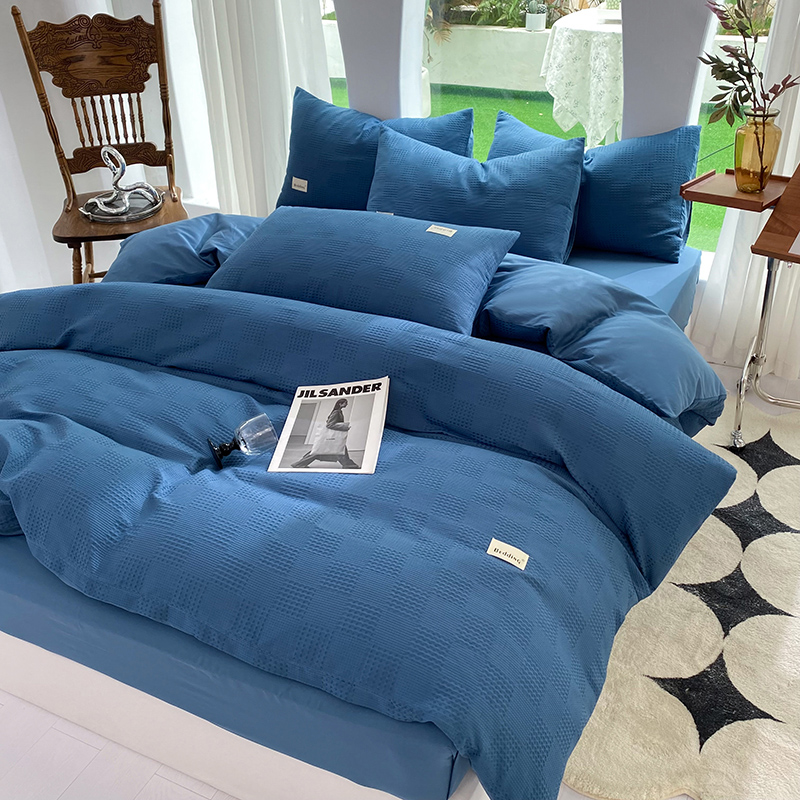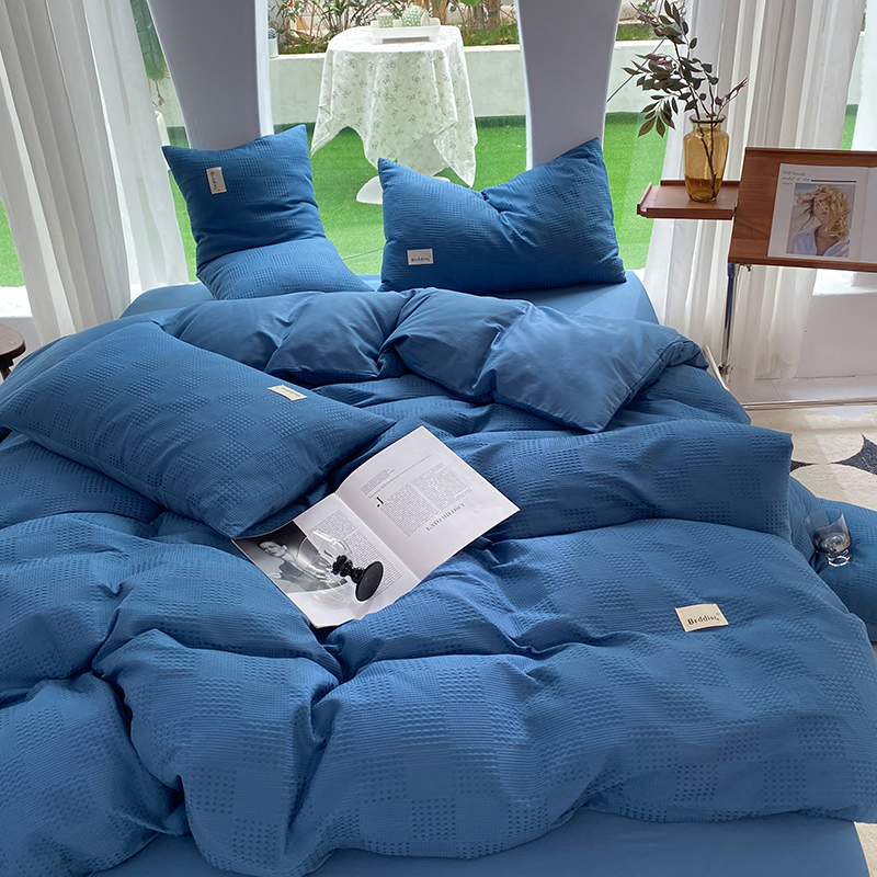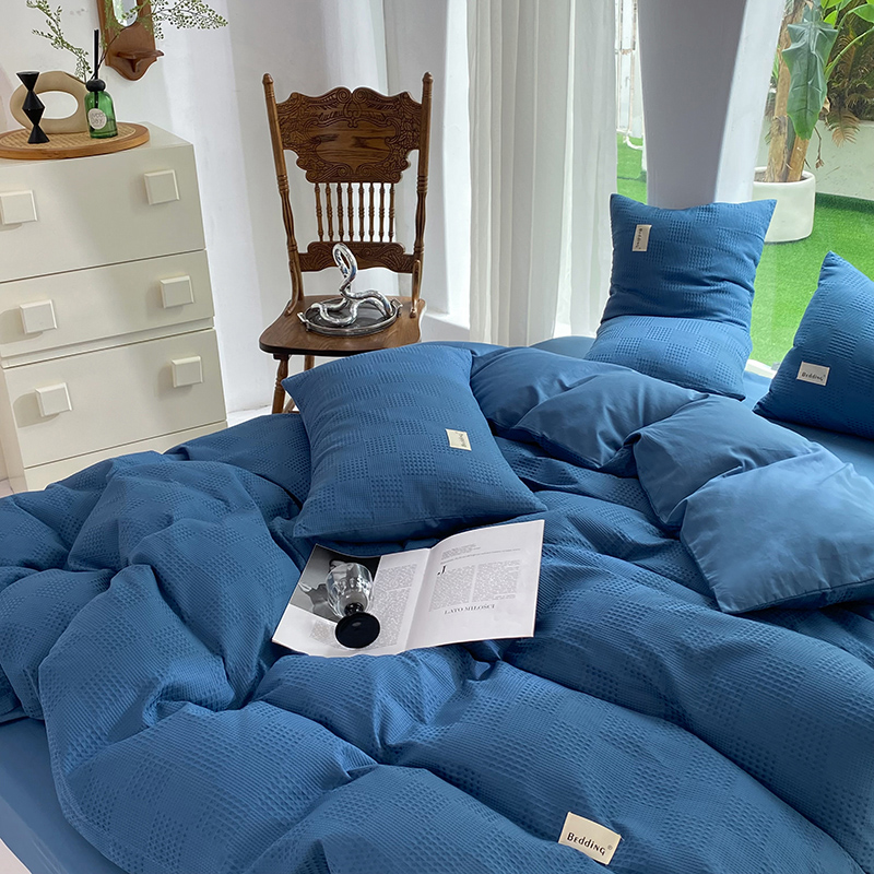 当前位置: 91家纺网 > 商品网购 > 床品套件 > 四件套 > 全棉普通四件套 > 澳梵家居 2023新品全棉华夫格四件套 棋格-宝石蓝