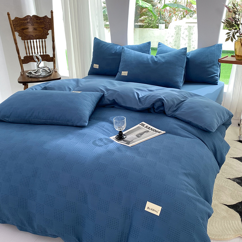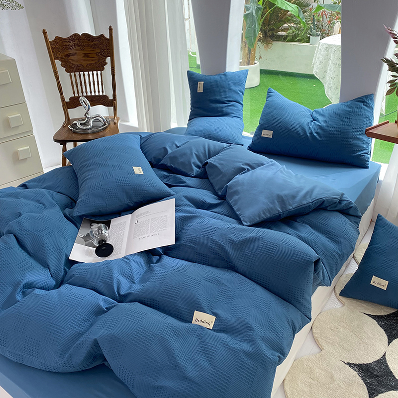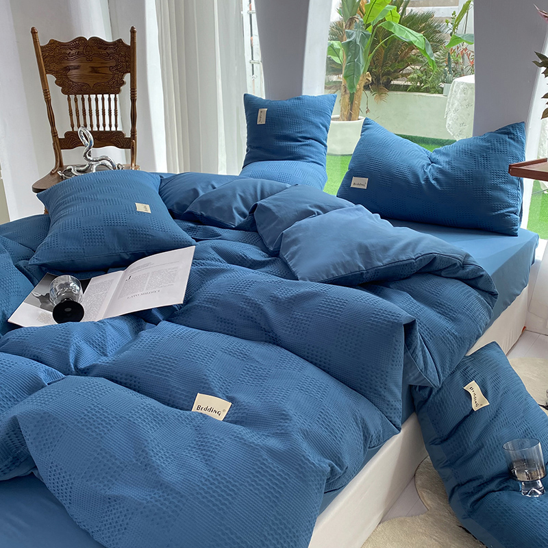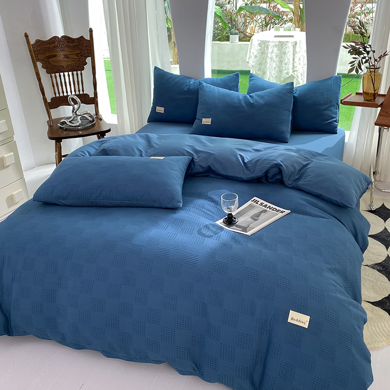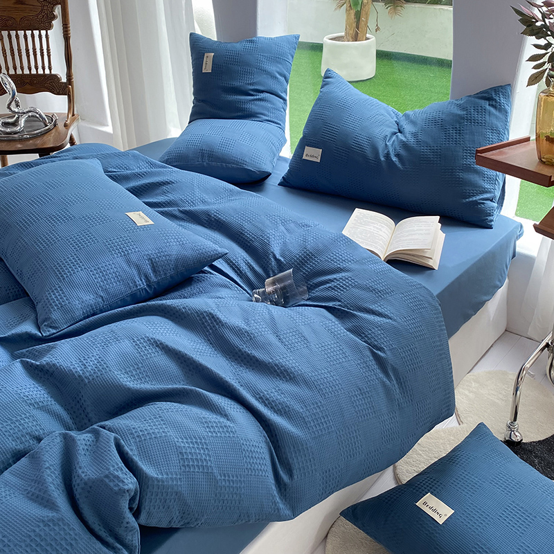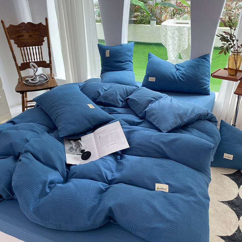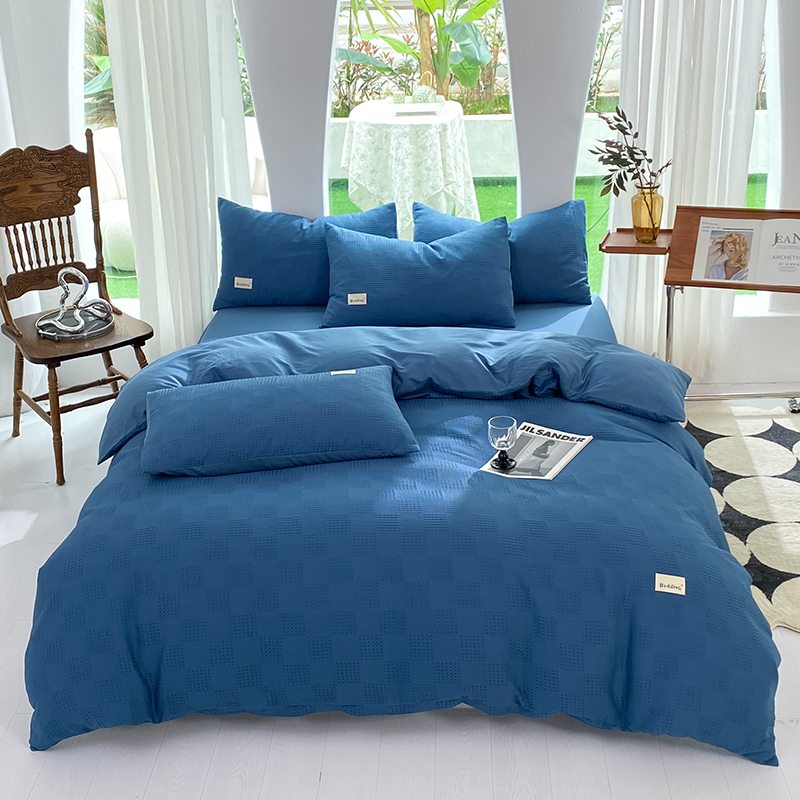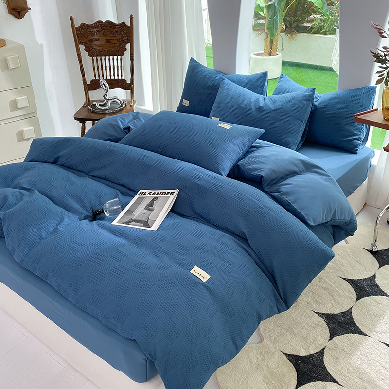 当前位置: 91家纺网 > 商品网购 > 床品套件 > 四件套 > 全棉普通四件套 > 澳梵家居 2023新品全棉华夫格四件套 棋格-宝石蓝