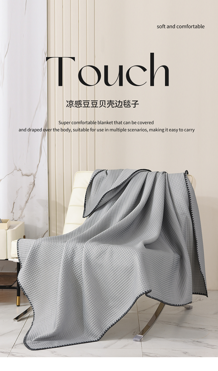 妖妖家纺 2023新款贝壳绣凉感豆豆盖毯 低调灰