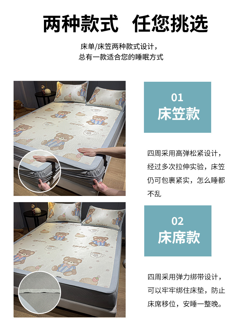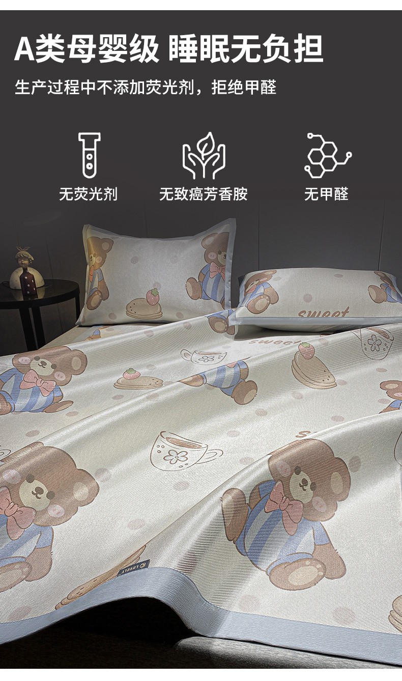 (总)安哆啦 A类数码印花冰丝藤席三件套