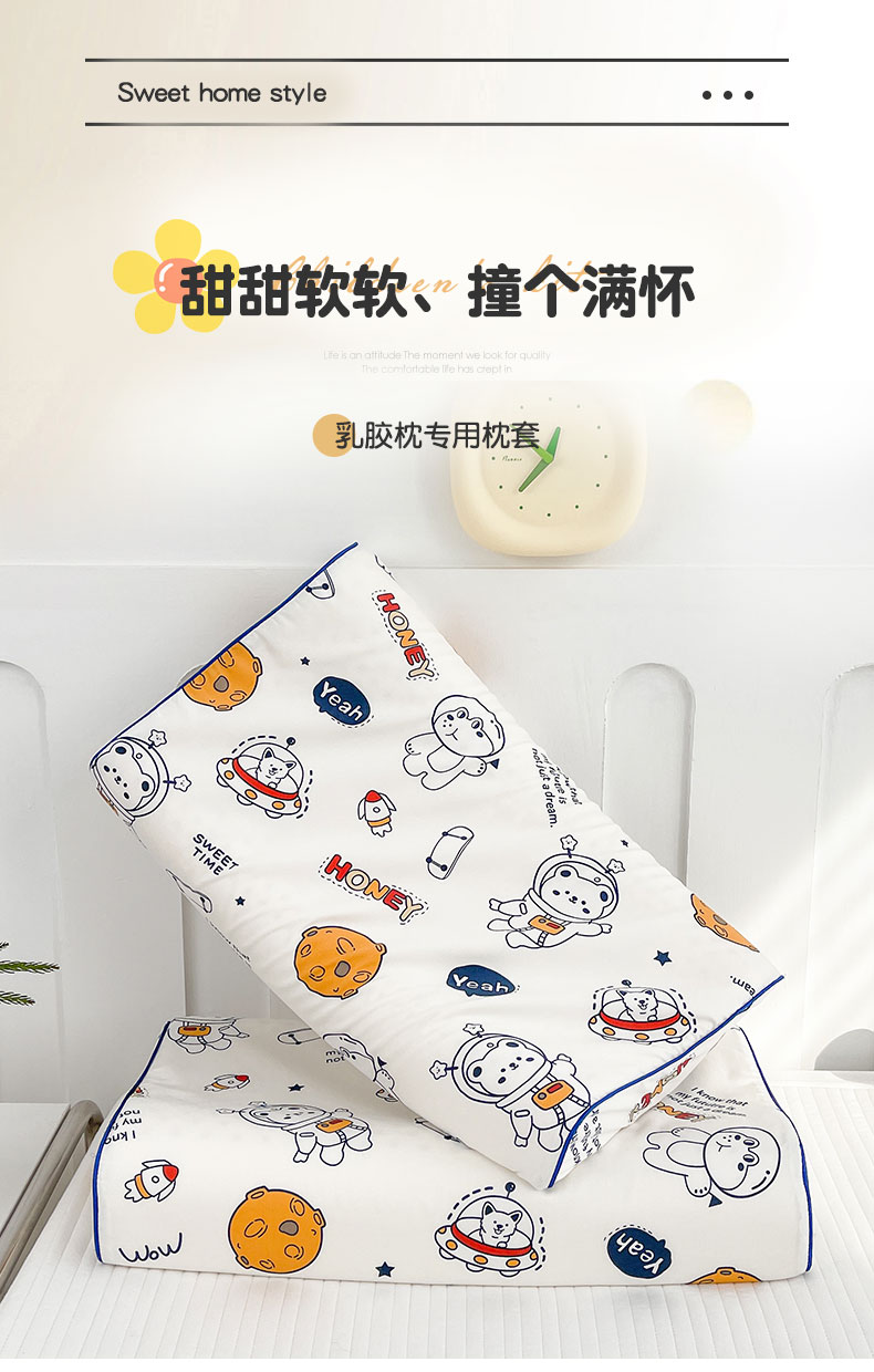 (总)良佐生活 2025新款A类60s全棉贡缎乳胶枕套,滑板恐龙,恐龙滴滴车,小熊探月,萌宠派对,晚安熊宝,凯蒂小猫,甜蜜派,米菲小兔