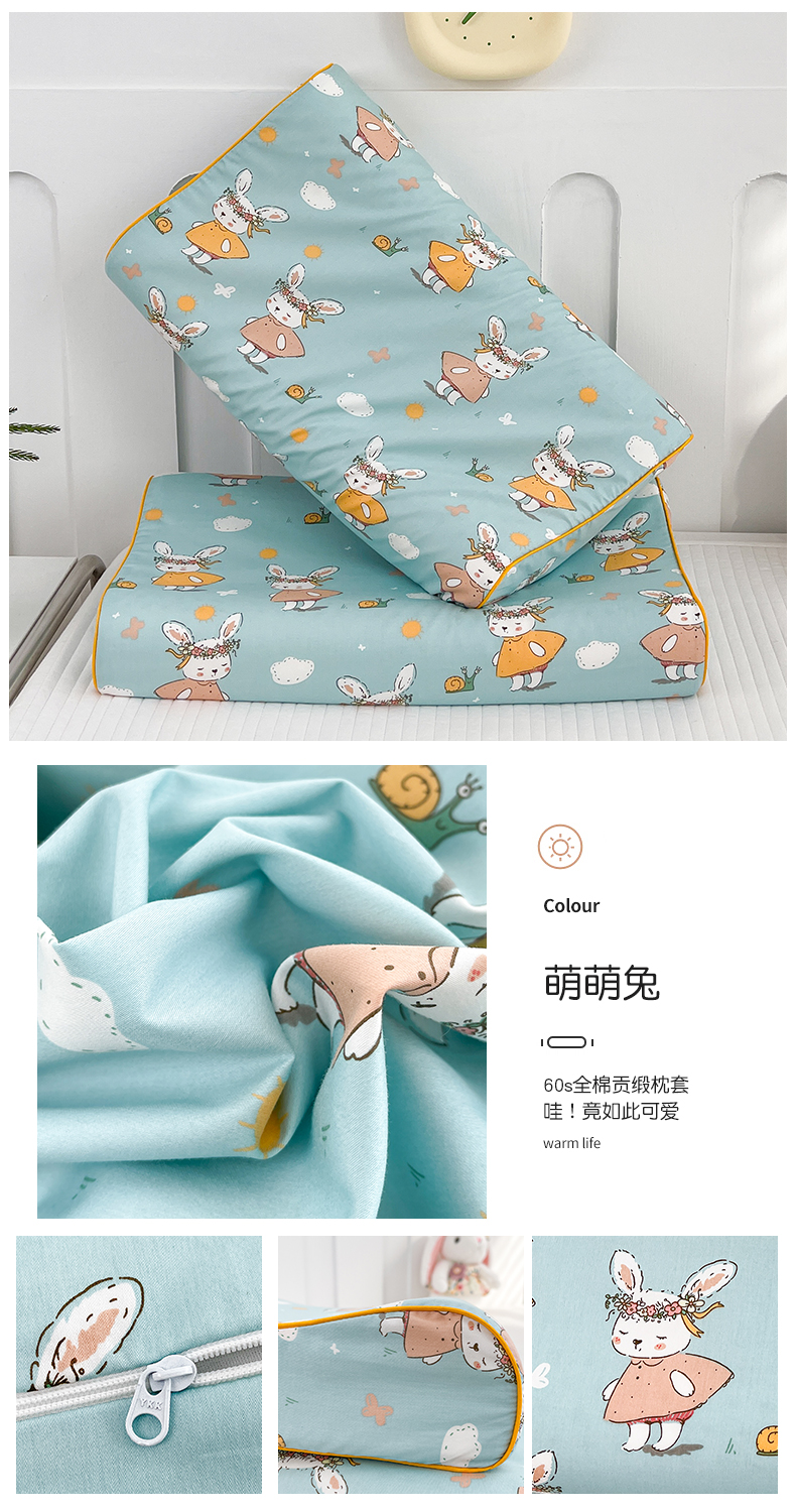 商品名称:良佐生活 2023新款A类60支全棉贡缎乳胶枕枕套 萌萌兔