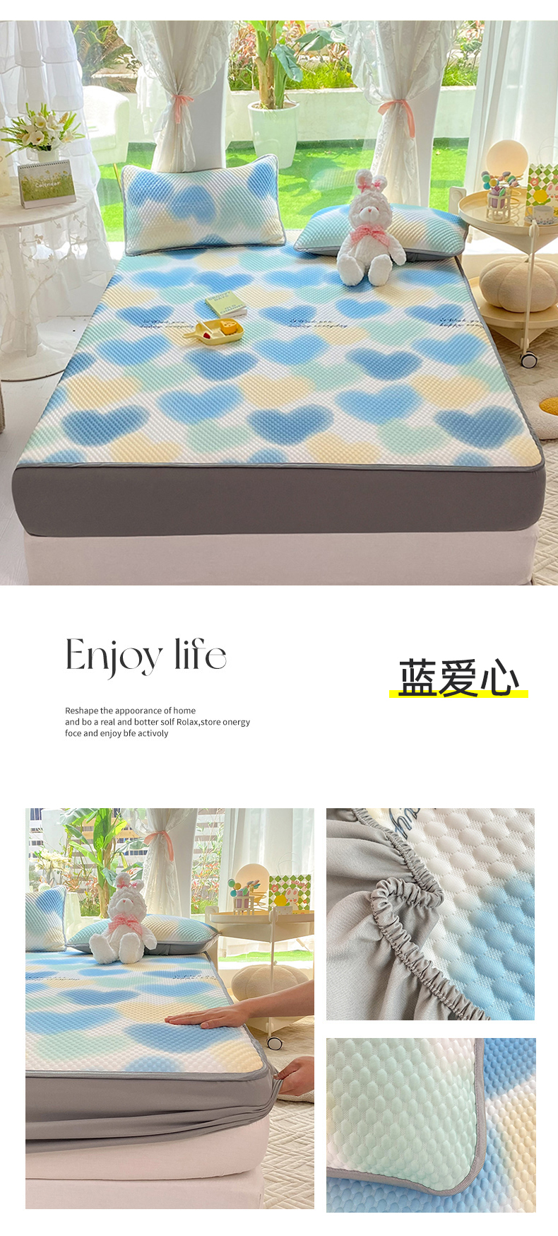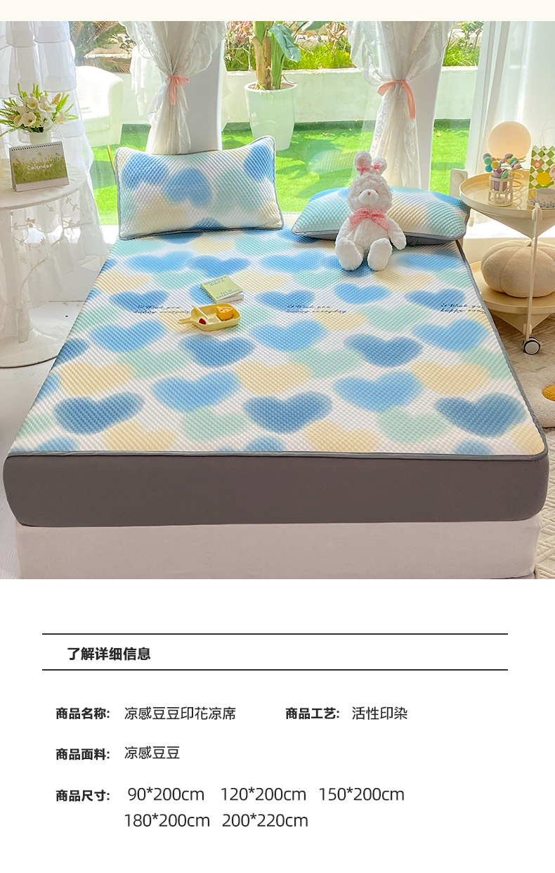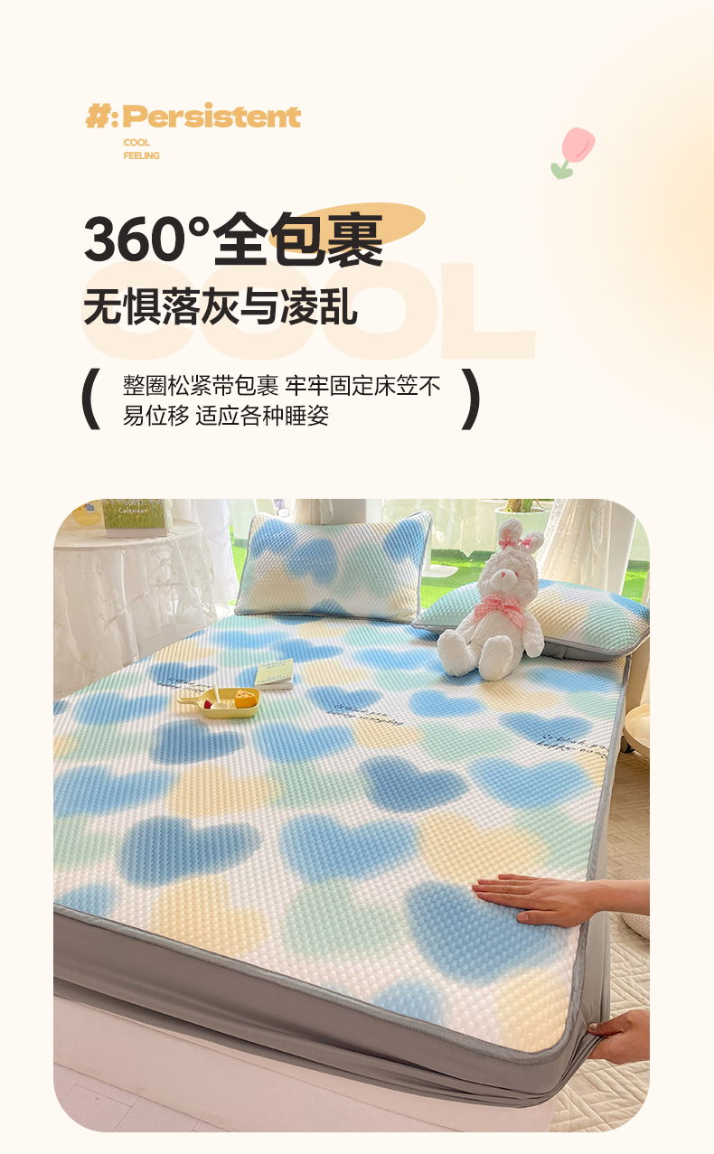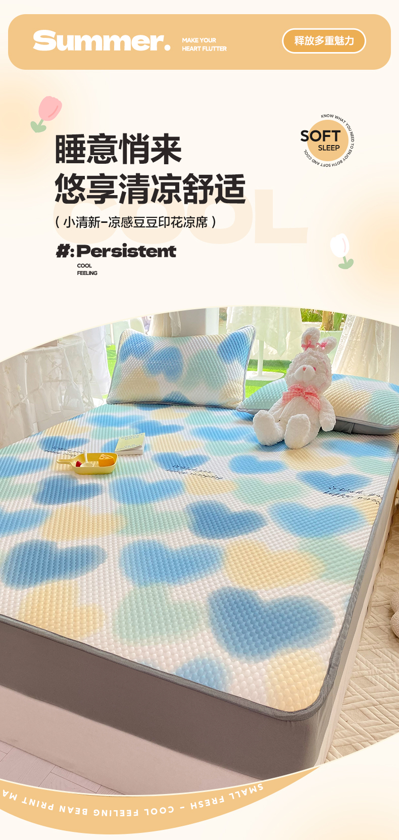 总云家2023新款3D冰豆豆凉席三件套床笠款席子凉席空调席软席-场景二,波浪,格子兔,蓝爱心,清新绿,向漾花,小黑花,小蓝花,小兔子,炫彩