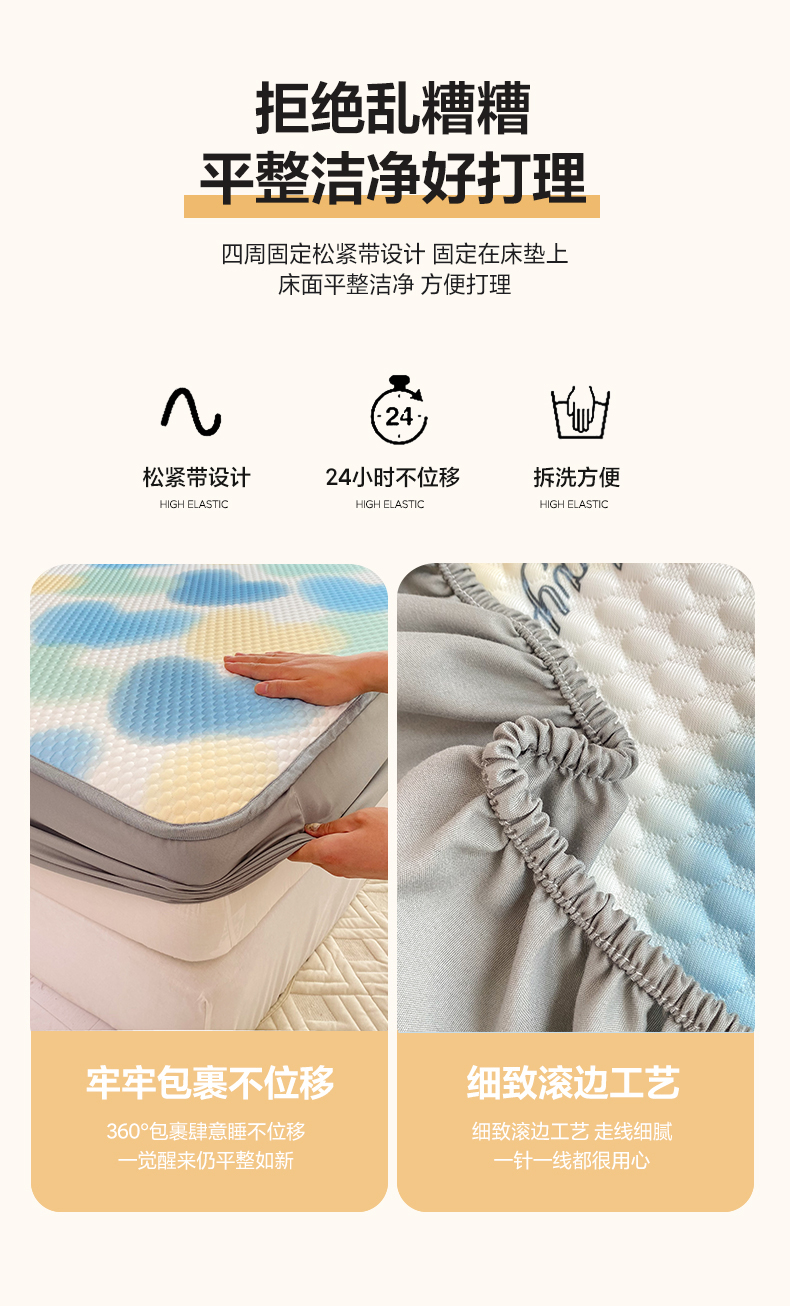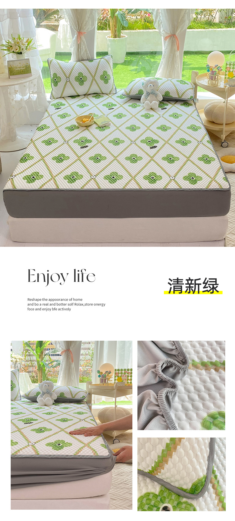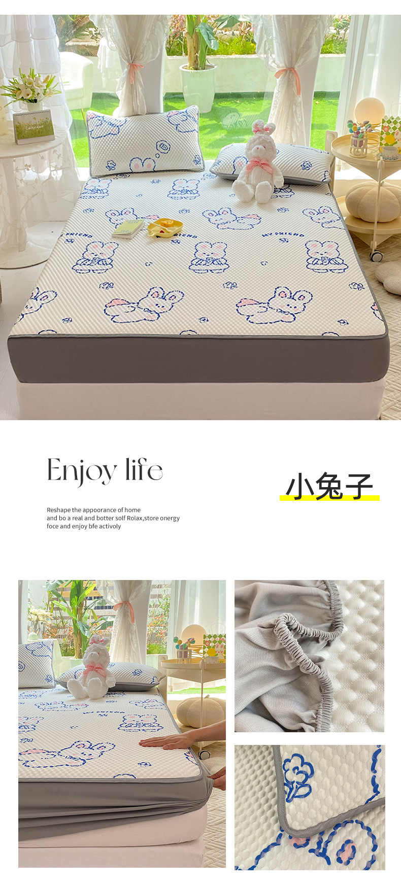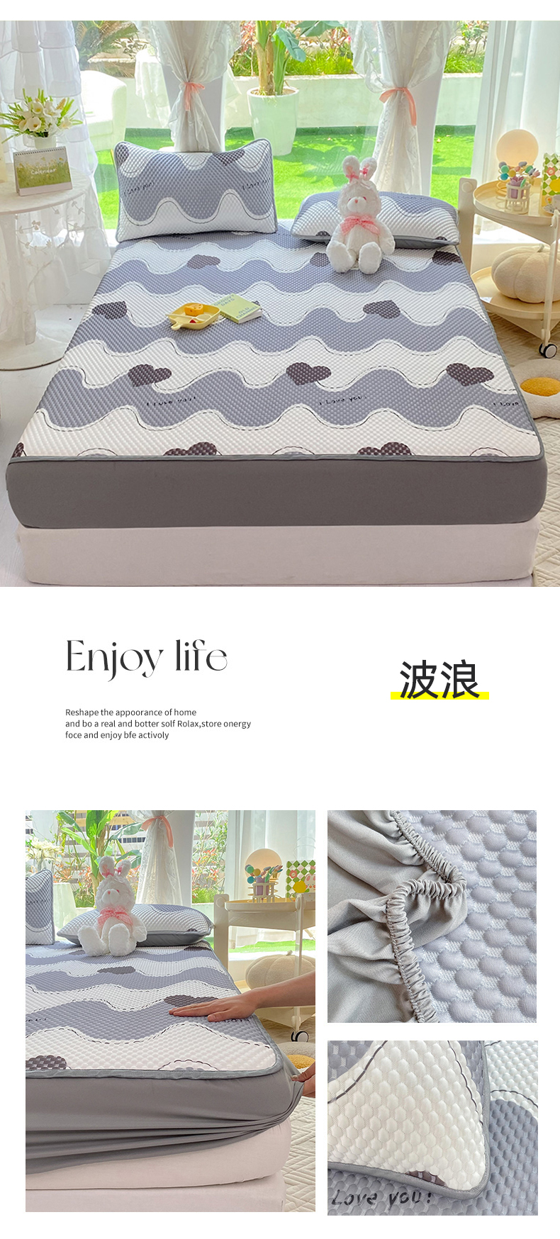 总云家2023新款3D冰豆豆凉席三件套床笠款席子凉席空调席软席-场景二,波浪,格子兔,蓝爱心,清新绿,向漾花,小黑花,小蓝花,小兔子,炫彩