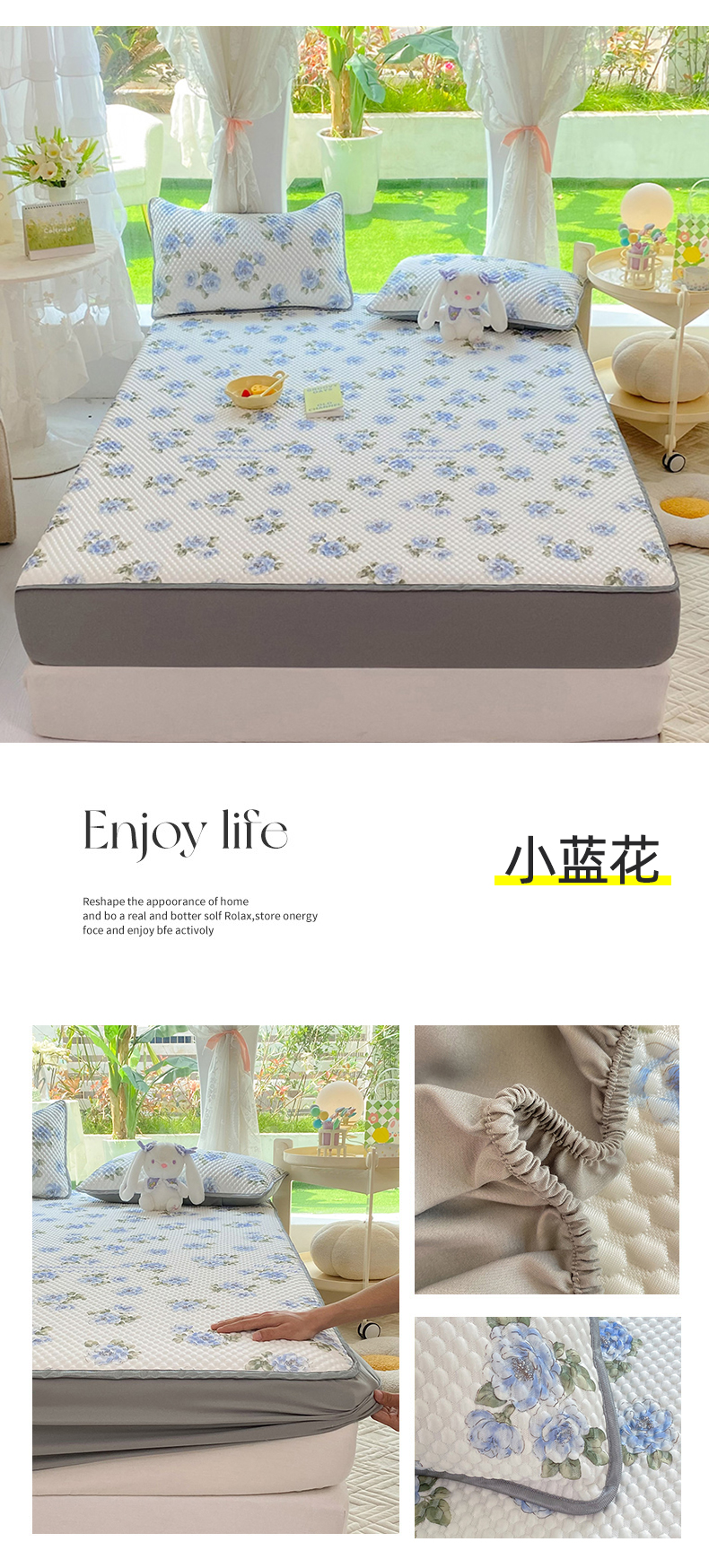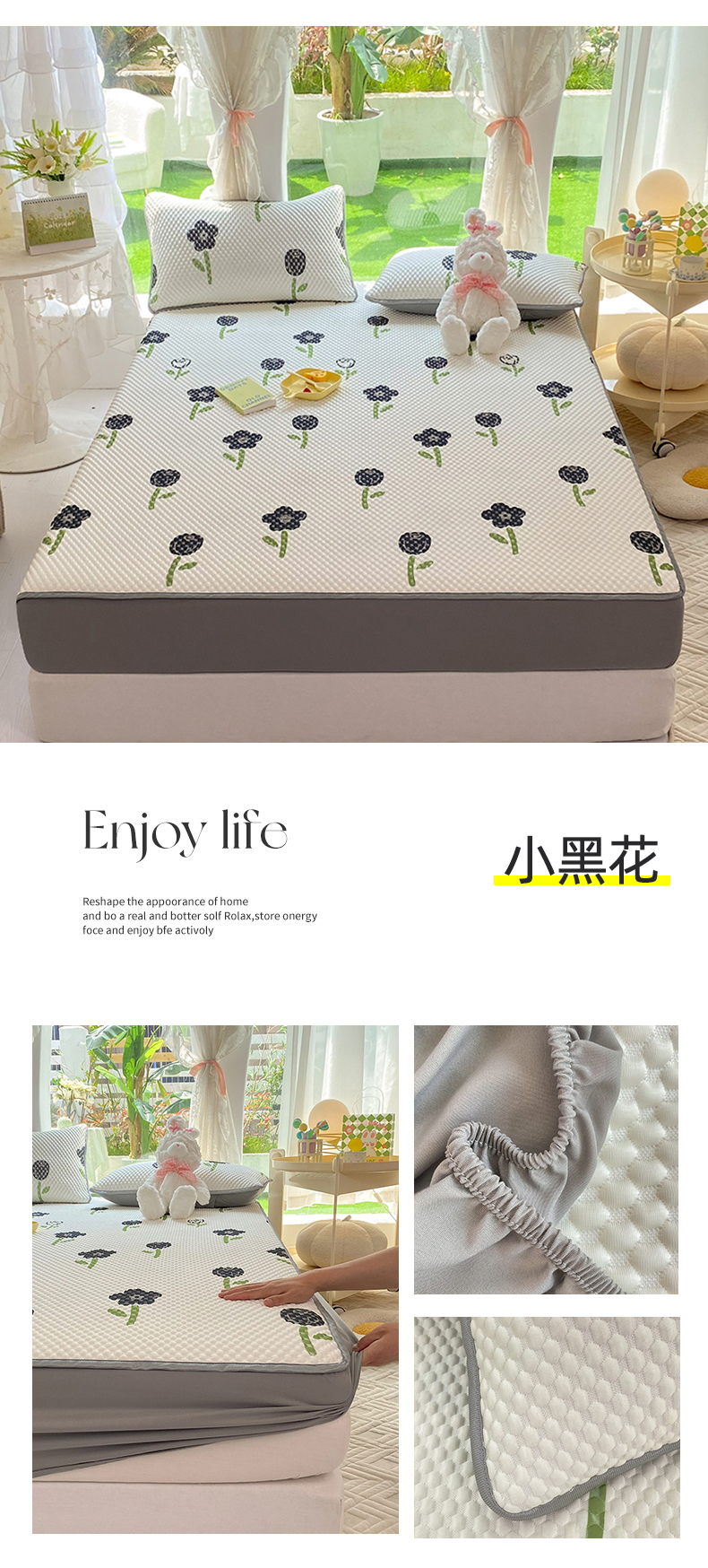 (总)云家 2023新款3D冰豆豆凉席三件套床笠款席子凉席空调席软席,小兔子,小蓝花,小黑花,格子兔,波浪,清新绿,炫彩,蓝爱心,向漾花