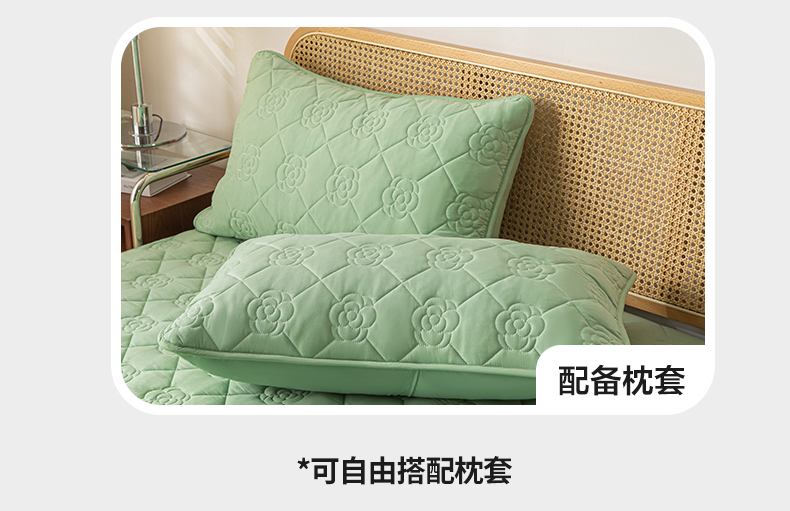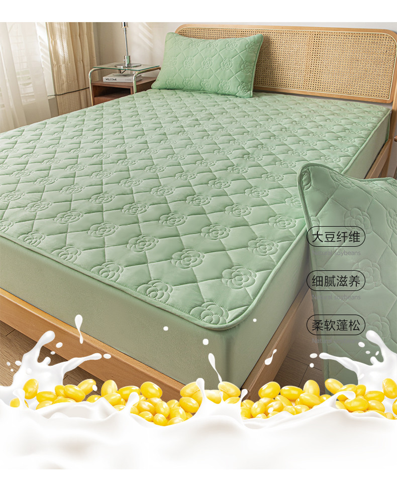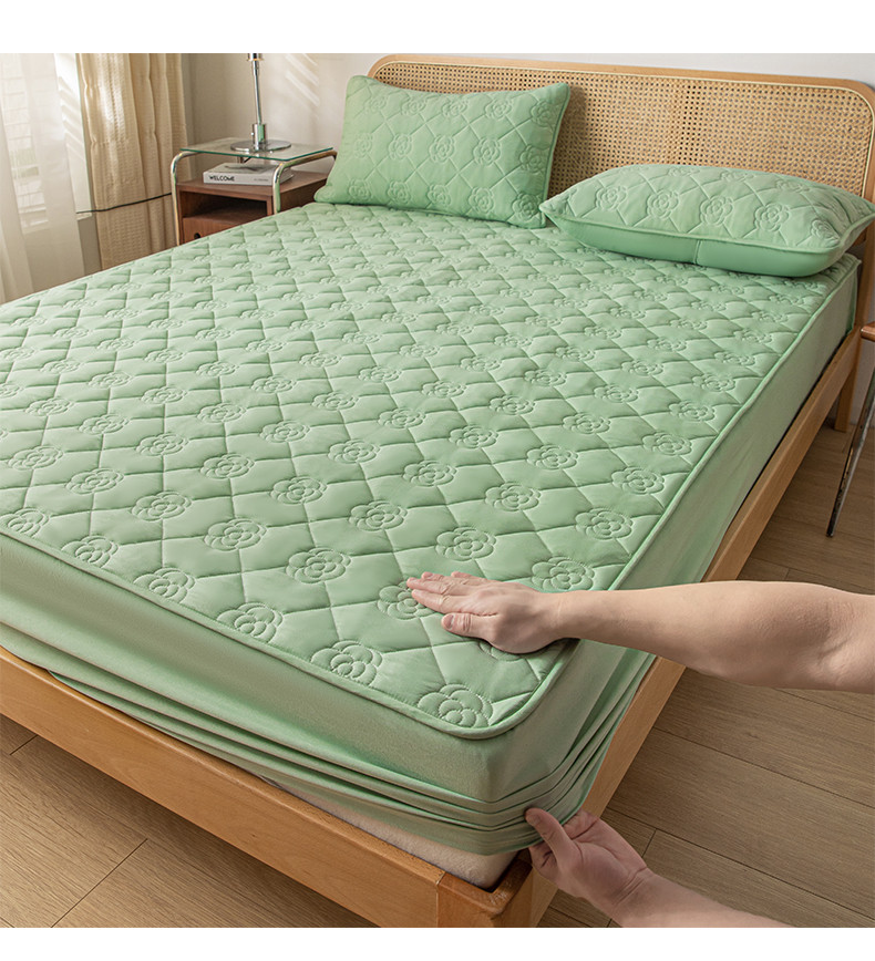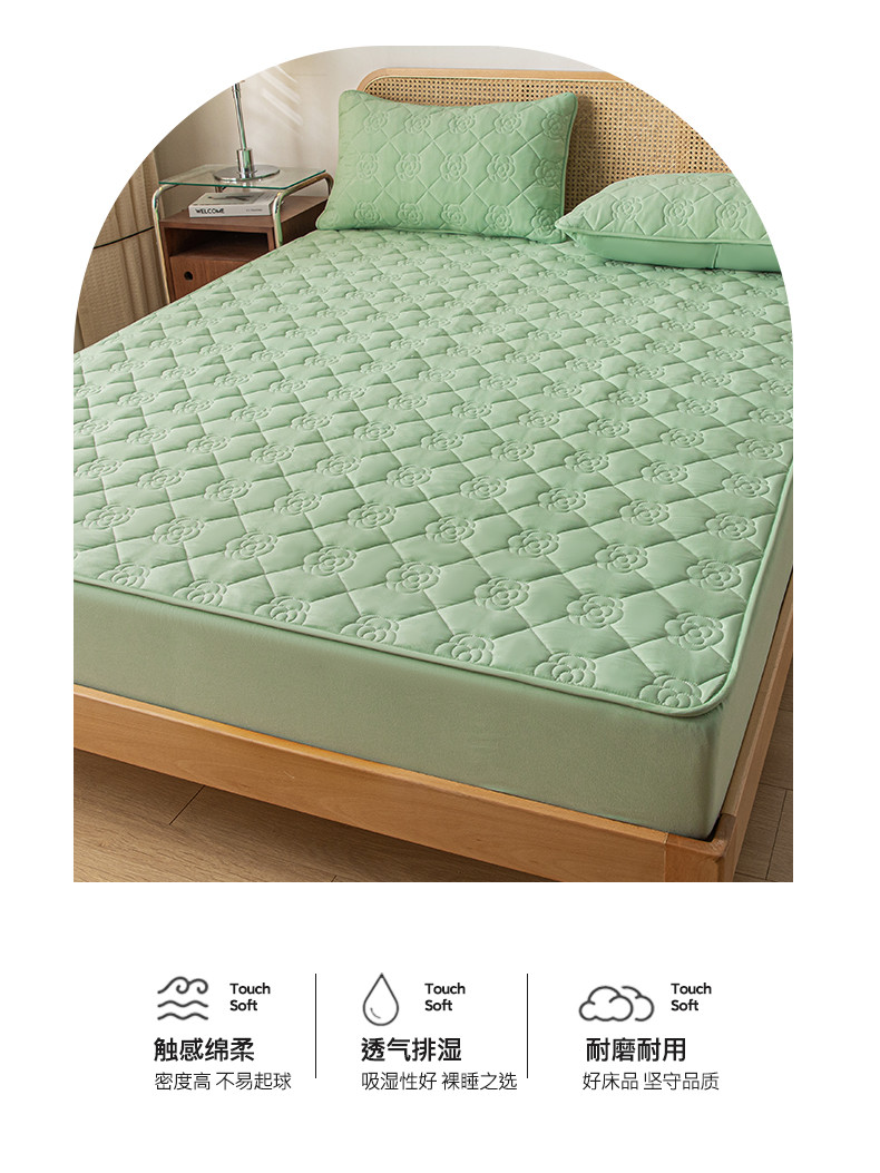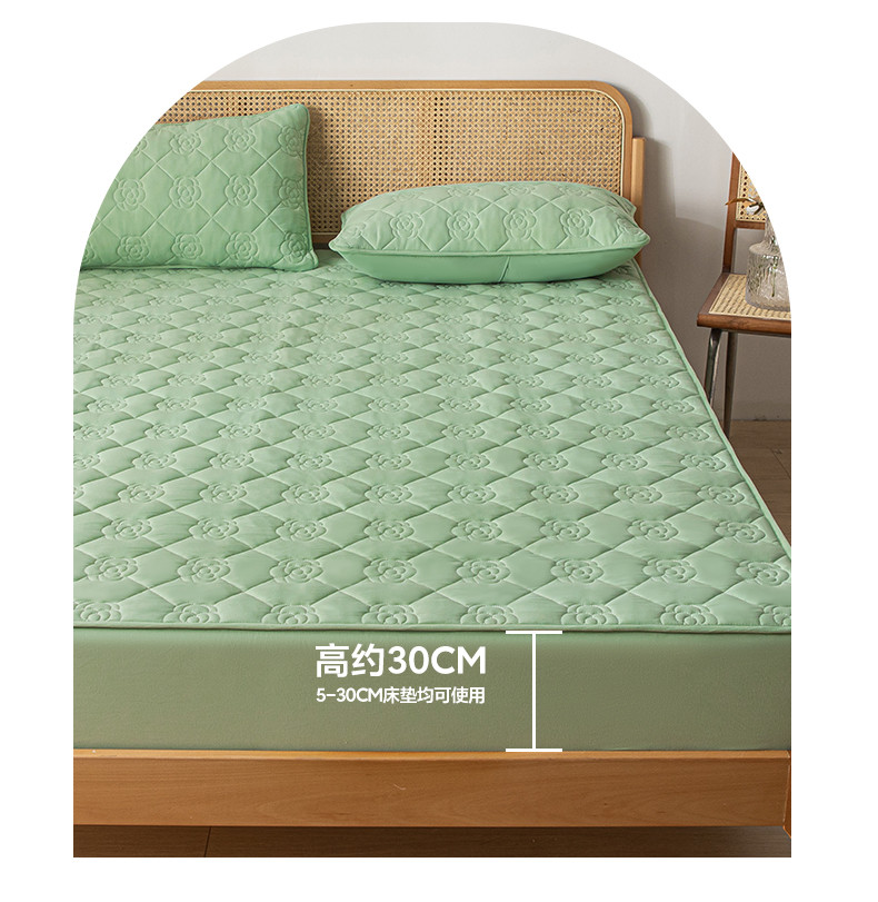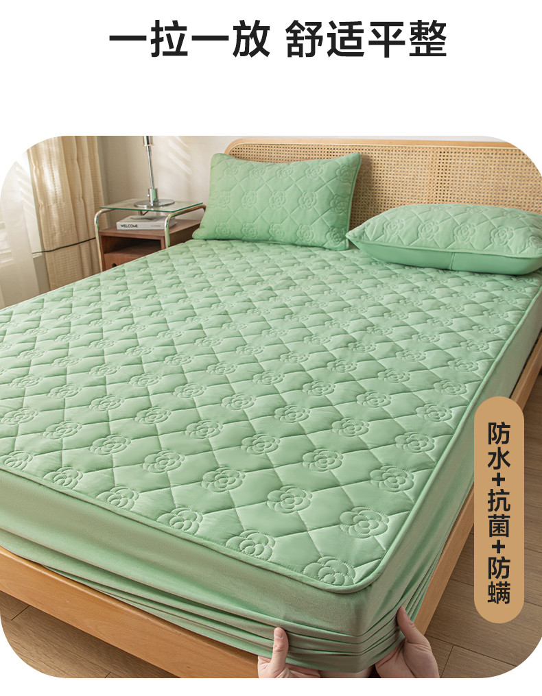 居眠2023新款防水大豆夹棉床笠 山茶花-翠绿