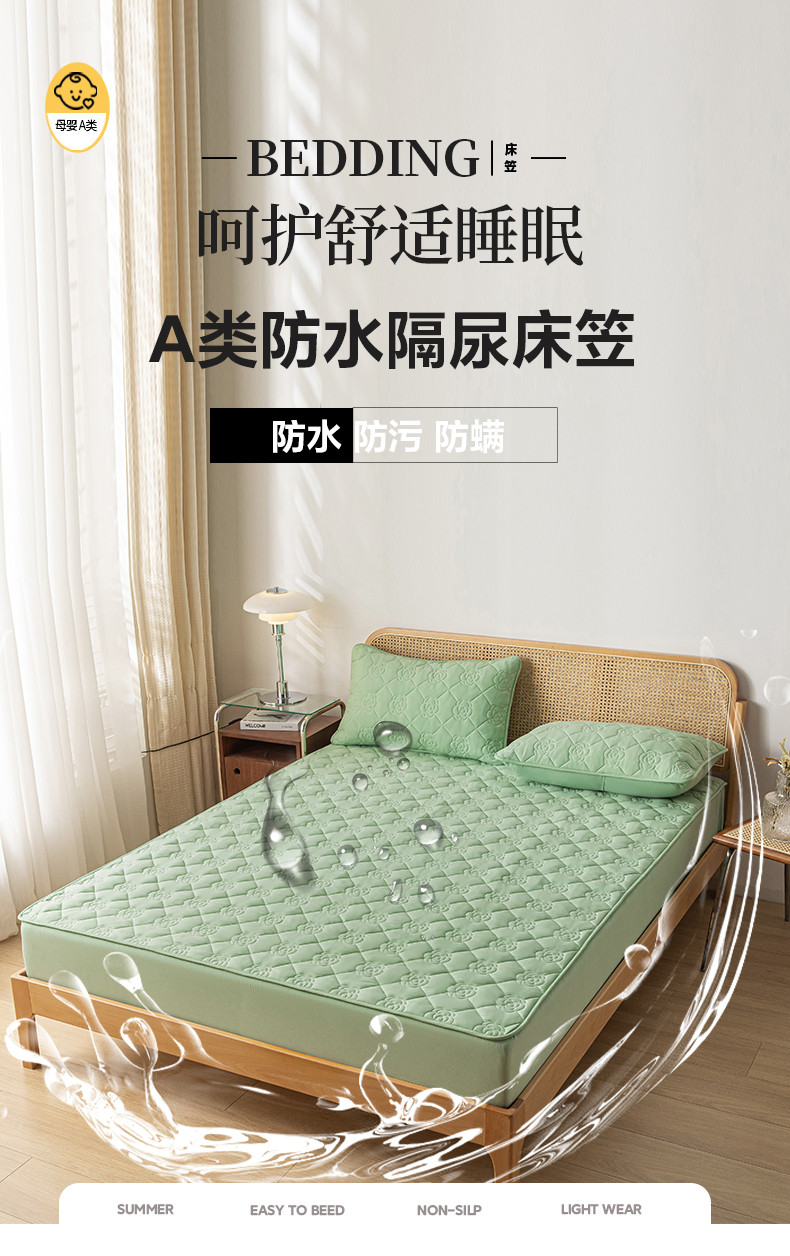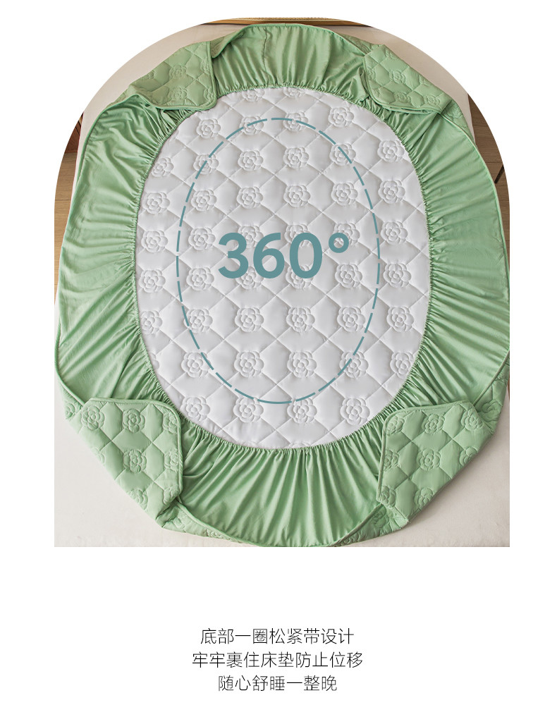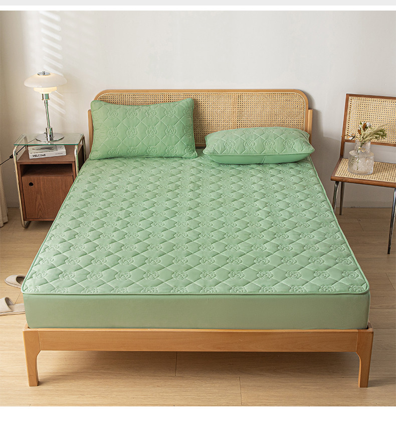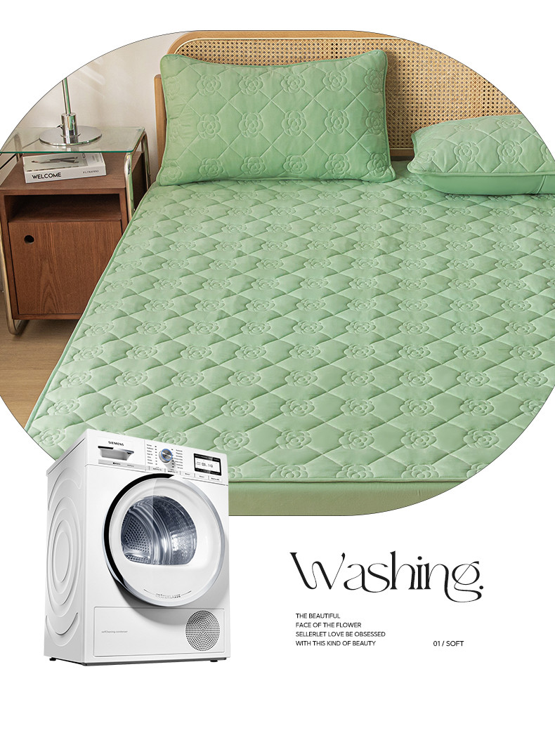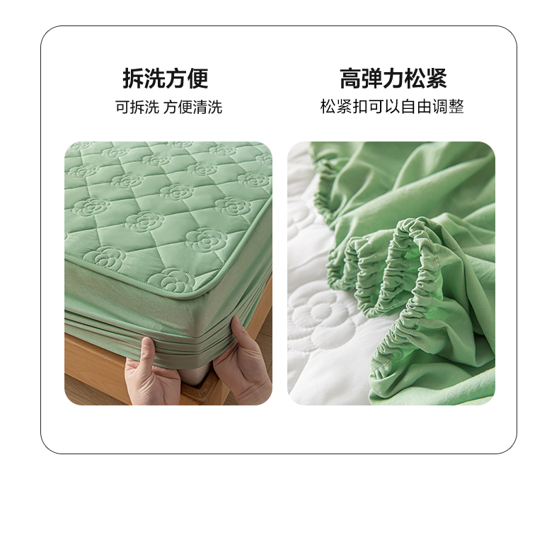 居眠2023新款防水大豆夹棉床笠 山茶花-翠绿
