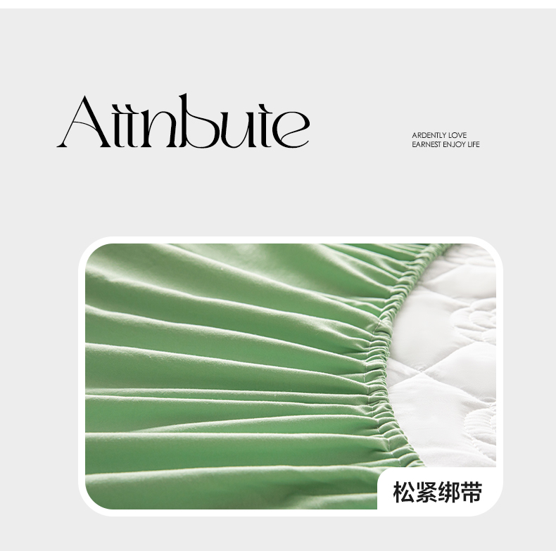 • 91家纺网 家纺一手货源 找家纺 居眠2023新款防水大豆夹棉床笠 山茶花-翠绿