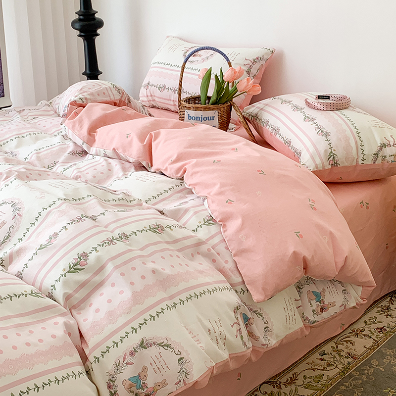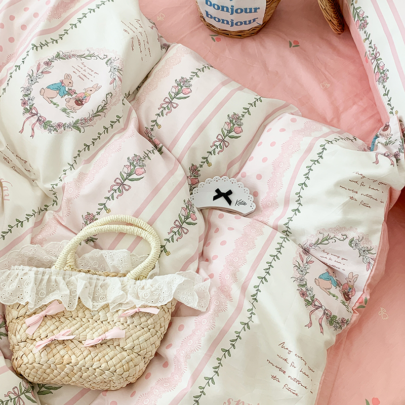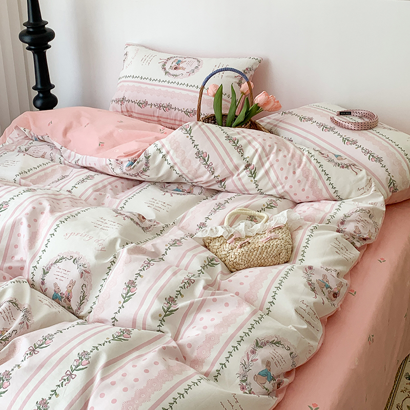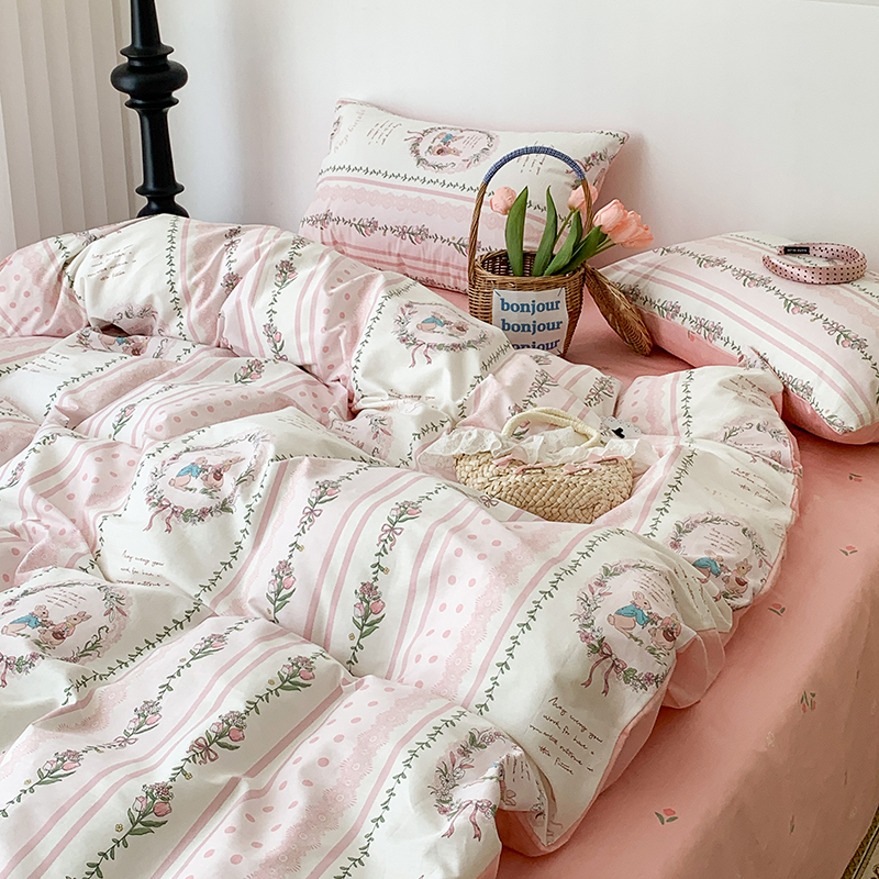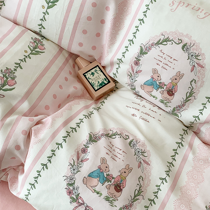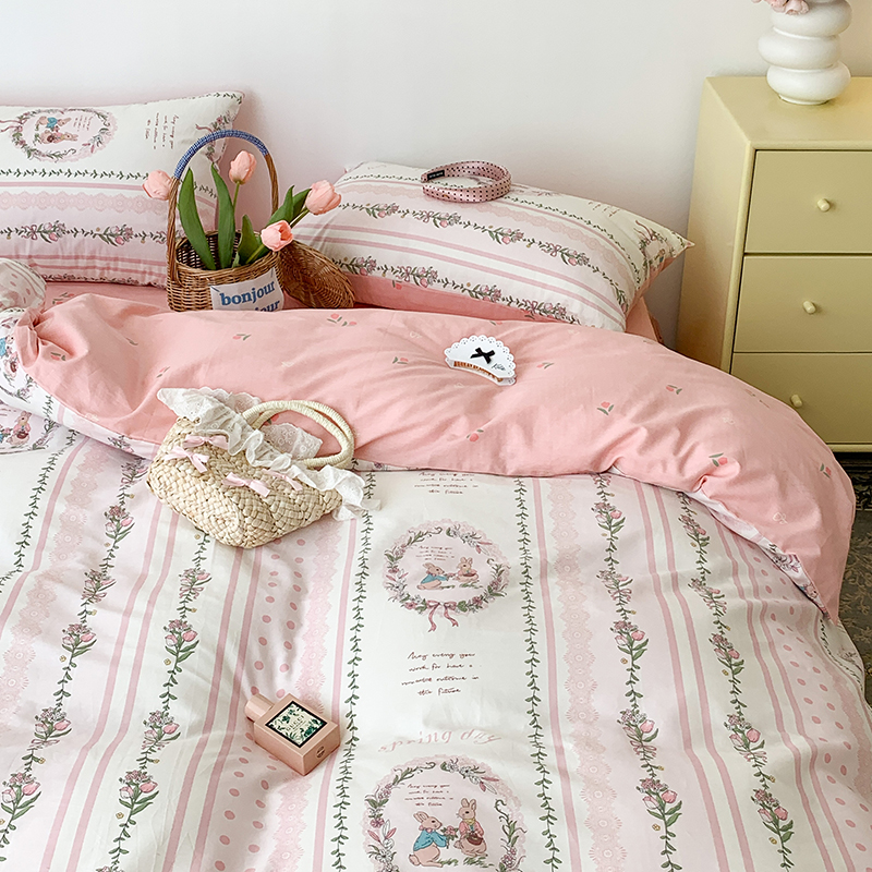 昔可家纺 2023新款全棉怦然心动小花系列四件套 安妮兔兔花园