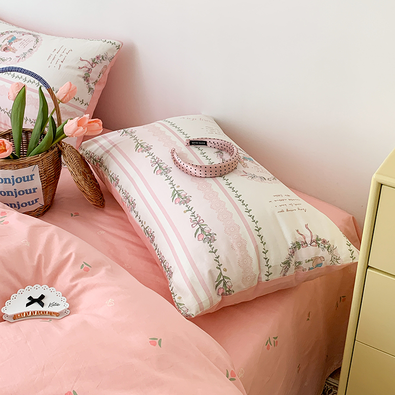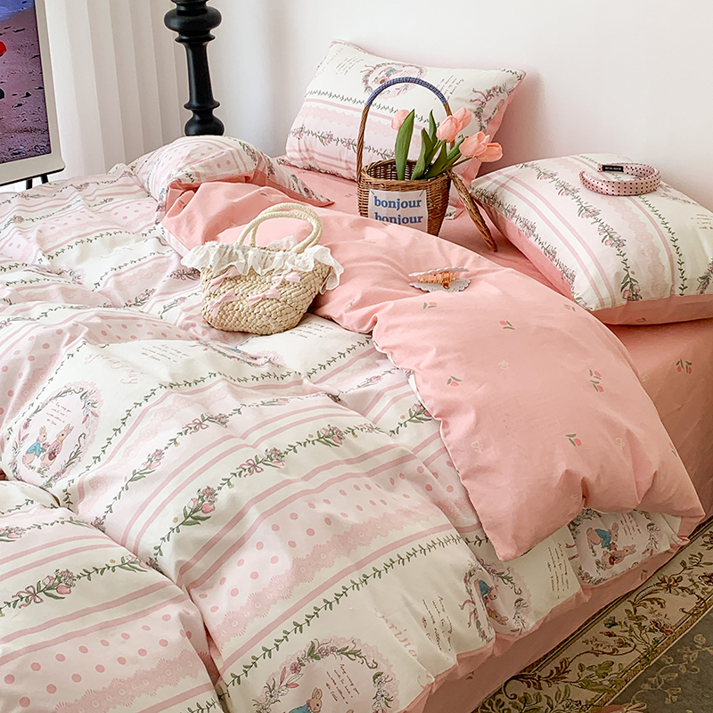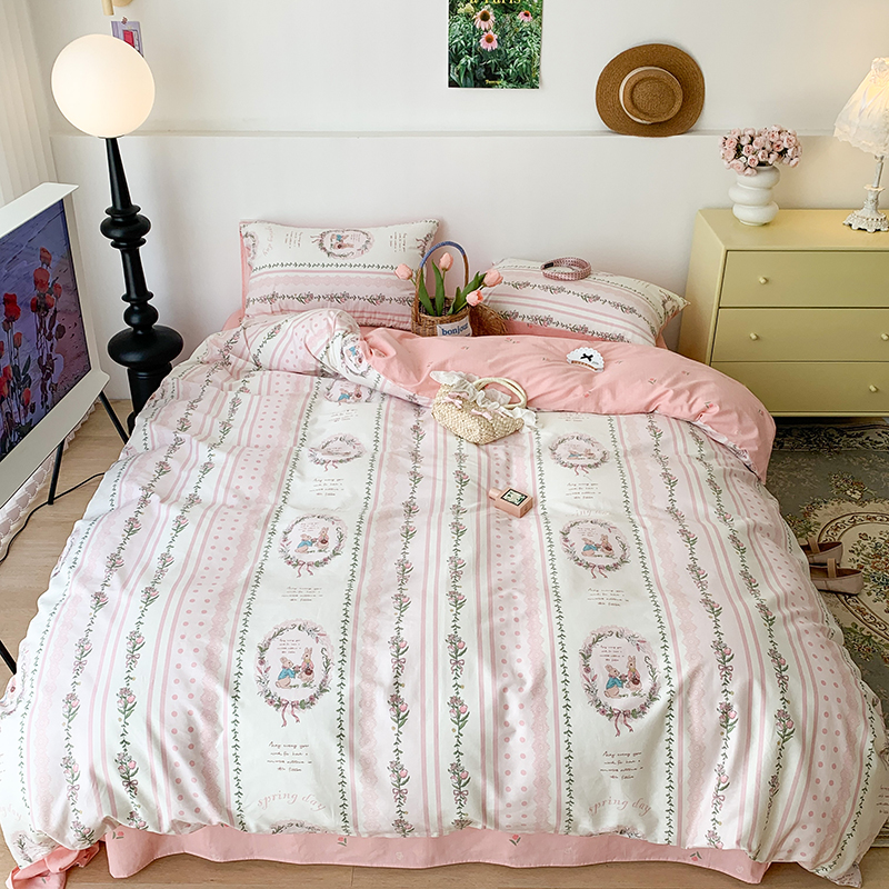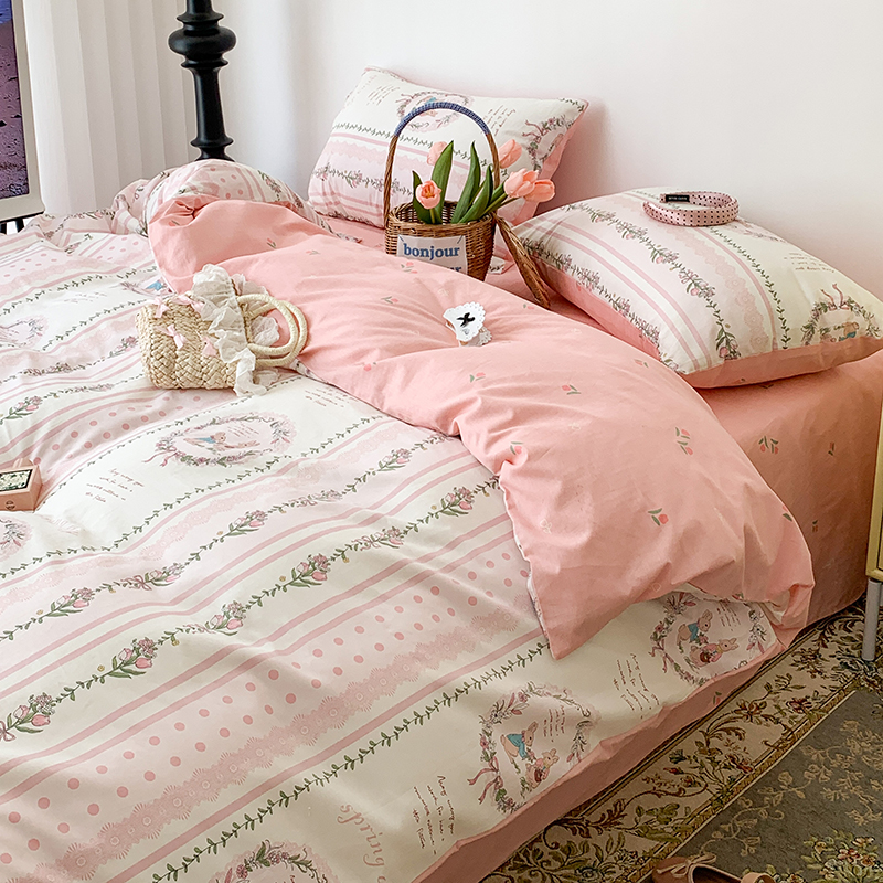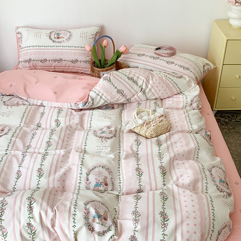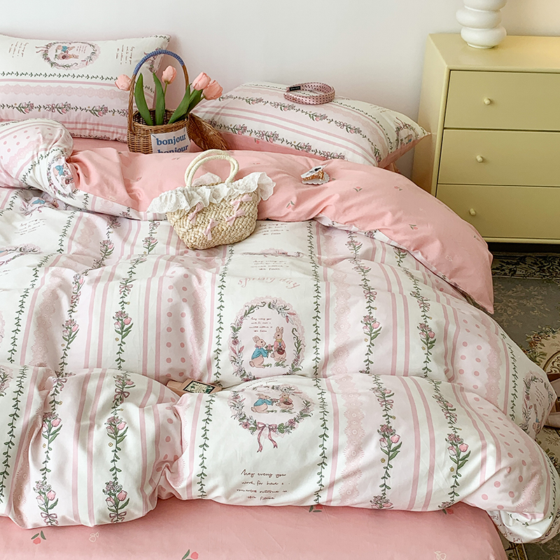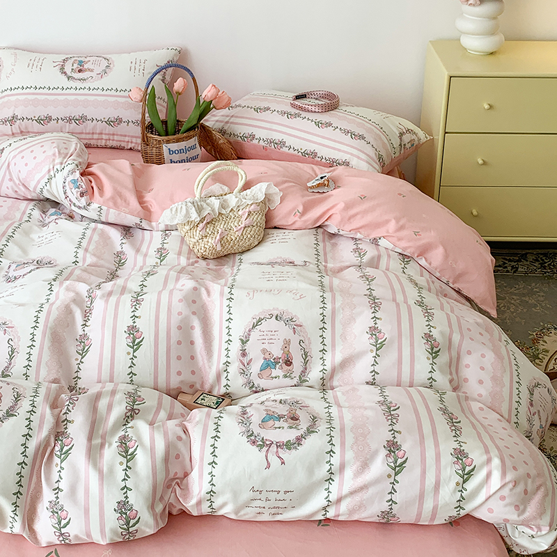 昔可家纺 2023新款全棉怦然心动小花系列四件套 安妮兔兔花园