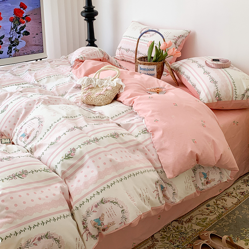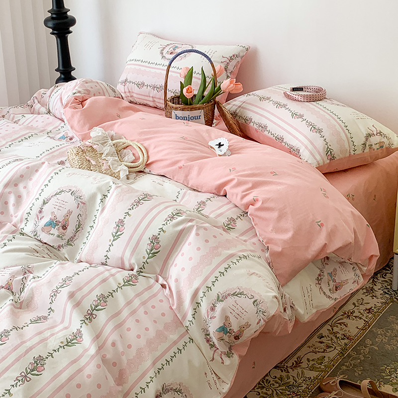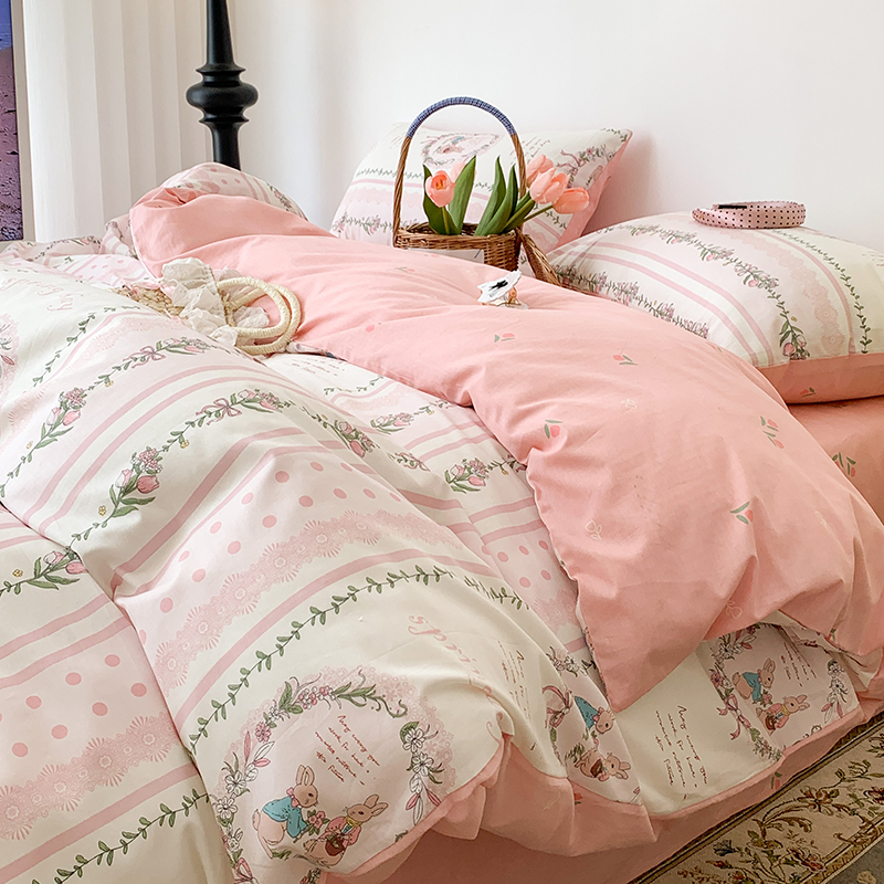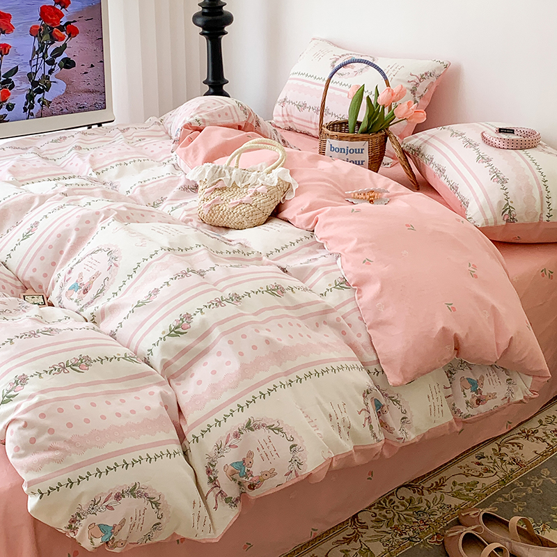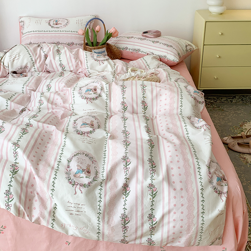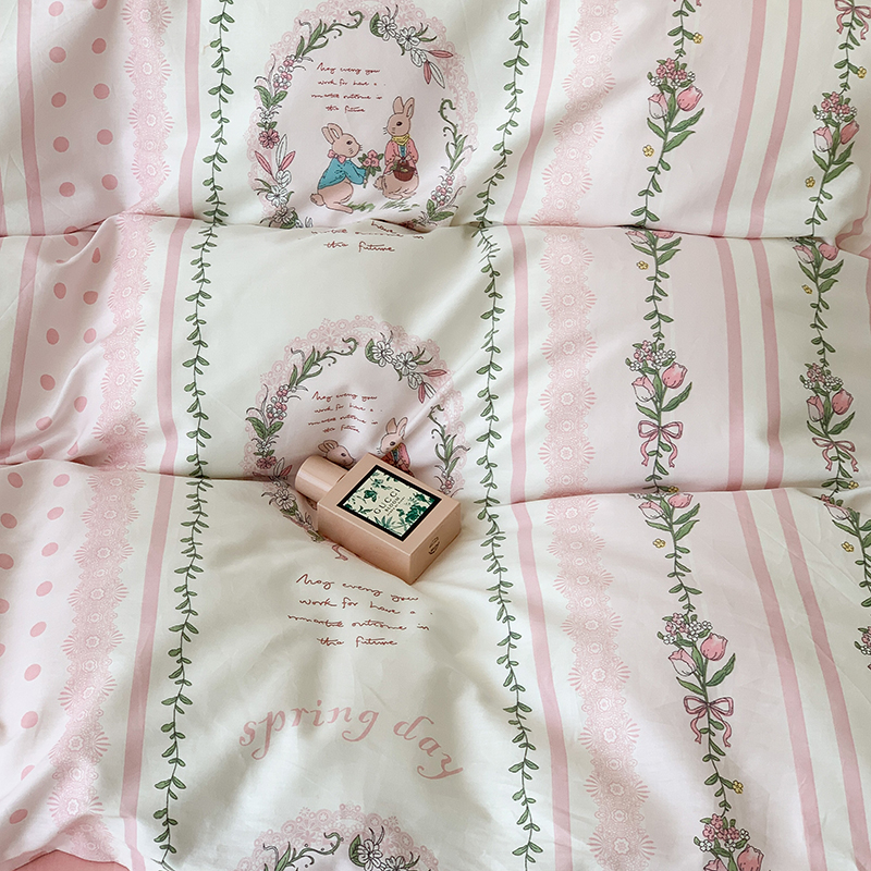 商品名称:昔可家纺 2023新款全棉怦然心动小花系列四件套 安妮兔兔花园