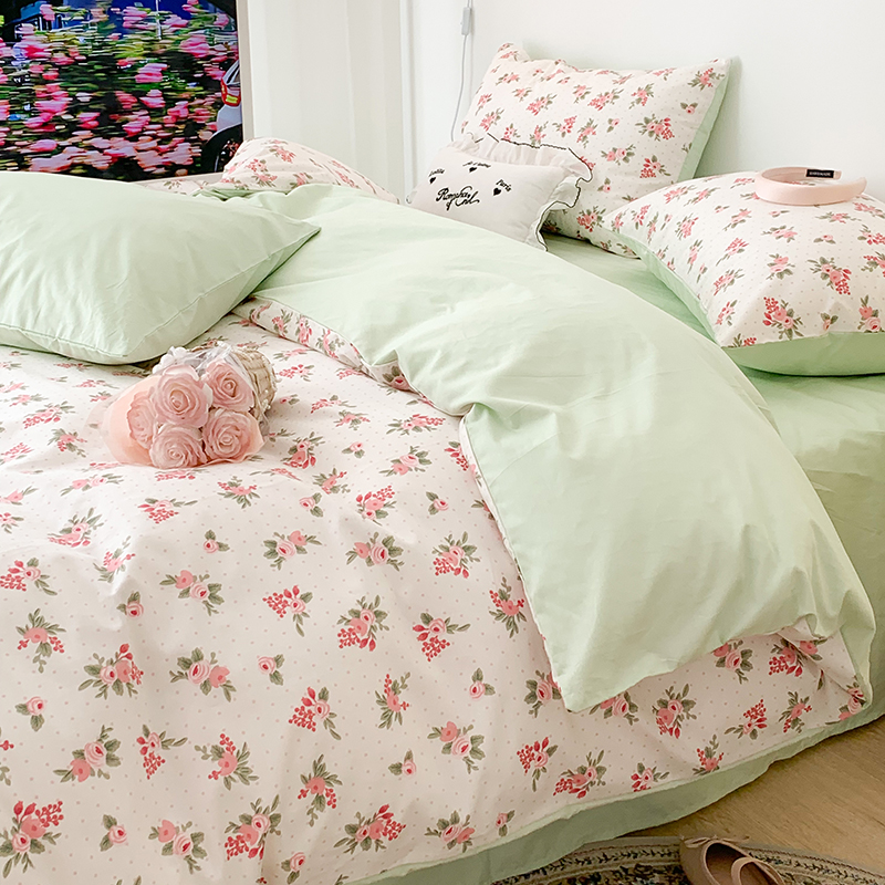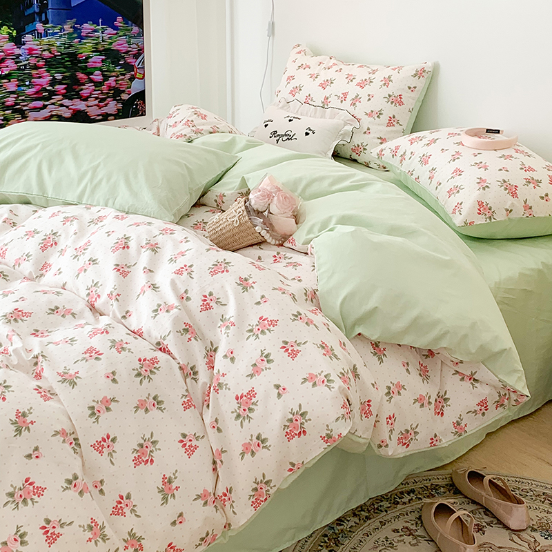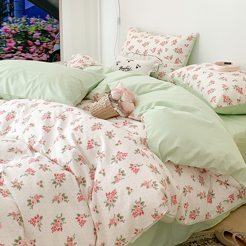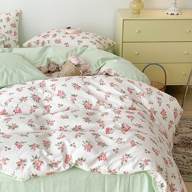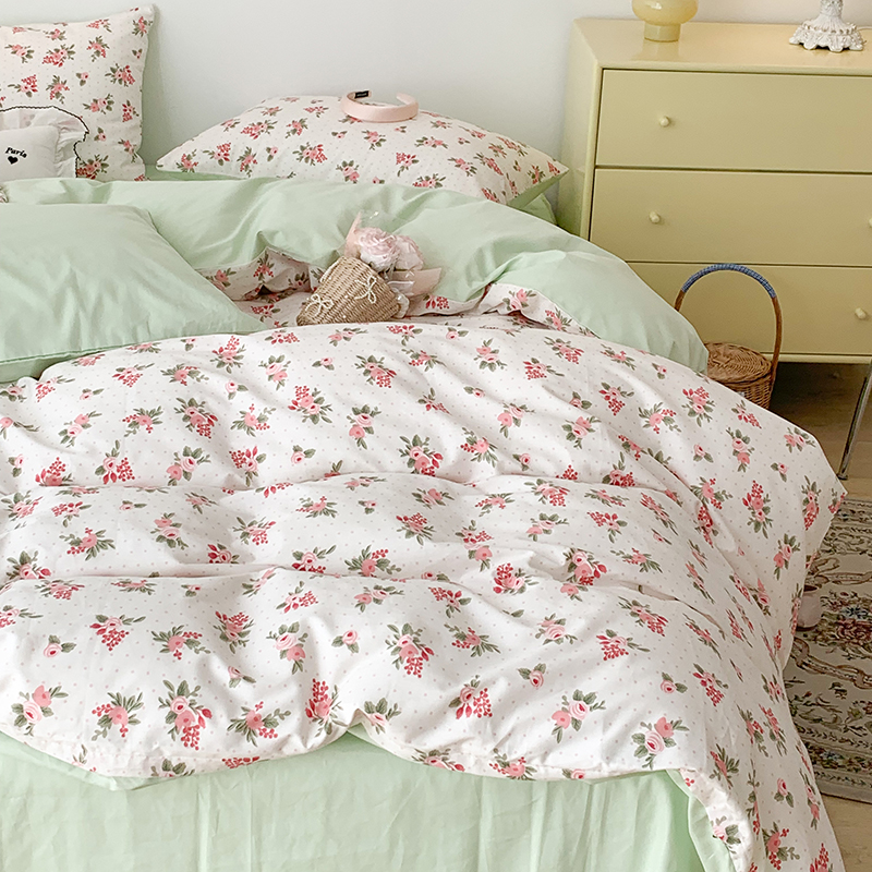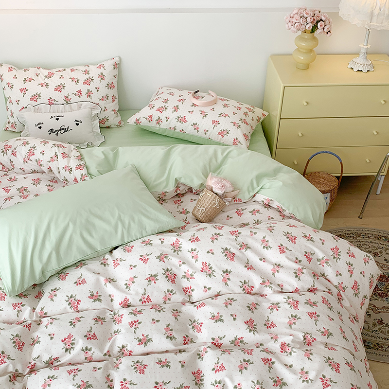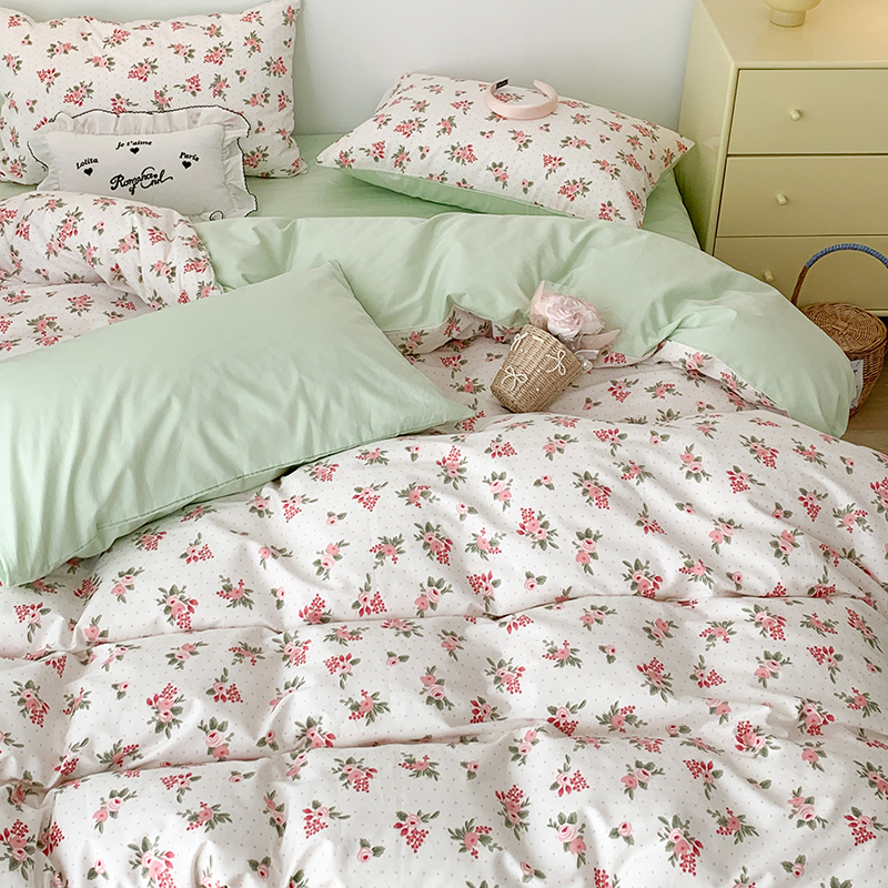 商品名称:昔可家纺 2023新款全棉怦然心动小花系列四件套 蔷薇少女