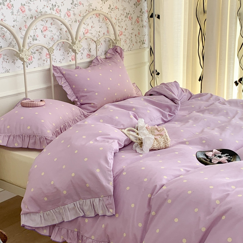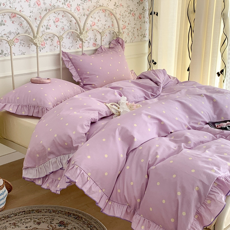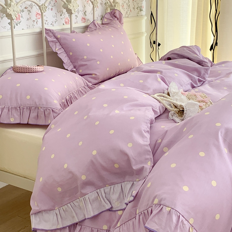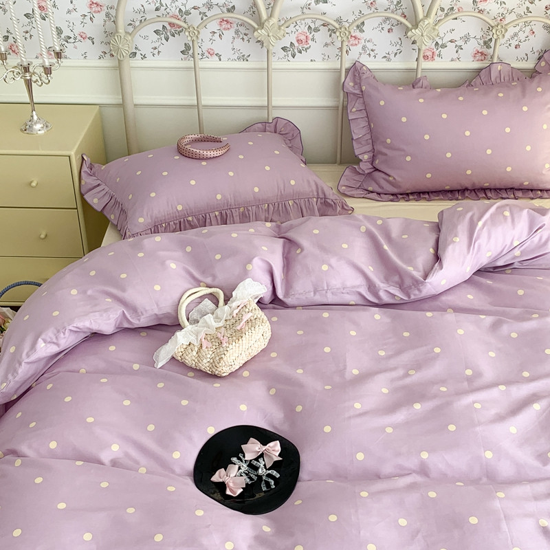 昔可 2023新款复古波点花边系列四件套 紫底波点