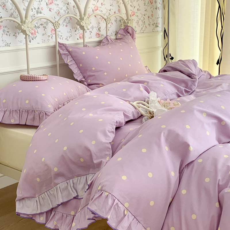 商品名称:昔可 2023新款复古波点花边系列四件套 紫底波点