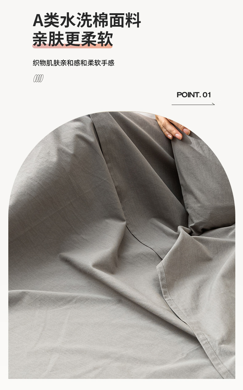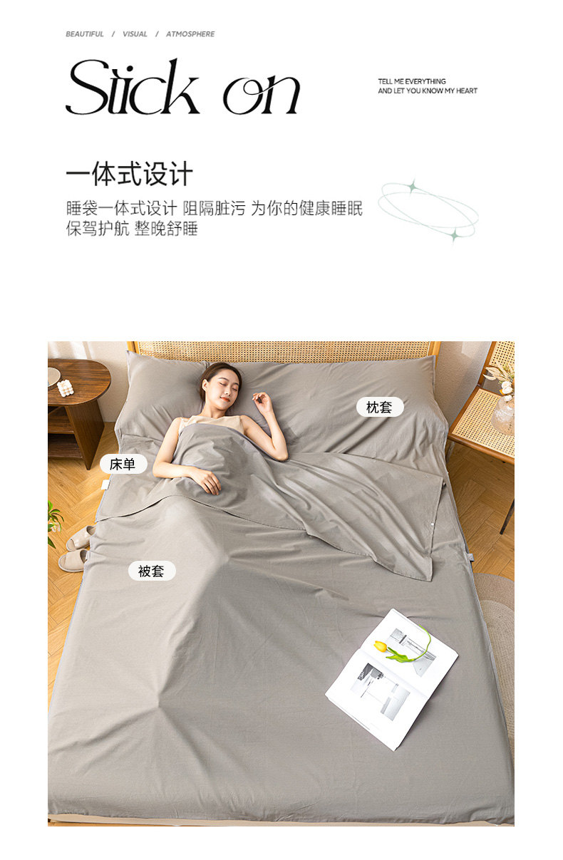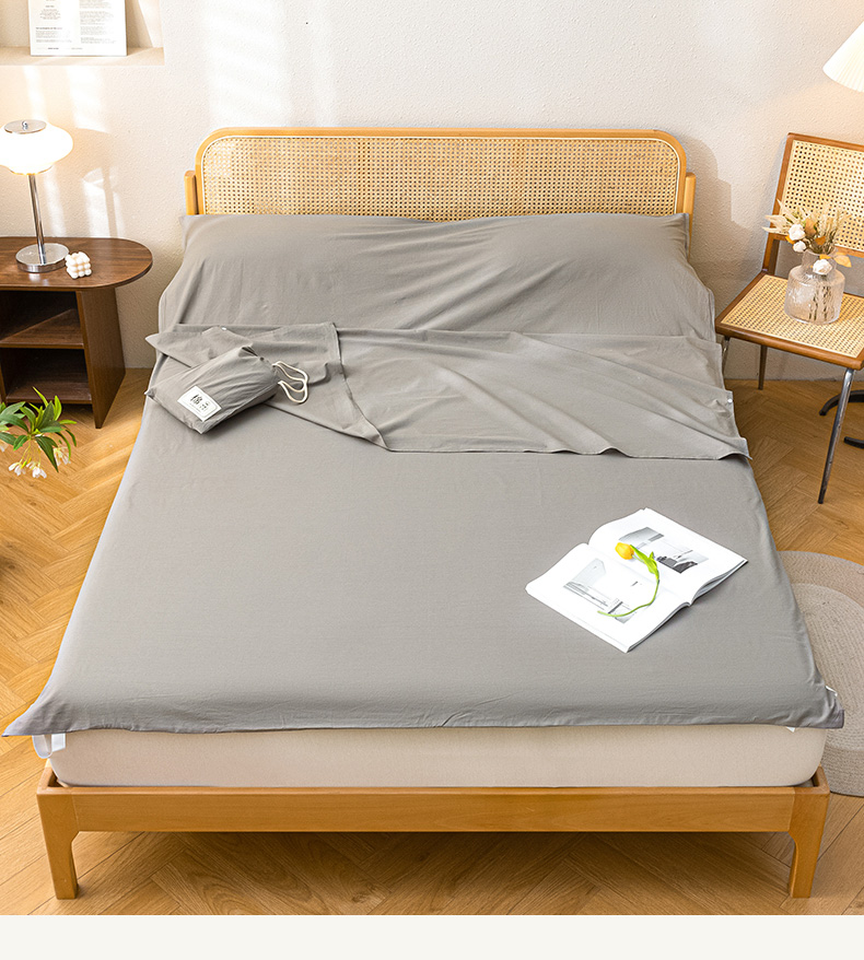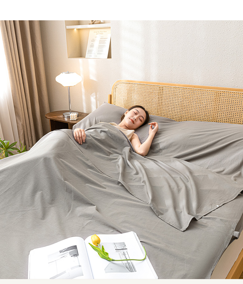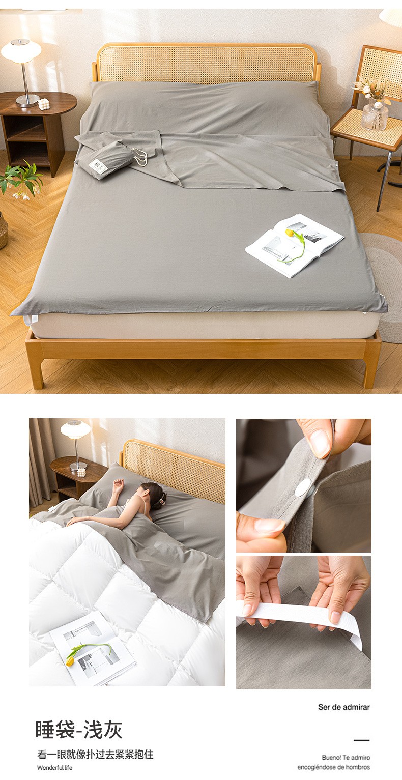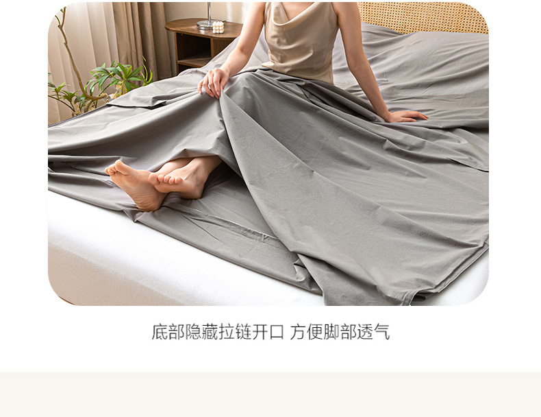 眠帛家居 2023新款A类亲肤水洗棉隔脏睡袋 浅灰
