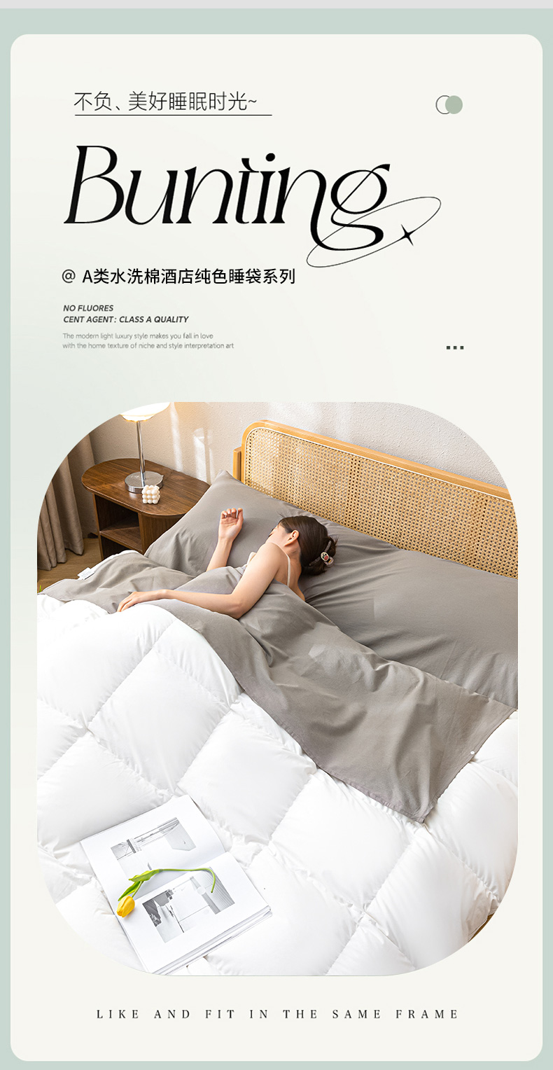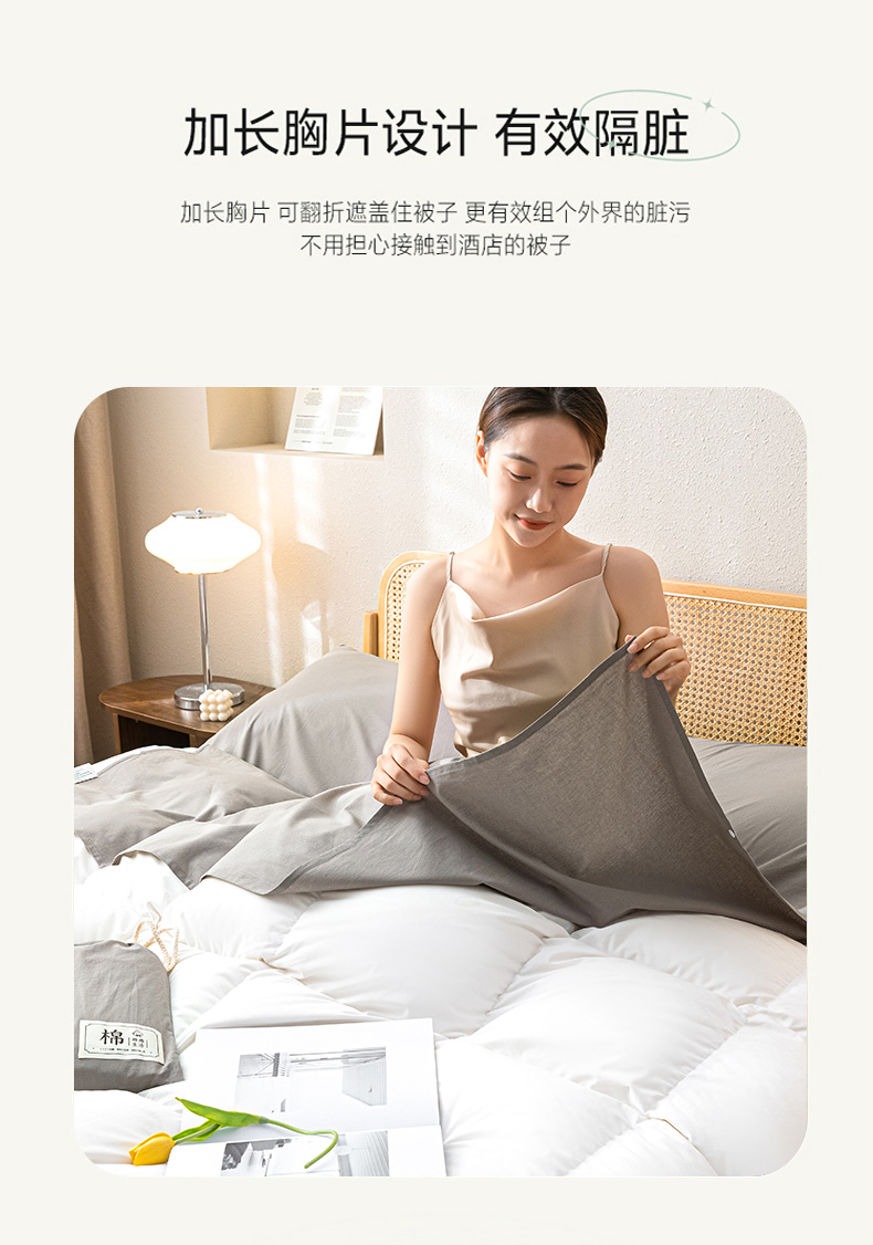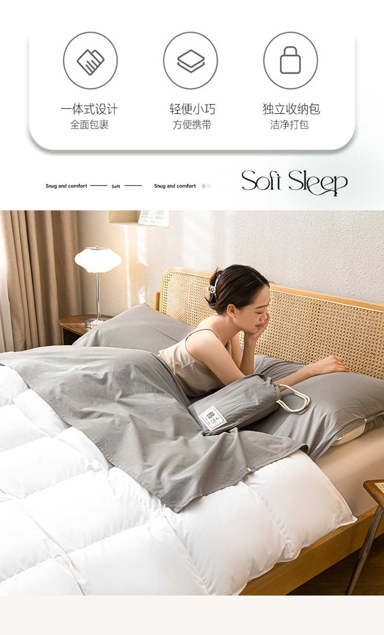 商品名称:眠帛家居 2023新款A类亲肤水洗棉隔脏睡袋 浅灰