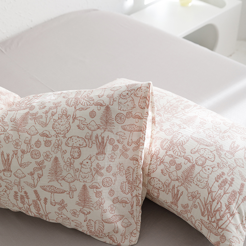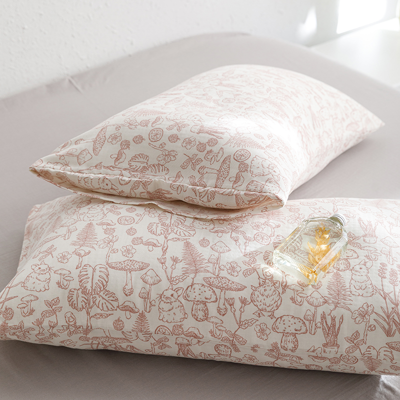 商品名称:8小时家纺 2023新款40s全棉双层纱单品四件套系列-单枕套 丛林蘑菇