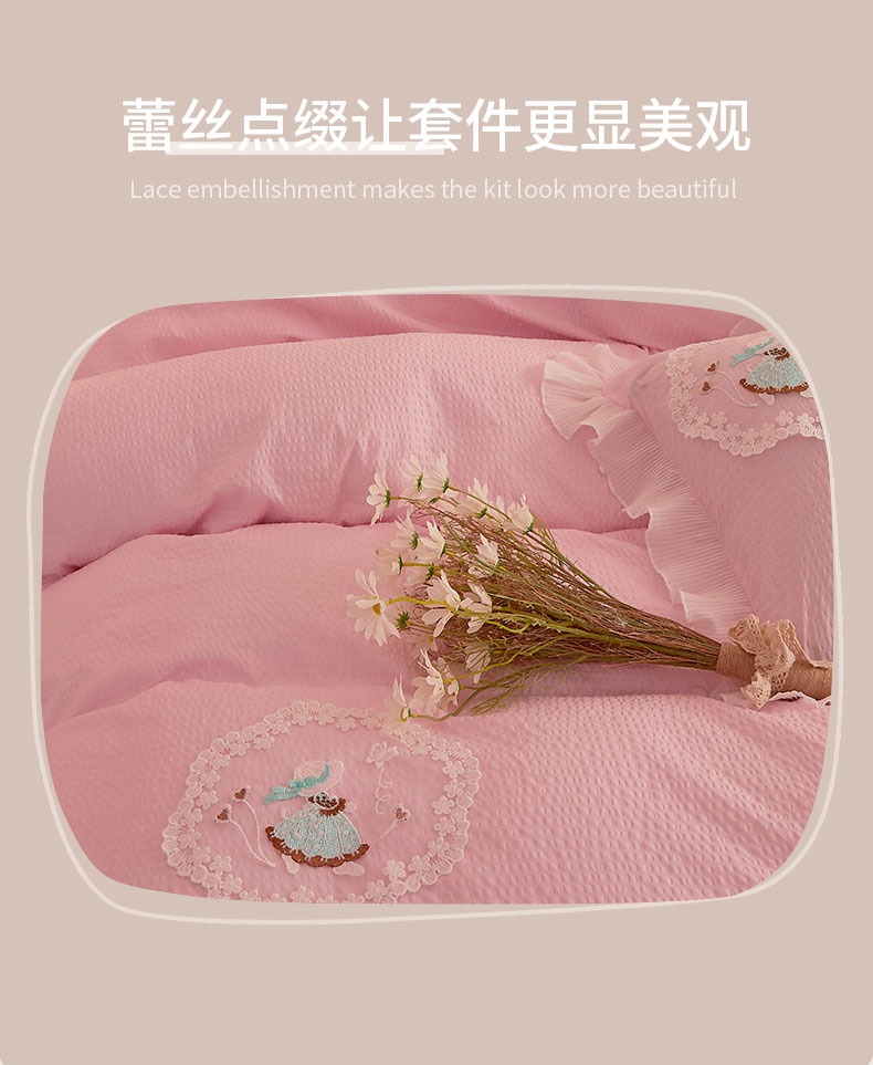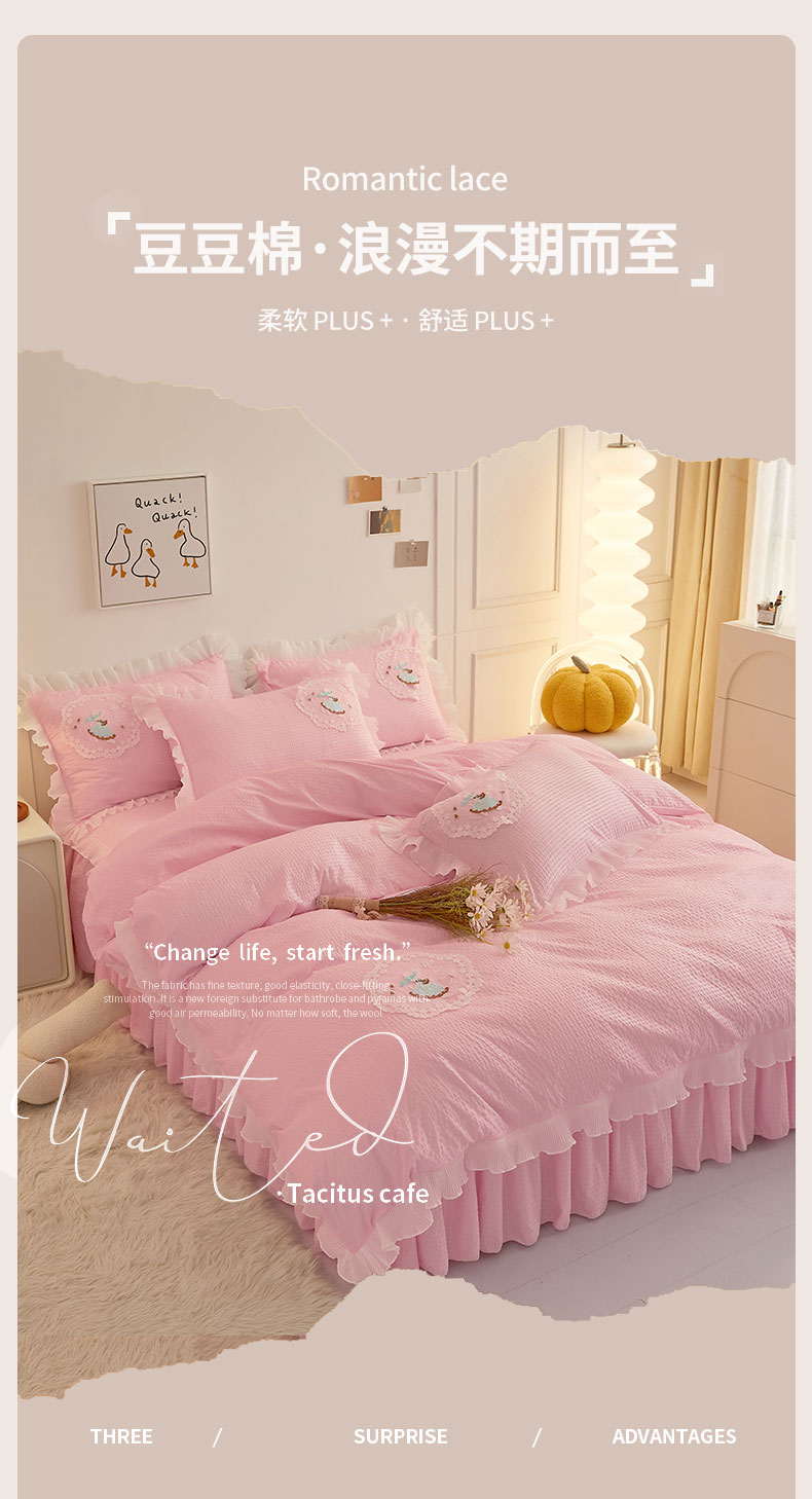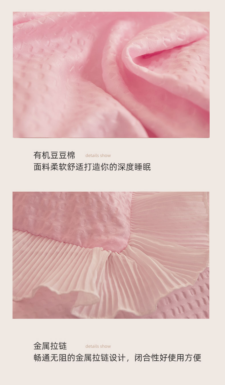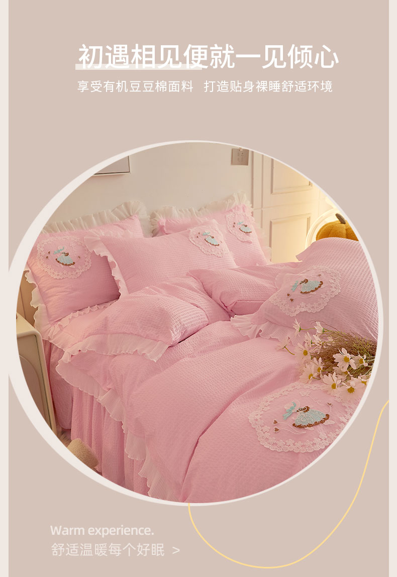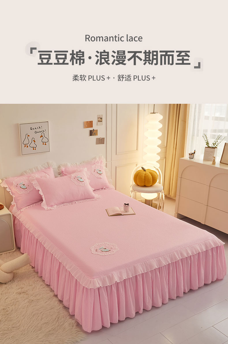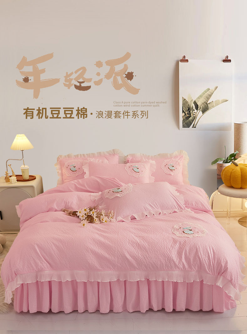当前位置: 91家纺网 > 商品网购 > 床品套件 > 四件套 > 全棉普通四件套 > 恋尚 2023新款有机豆豆棉床裙四件套 嫩粉