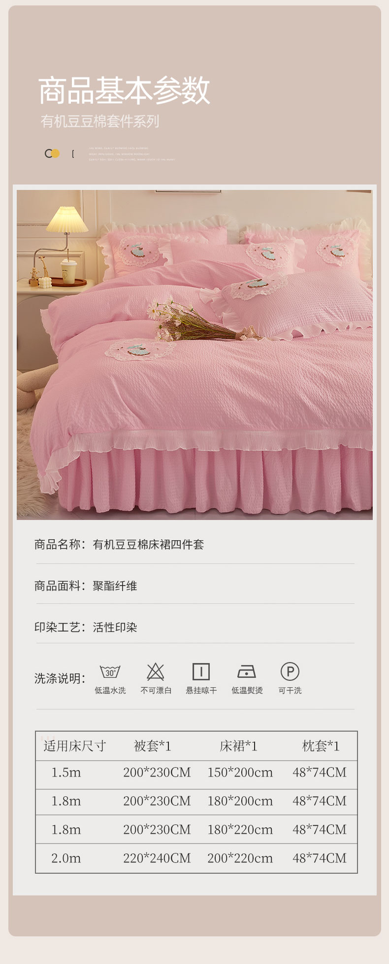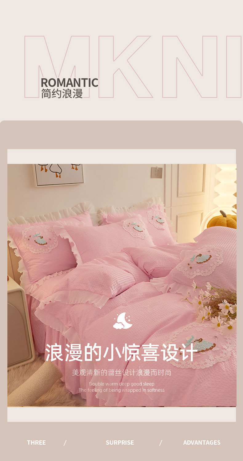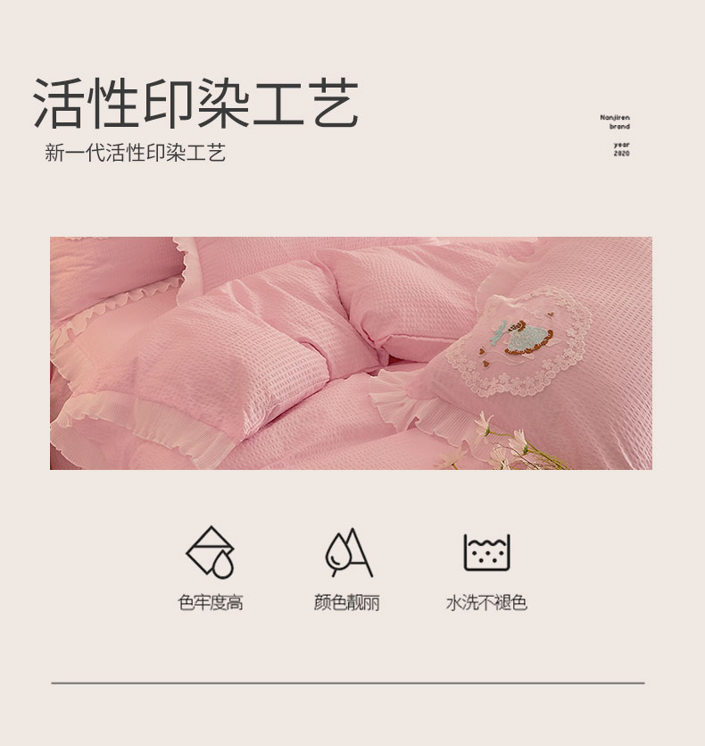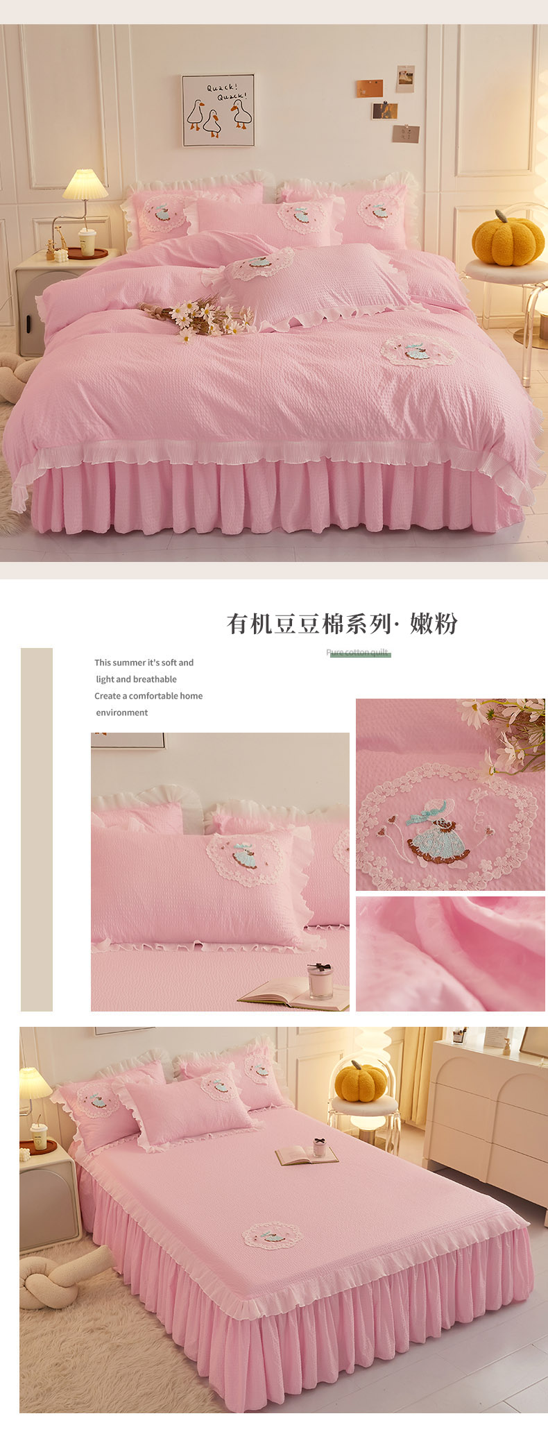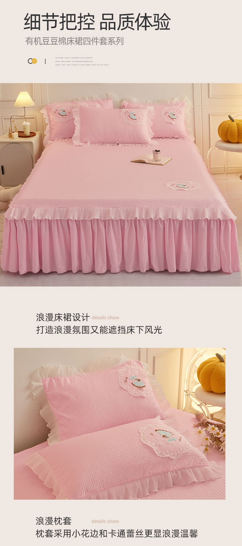 当前位置: 91家纺网 > 商品网购 > 床品套件 > 四件套 > 全棉普通四件套 > 恋尚 2023新款有机豆豆棉床裙四件套 嫩粉