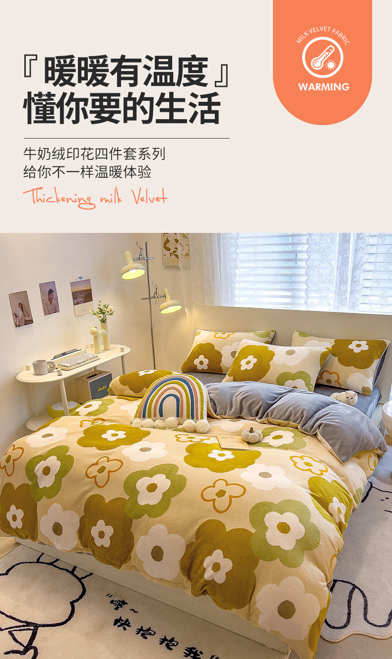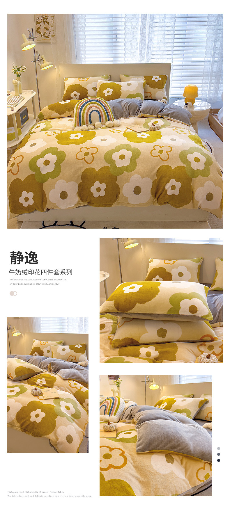 商品名称:芃成 2023新款双面牛奶绒印花四件套 静逸