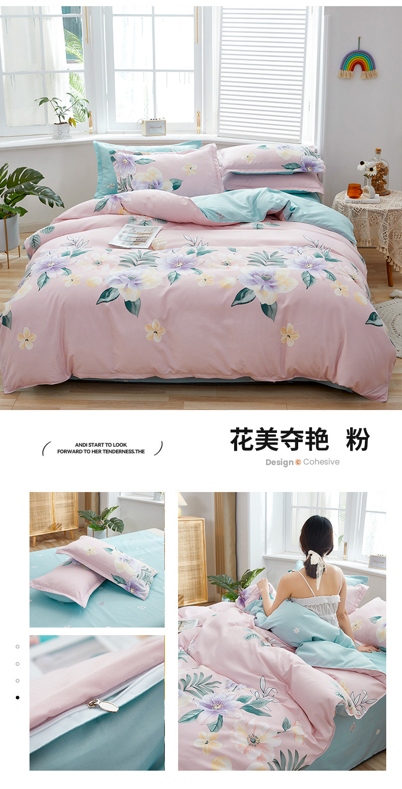 当前位置: 91家纺网 > 商品网购 > 床品套件 > 四件套 > 化纤普通四件套 > 简冠家纺 2023直播爆款北欧风亲肤植物羊绒磨毛四件套 花美夺艳-粉