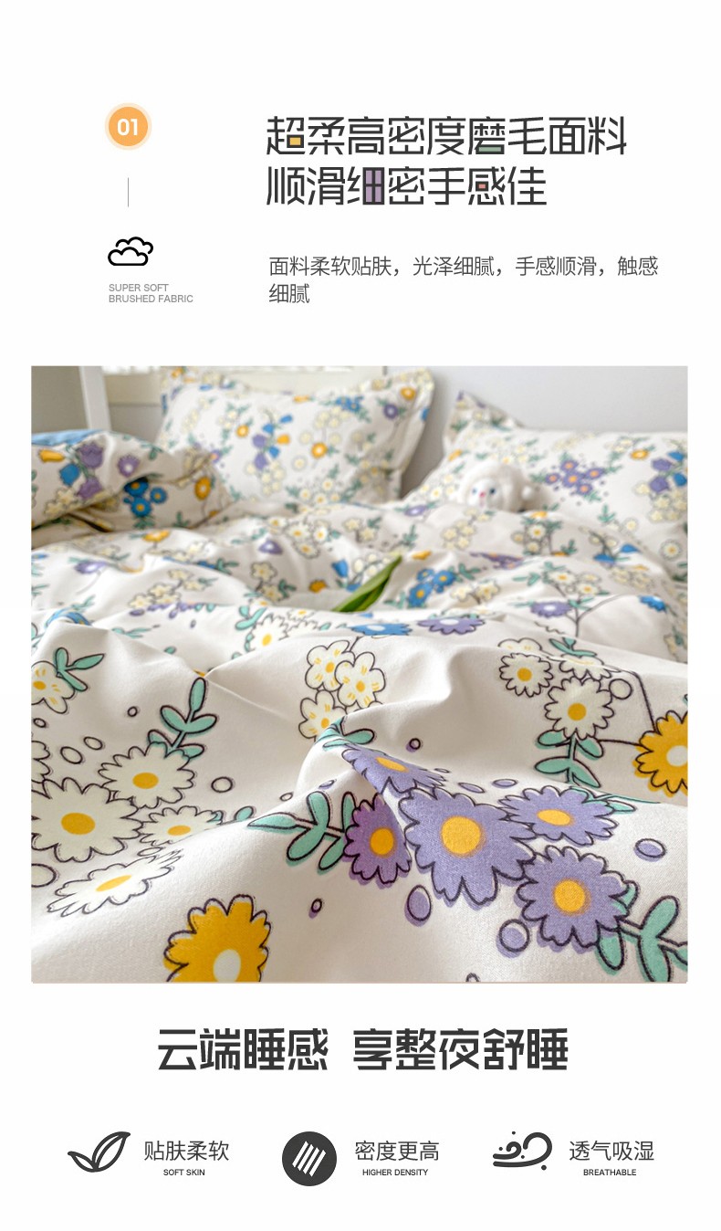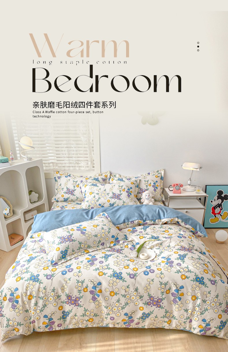 宇淳国际 2023新款加厚植物羊绒四件套 爱在春天