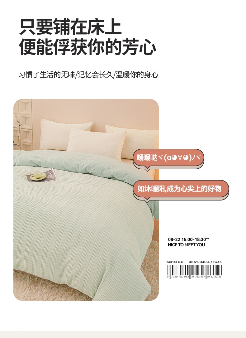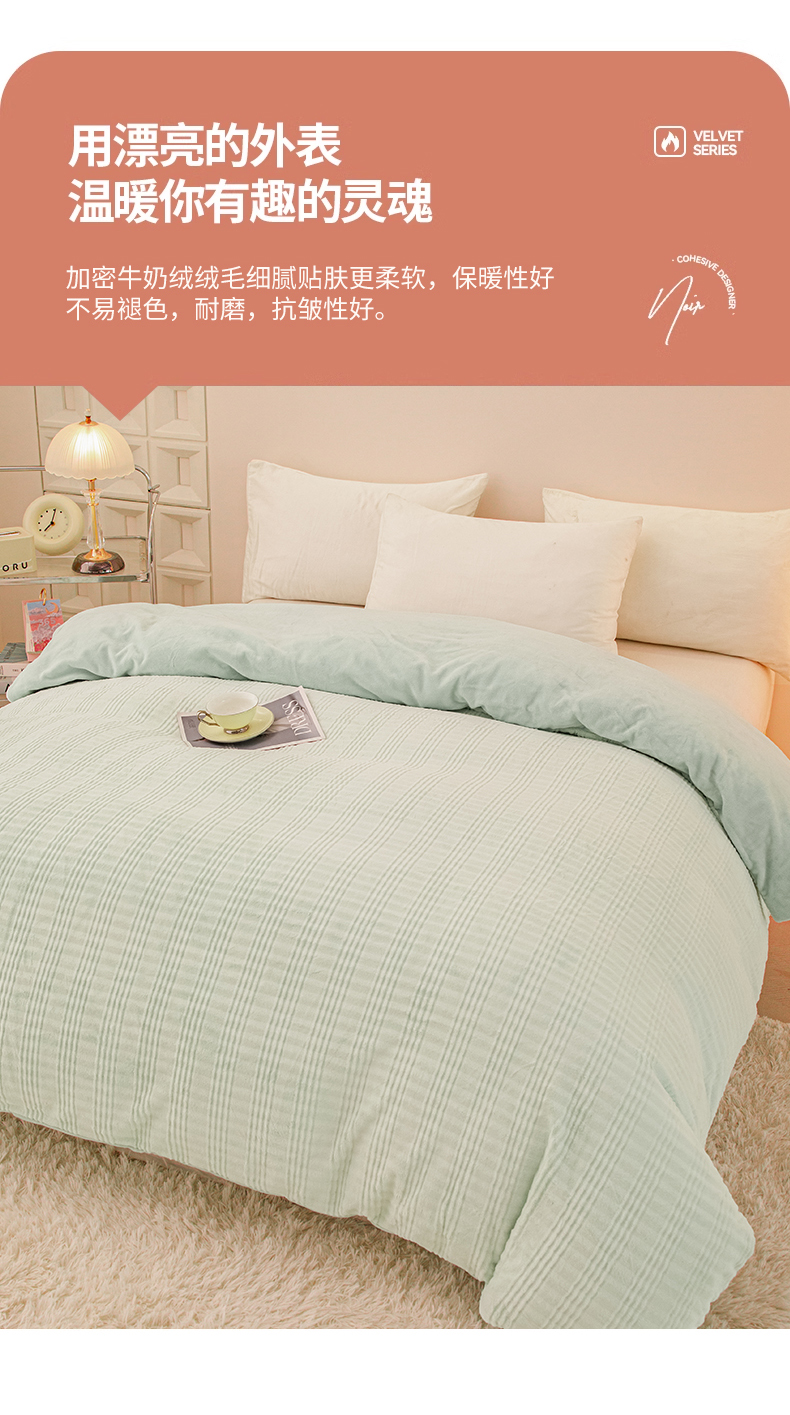 (总)锦罗绣 2025新款牛奶绒肌理纹四件套,肌理纹-灰,肌理纹-咖,肌理纹-蓝,肌理纹-绿,肌理纹-棕,艾草绿,繁星蓝,粉拼灰,米白拼灰,暖橘,浅灰