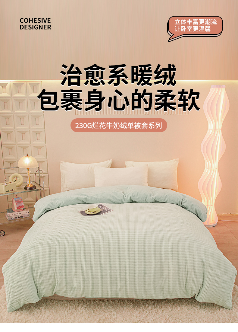 • 91家纺网 家纺一手货源 找家纺 (总)锦罗绣 2025新款牛奶绒肌理纹单被套,肌理纹-灰,肌理纹-咖,肌理纹-蓝,肌理纹-绿,肌理纹-棕,艾草绿,繁星蓝,粉拼灰,米白拼灰,暖橘,浅灰
