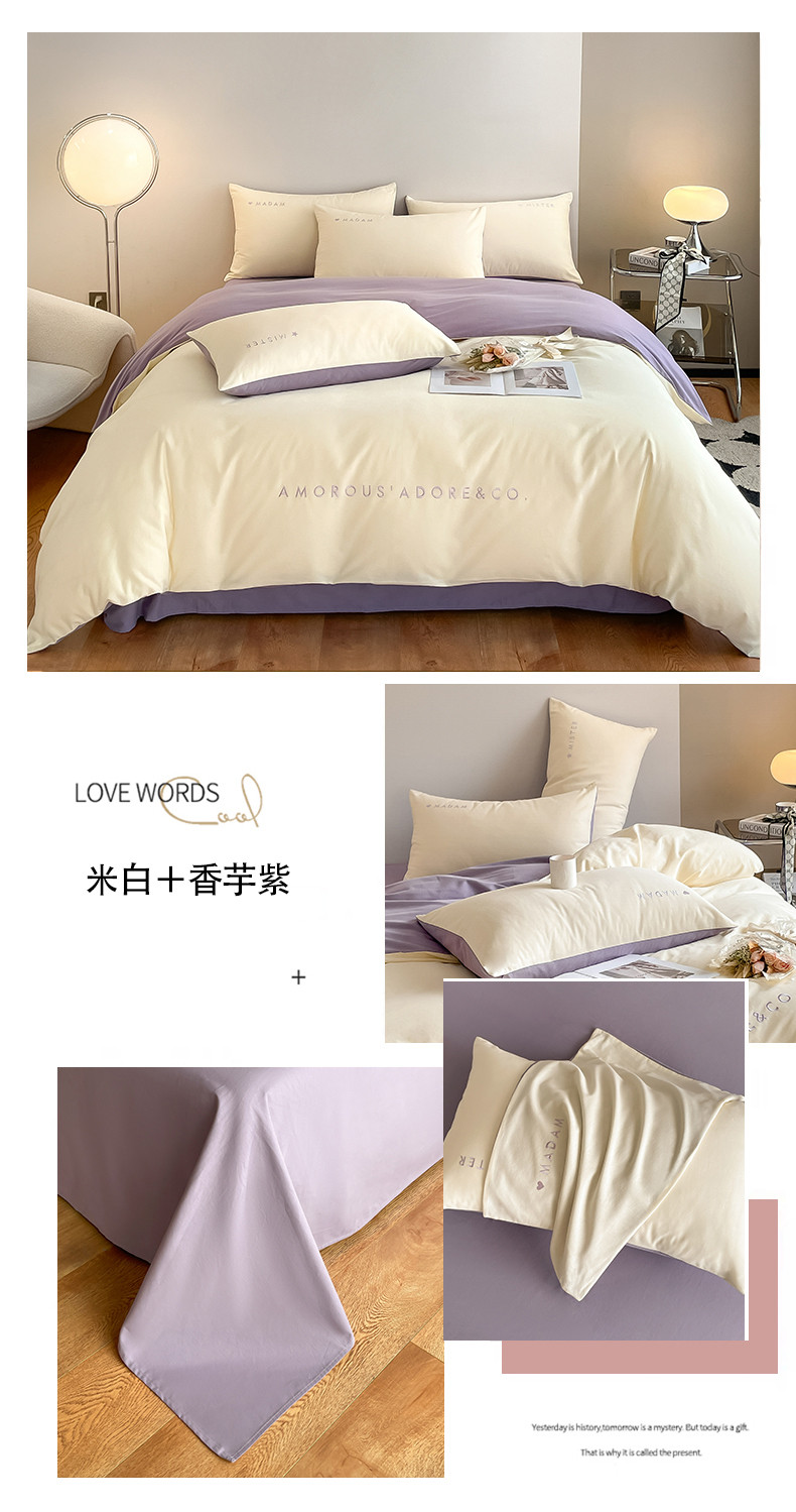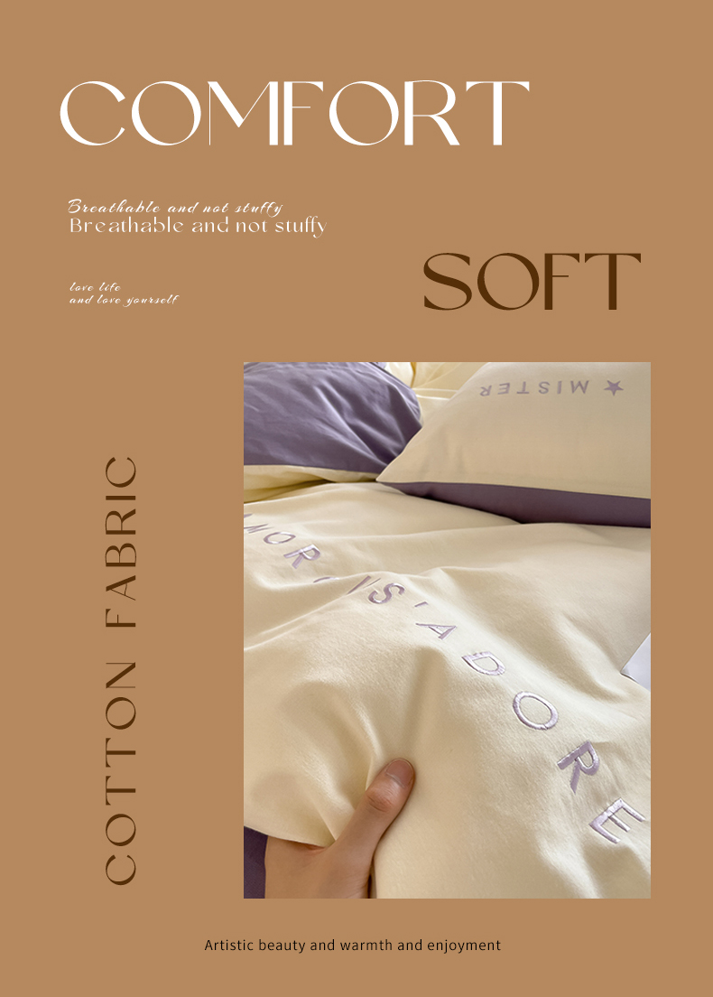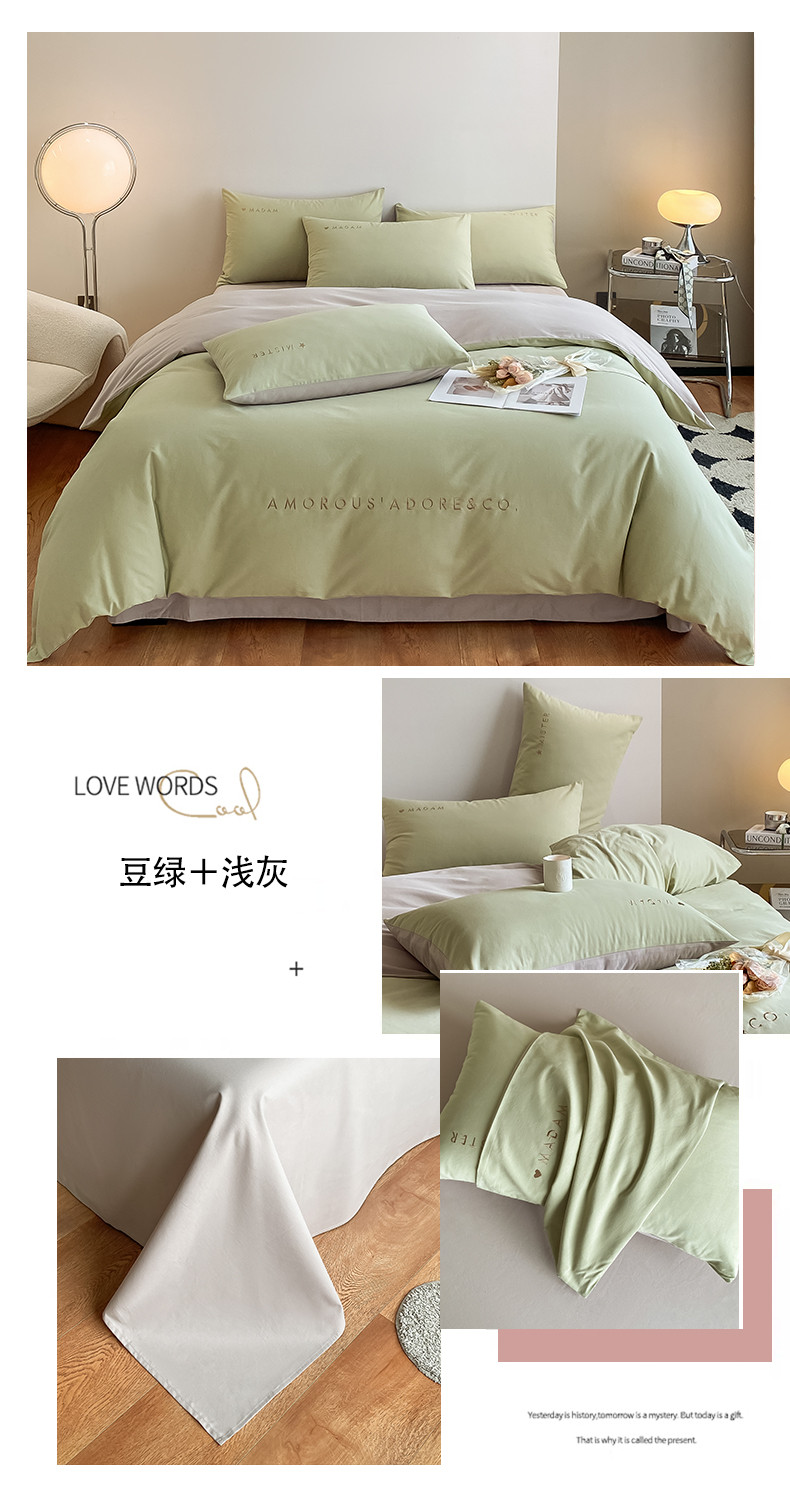 (总)拼社家纺 2025新款母婴及全棉水洗棉刺绣四件套纯棉床上用品,艾玛绿+卡其,繁星蓝+卡其,繁星蓝+玫瑰粉,红豆沙+雅灰,迷雾灰+玫瑰粉,蜜粉+雅灰,奶油白+卡其,奶油白+香橙,牛仔蓝+浅蓝,香橙+雅灰