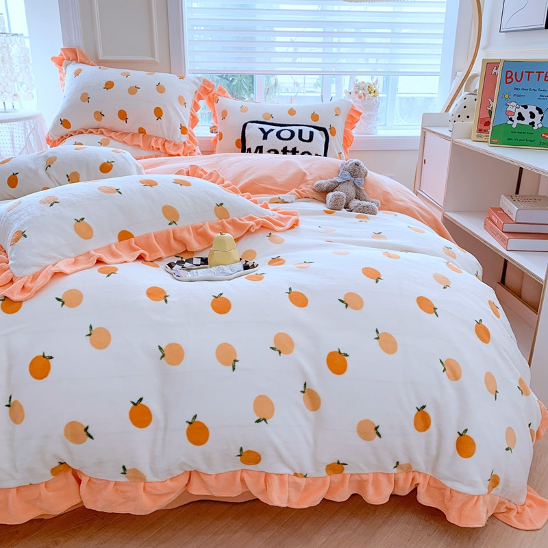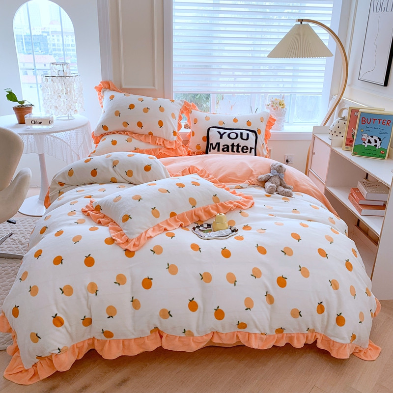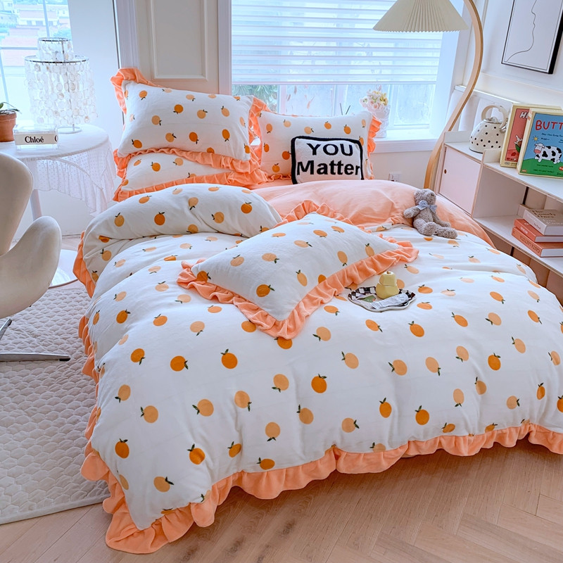 吾欢心 2024新款韩版花边牛奶绒四件套 小柑橘