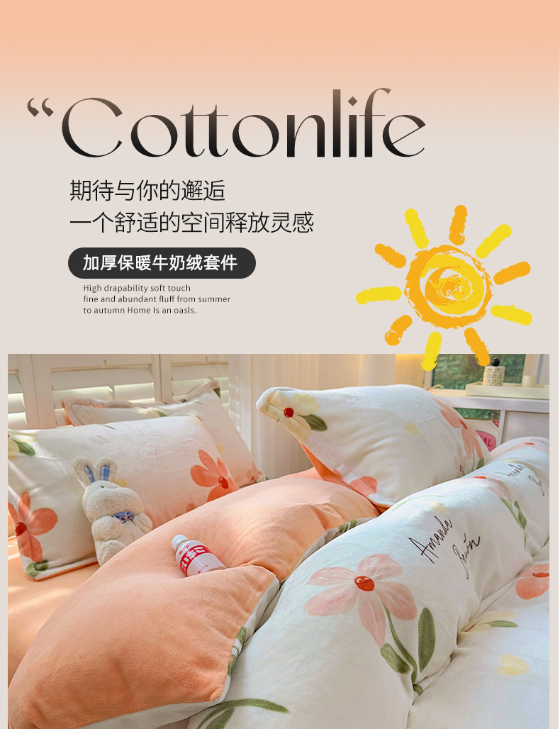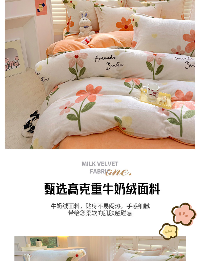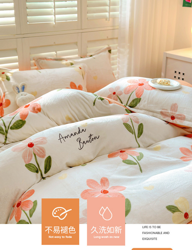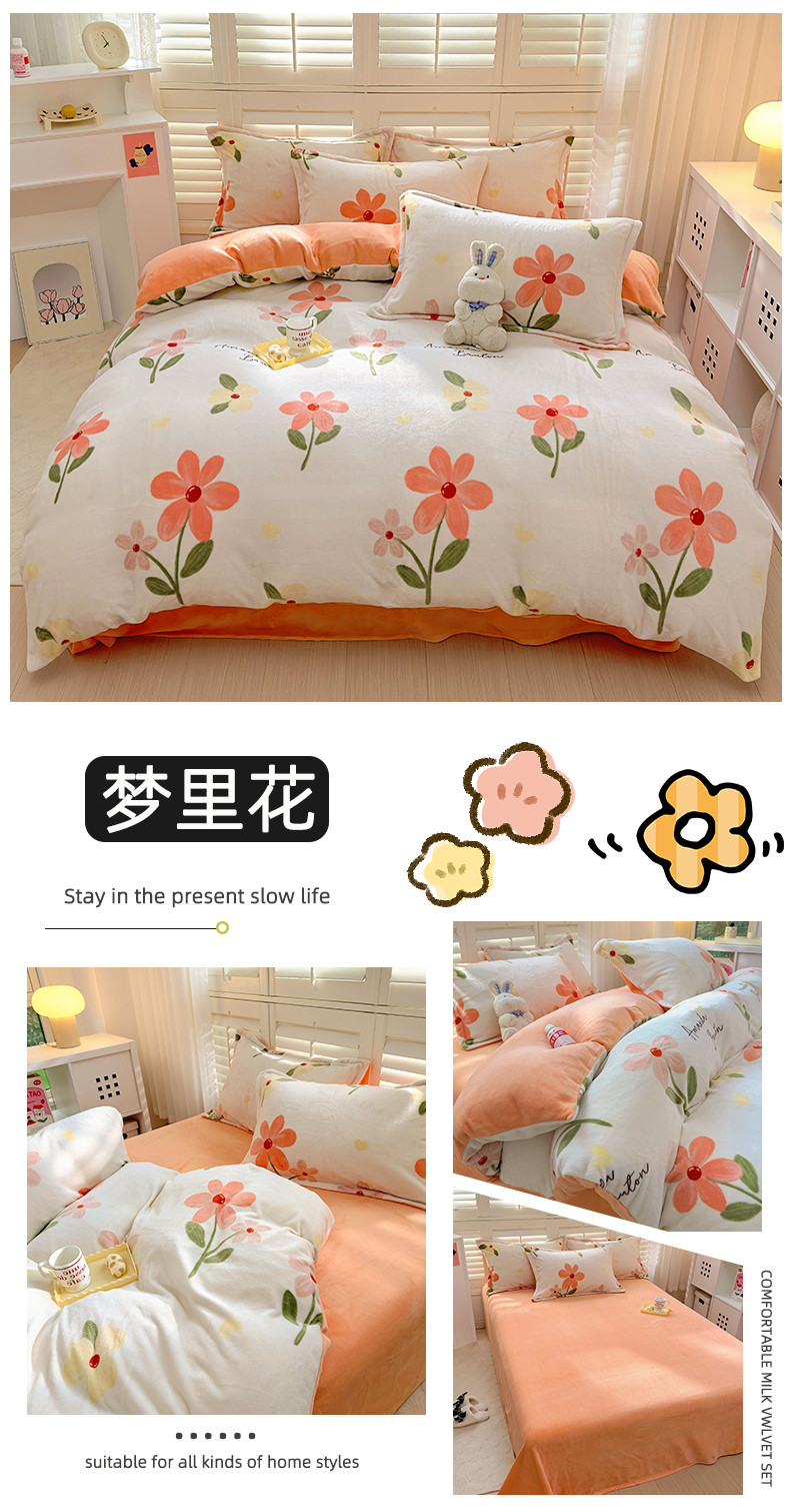 当前位置: 91家纺网 > 商品网购 > 床品套件 > 四件套 > 牛奶绒四件套 > 百寐 2023新款加厚牛奶绒小清新可爱花卉卡通保暖学生三四件套 梦里花