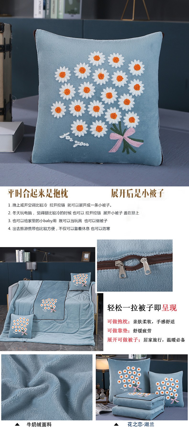 商品名称:伊可爱抱枕被 2023新款牛奶绒绣花抱枕被 花之恋-湖兰