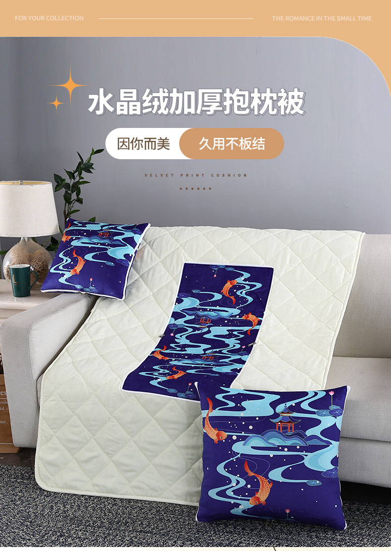 商品名称:伊可爱抱枕被 2023新款水晶超柔磨毛四季多针抱枕被 跃龙门
