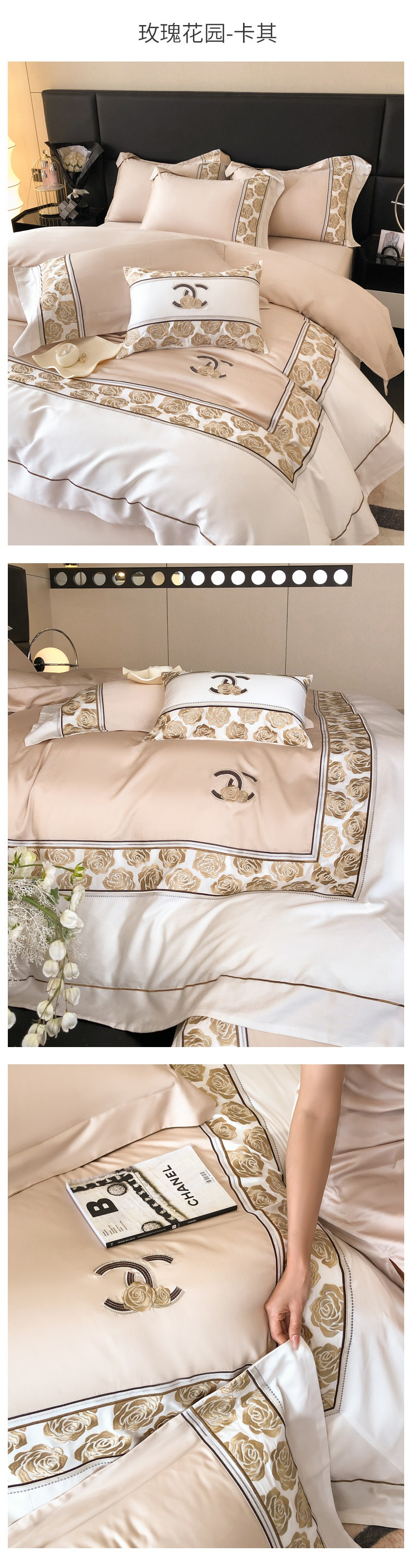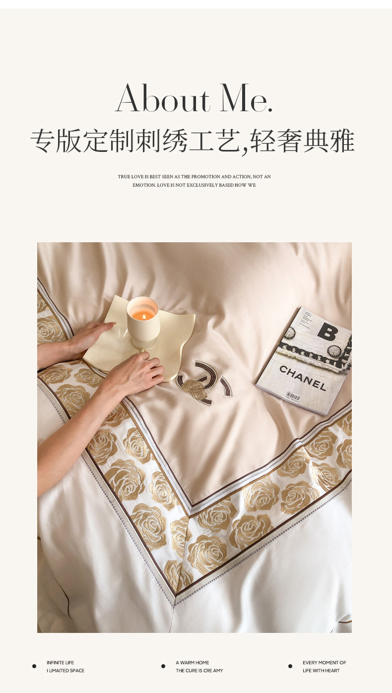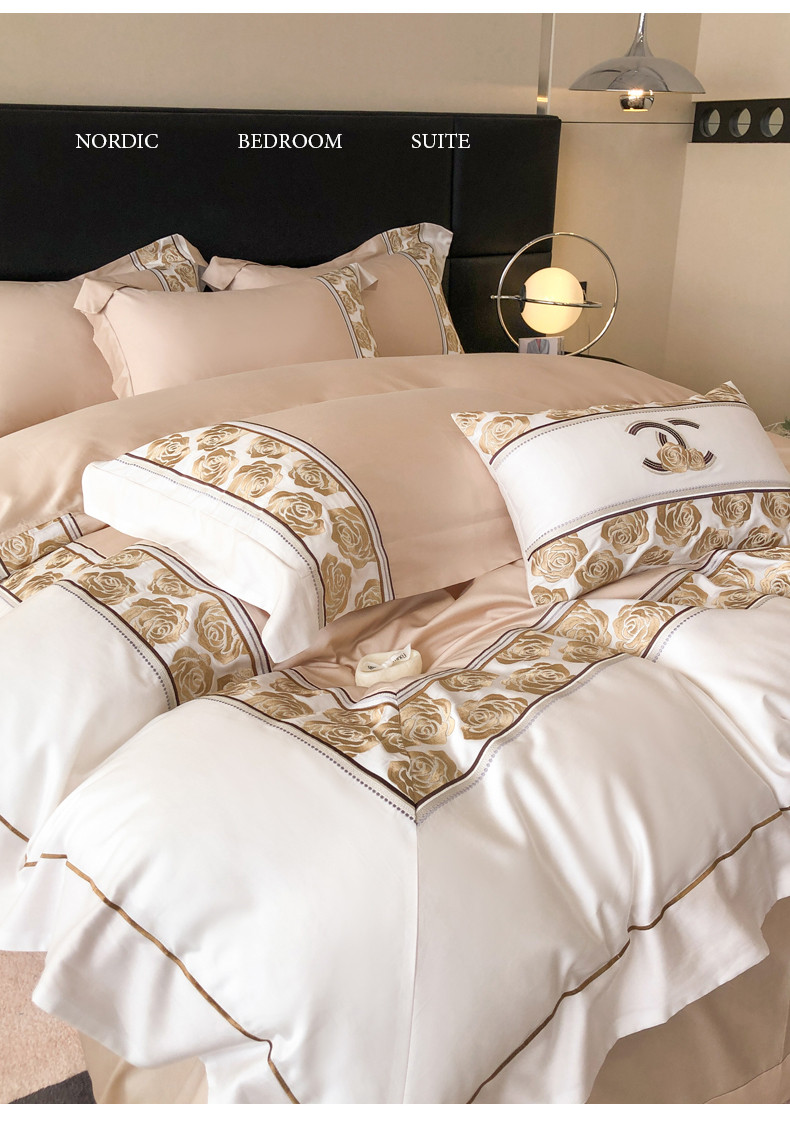 商品名称:总618 2023新款A类50S100支长绒棉全棉刺绣四件套-玫瑰花园
