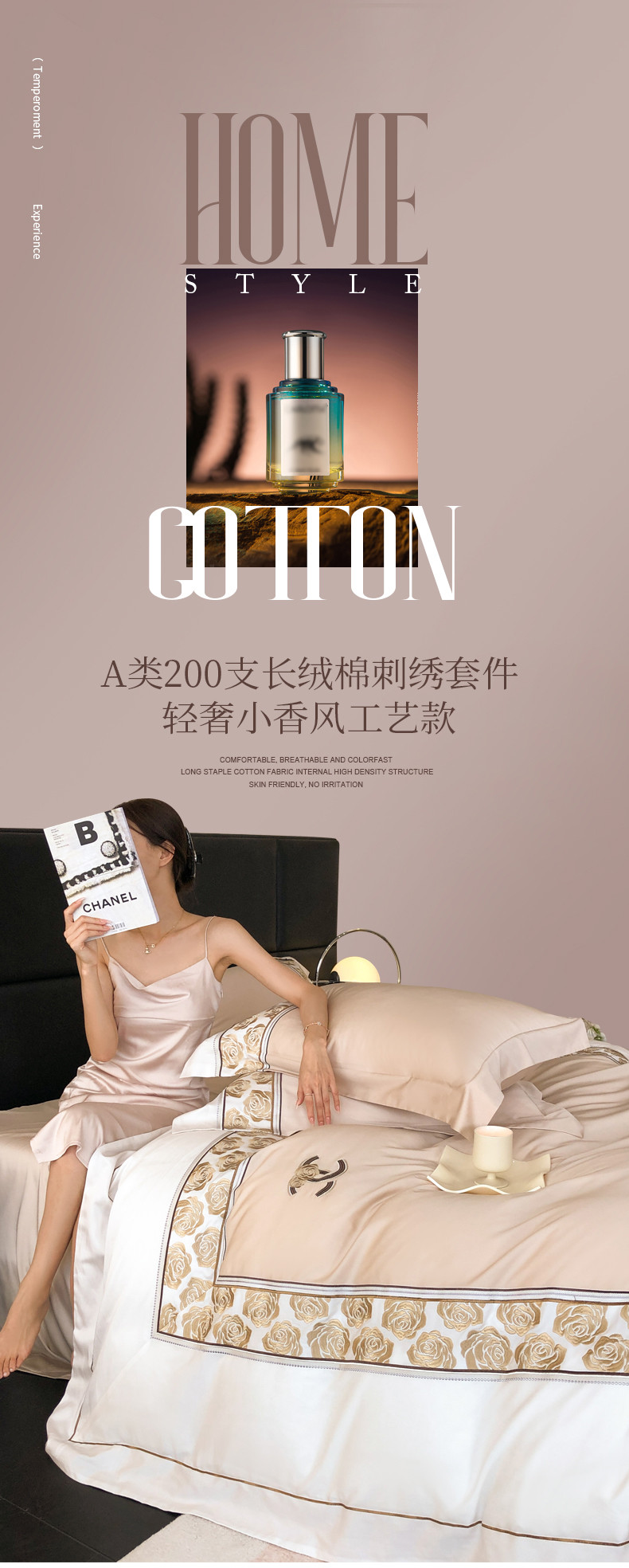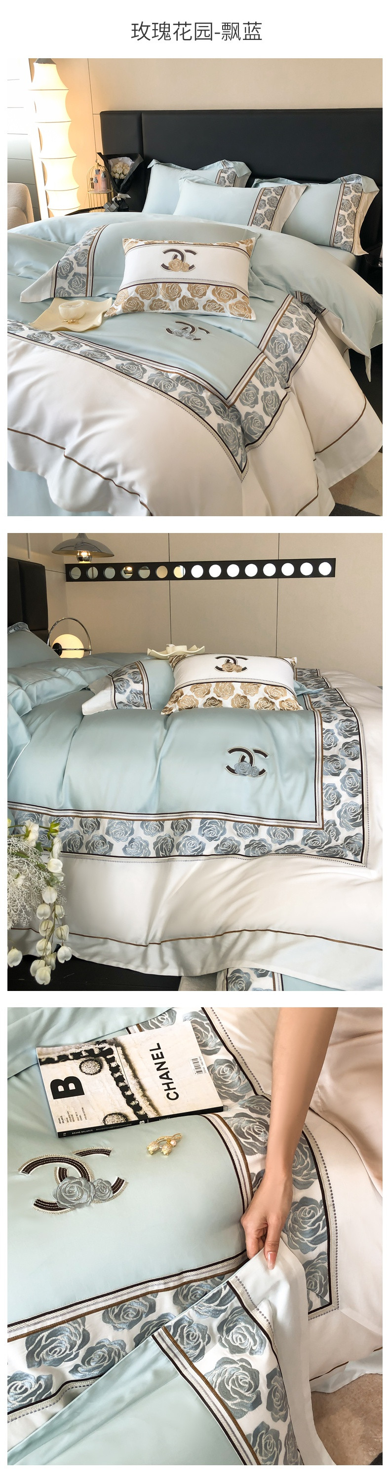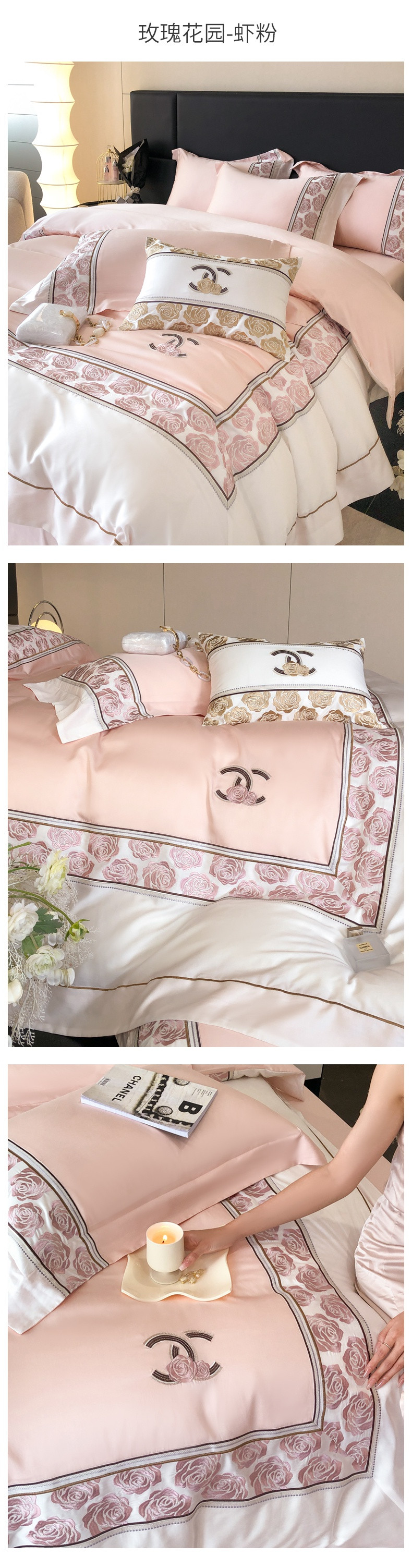 商品名称:总618 2023新款A类50S100支长绒棉全棉刺绣四件套-玫瑰花园
