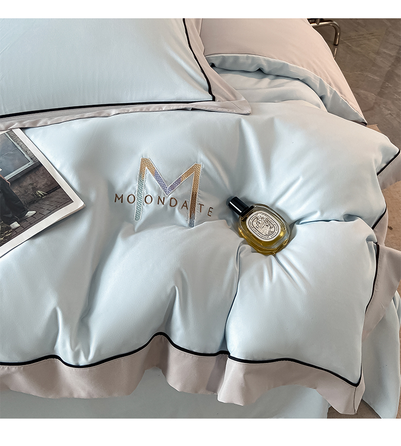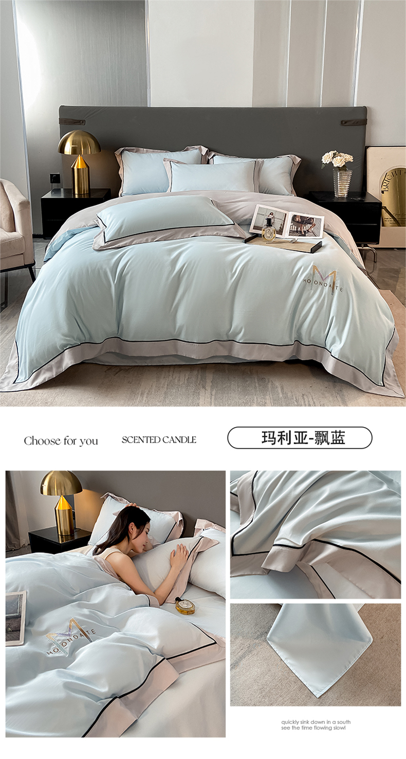 遇见家居生活馆 2023新款亲肤棉磨毛刺绣四件套 玛利亚-飘蓝