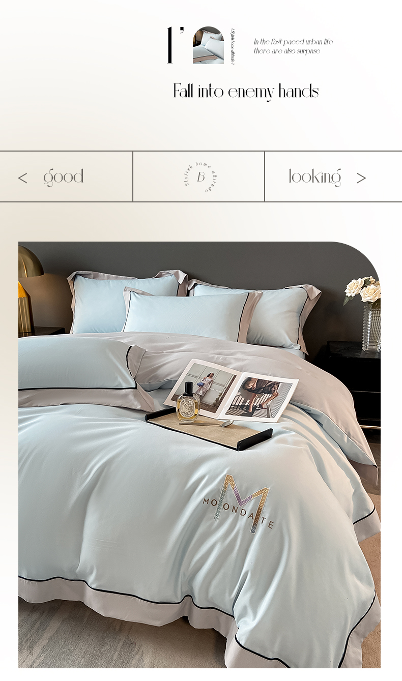 (总)遇见家居生活馆 2025新款A类牛奶绒玛利亚绒宽边四件套(控价:标准178,加大188,床笠款183),靓粉+星辰灰,丁香紫+星辰灰,清澈蓝+星辰灰,奶昔白+亚麻驼,经典灰+香槟,宾利蓝+星辰灰