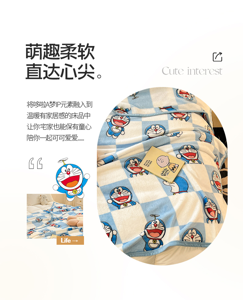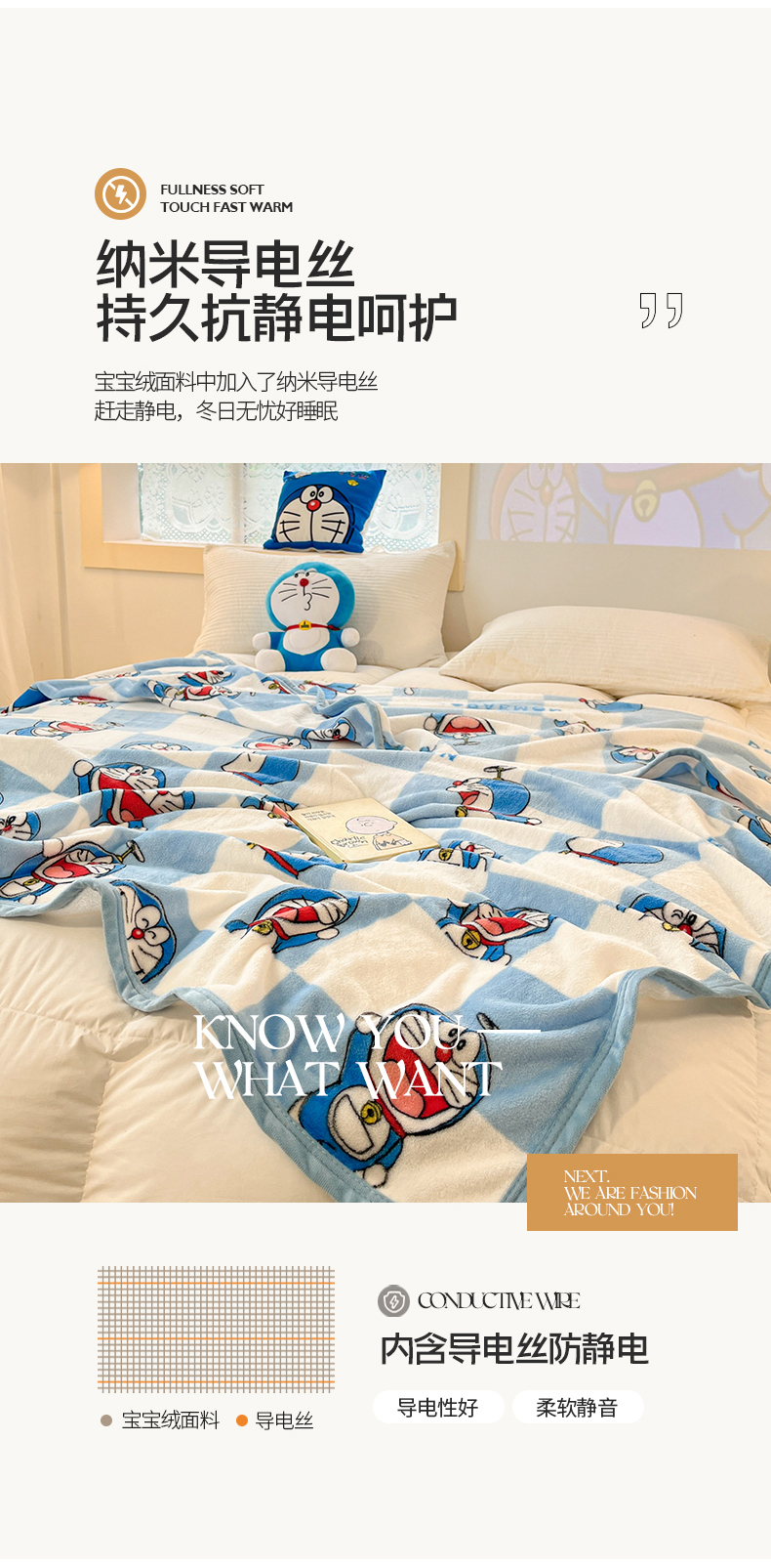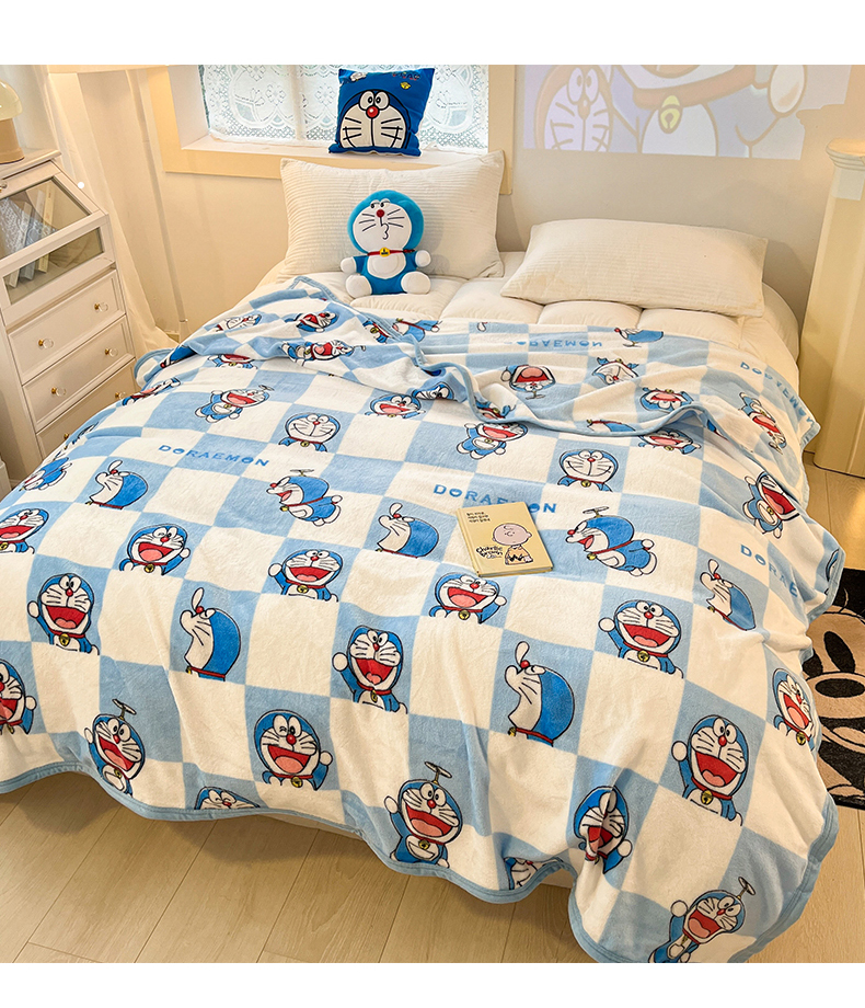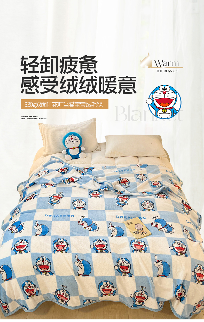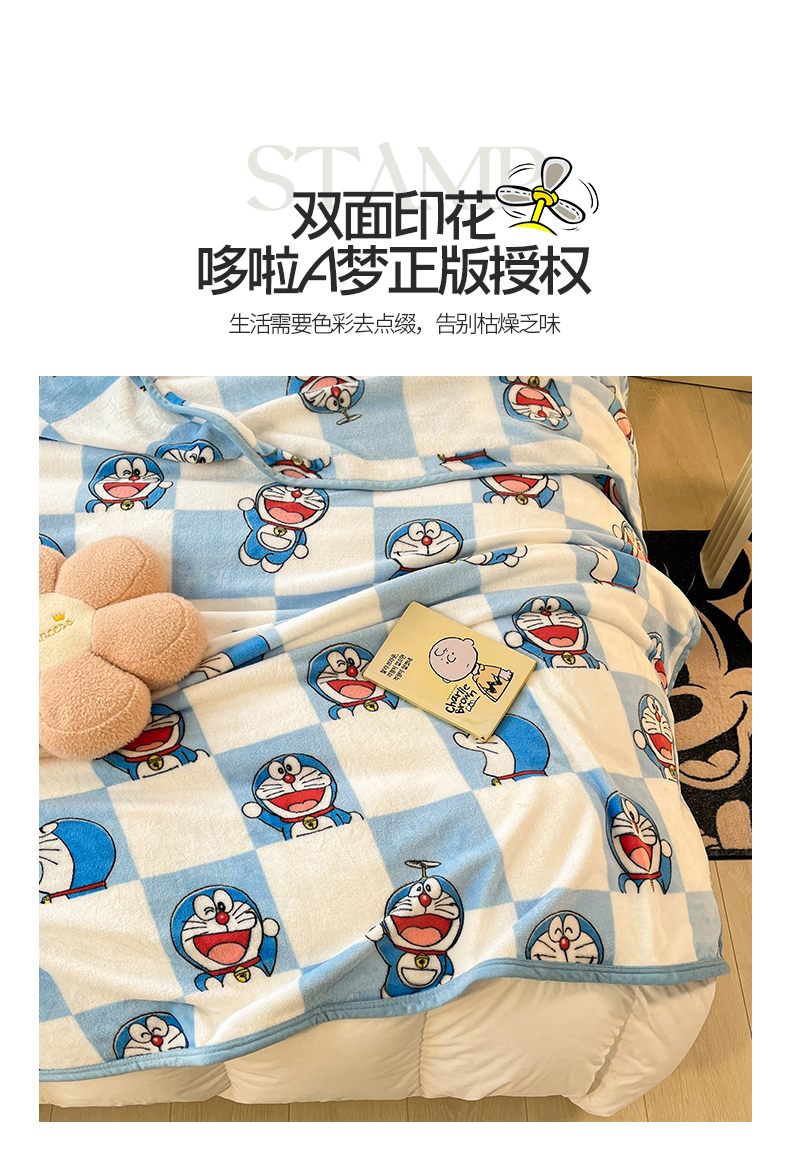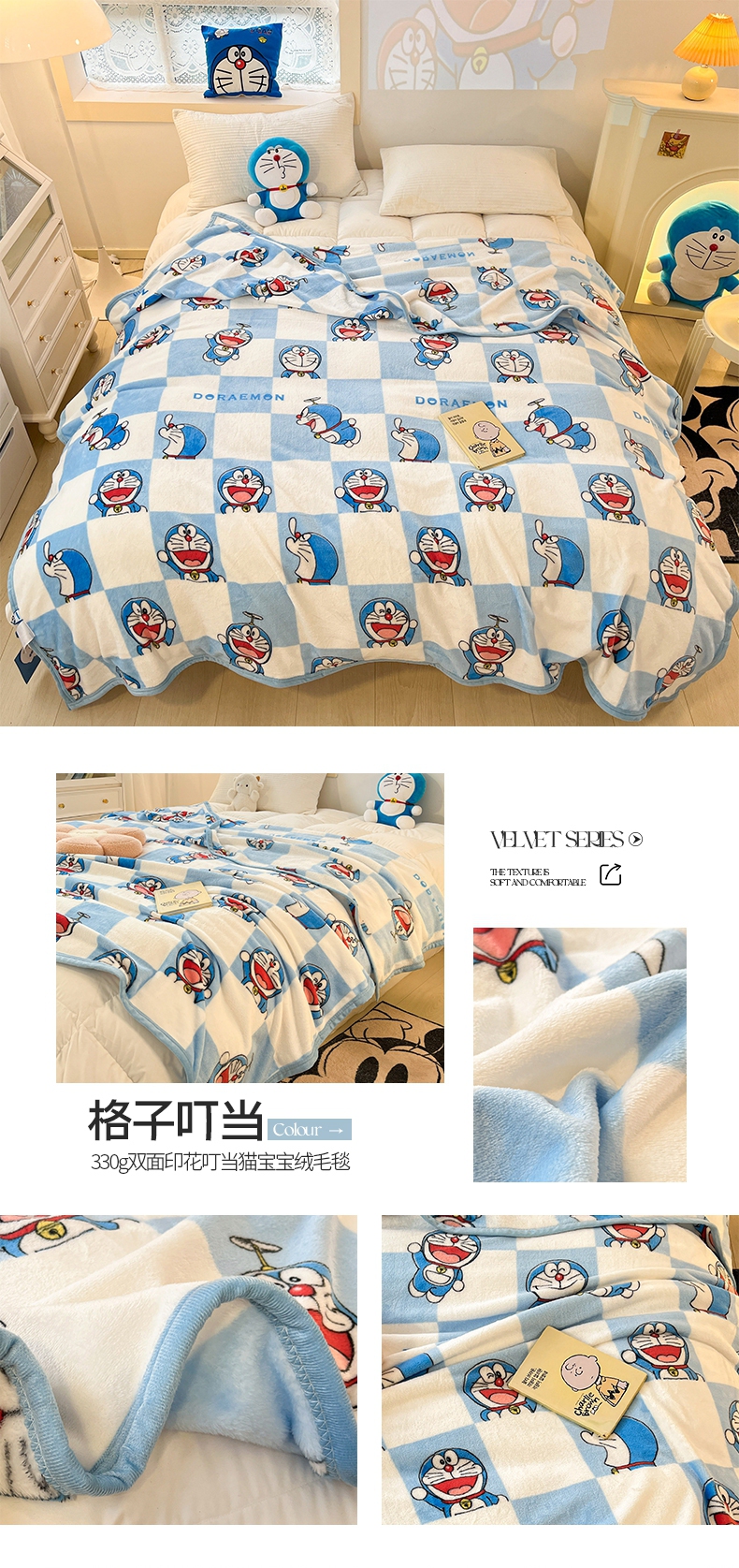 商品名称:桃子 2023新款330g双面印花A类叮当猫宝宝绒牛奶绒多功能四季毯子 毛毯-格子叮当