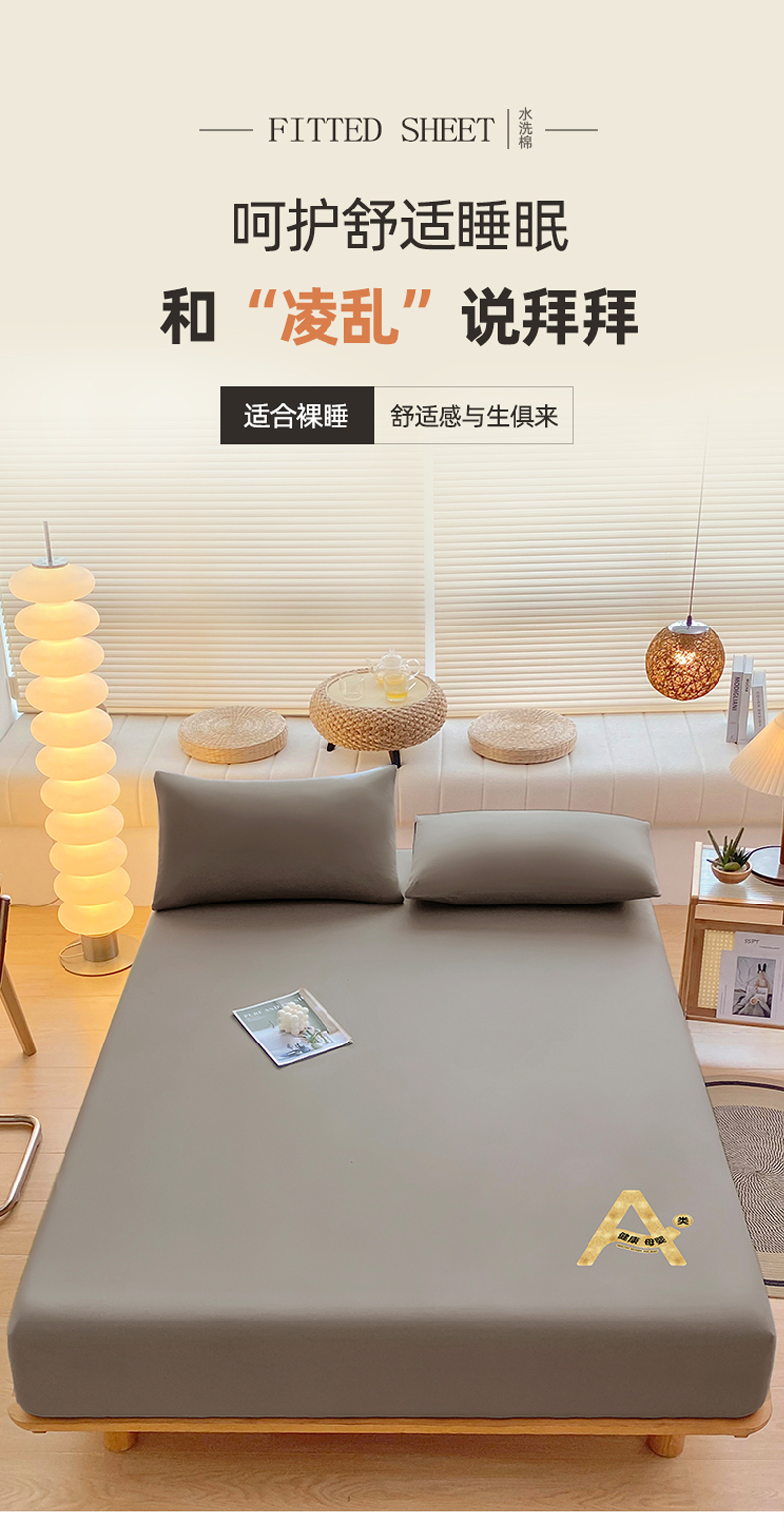 • 91家纺网 家纺一手货源 找家纺 家贝爱 2023新款纯色水洗棉床笠印字款 A+浅灰