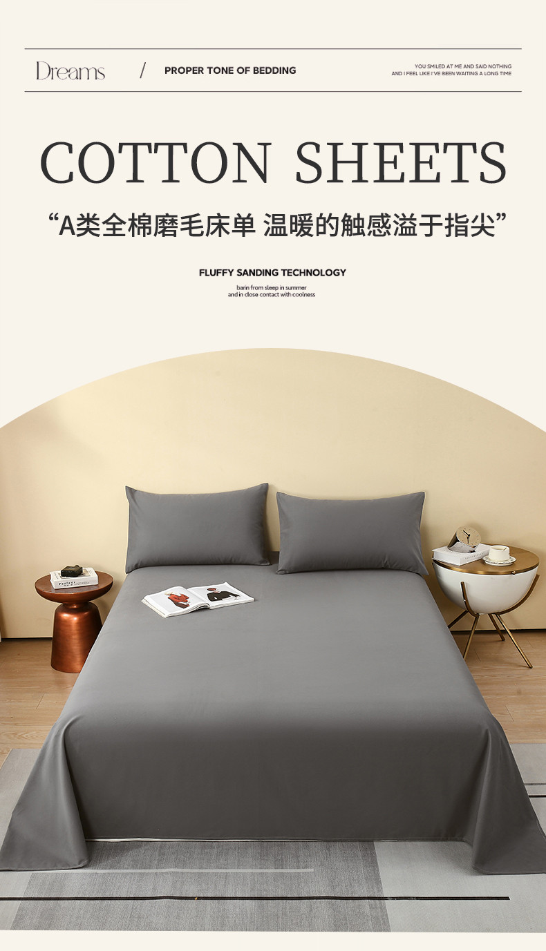 • 91家纺网 家纺一手货源 找家纺 拼社 全棉加厚磨毛单品-单床单 魅影灰