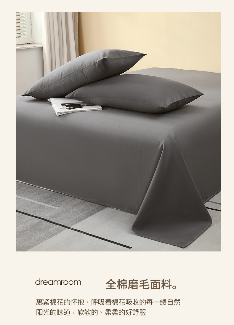 拼社 全棉加厚磨毛单品-单床单 魅影灰