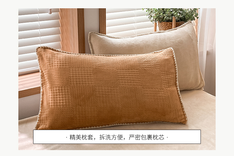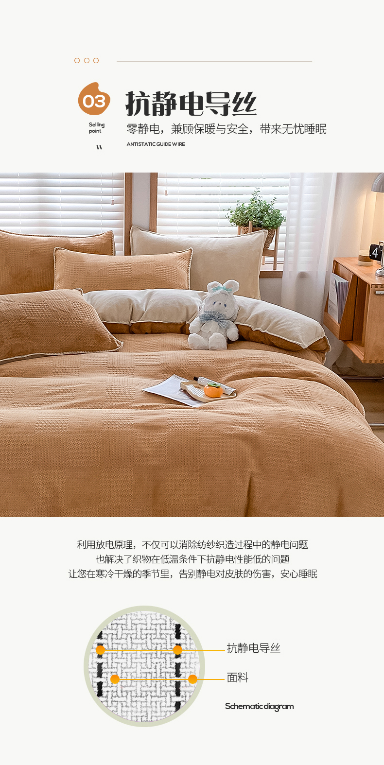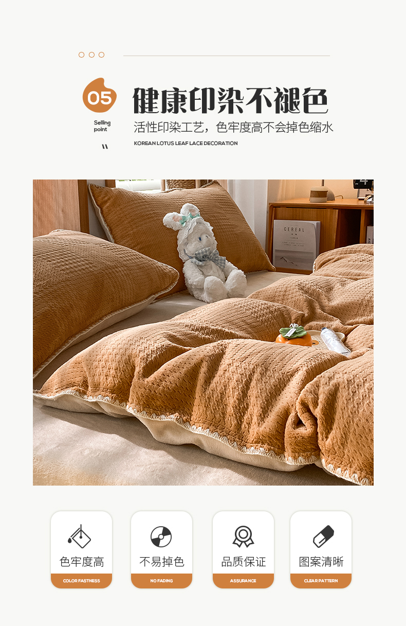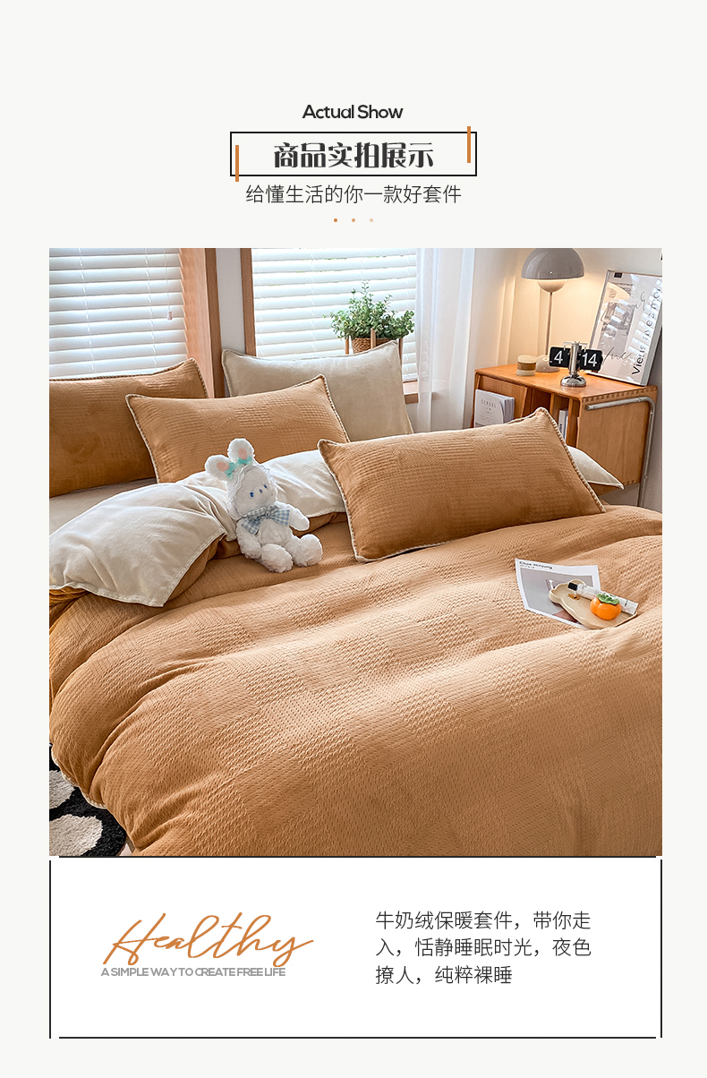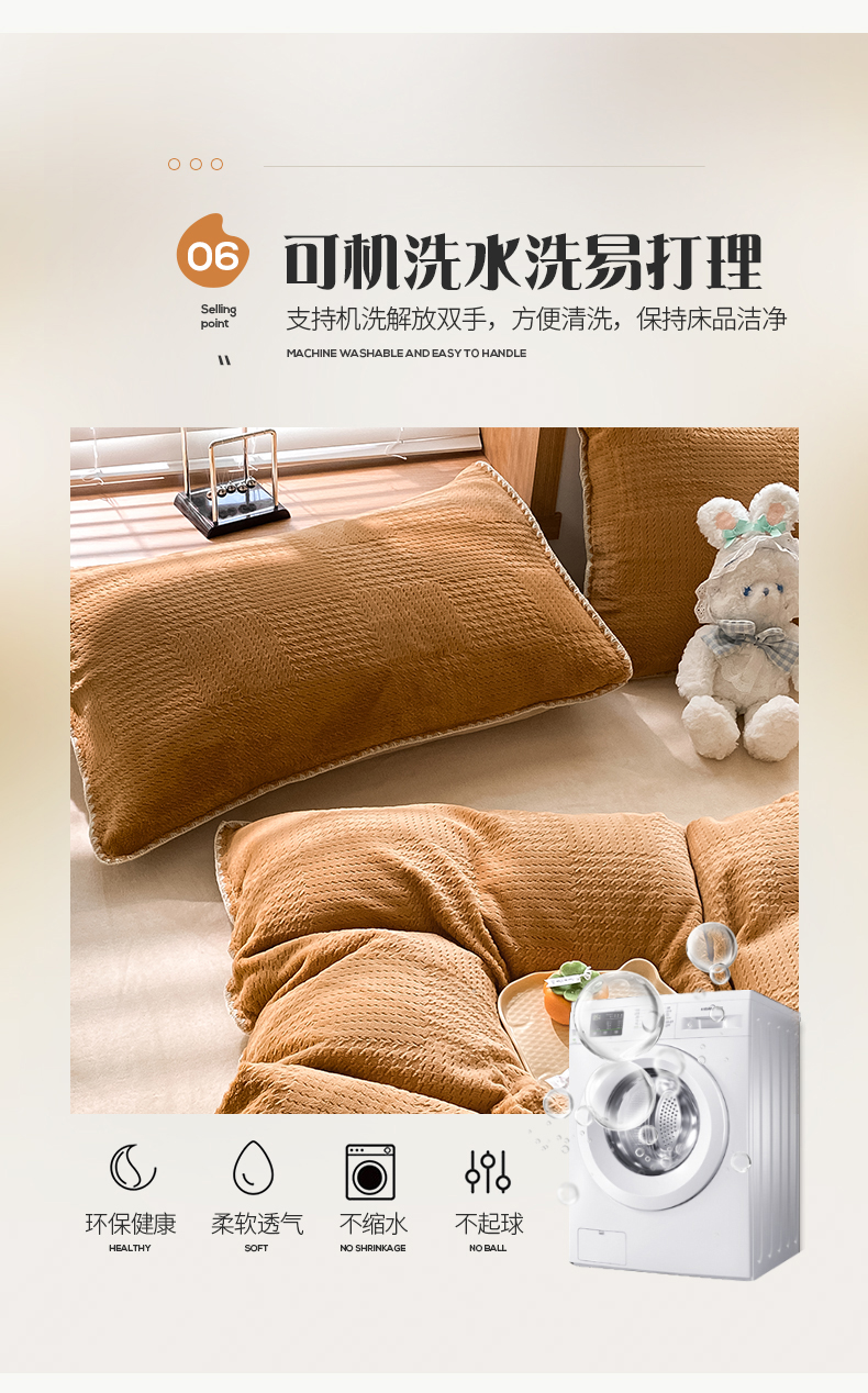 商品名称:桃子家居 2023新款A类无印ins华夫格提花烂花雕花剪花三角贝壳边工艺加厚牛奶绒四件套 绒华夫格-爱橙