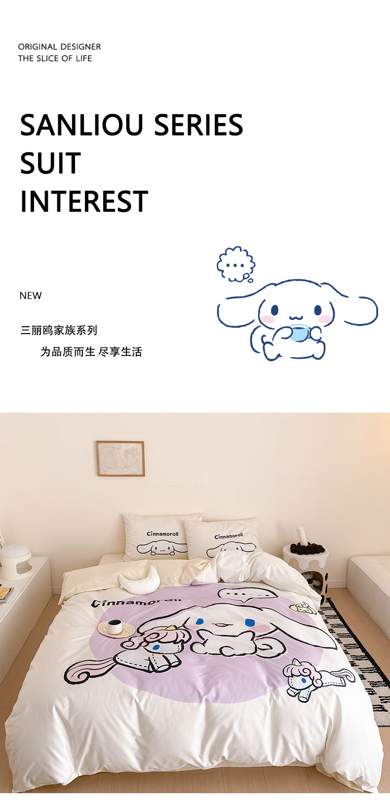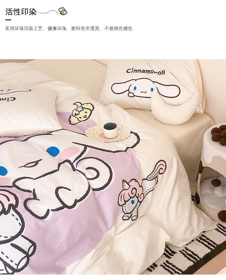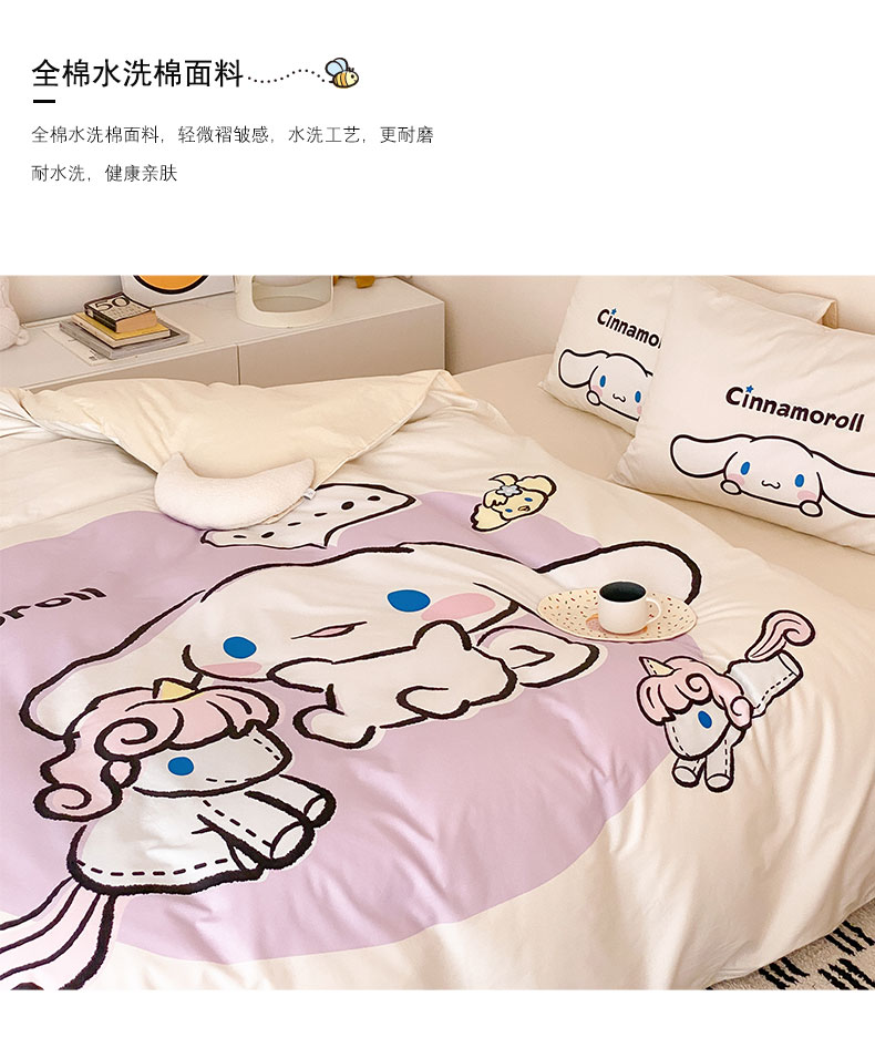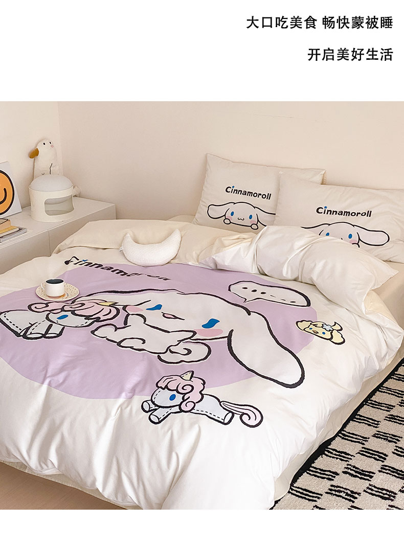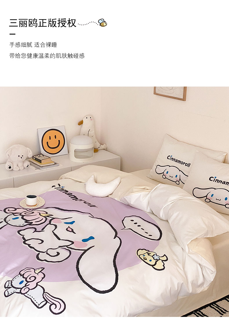 商品名称:猪先生 2023新款全棉水洗棉三丽鸥大版卡通印花四件套 大版玉桂狗杏色